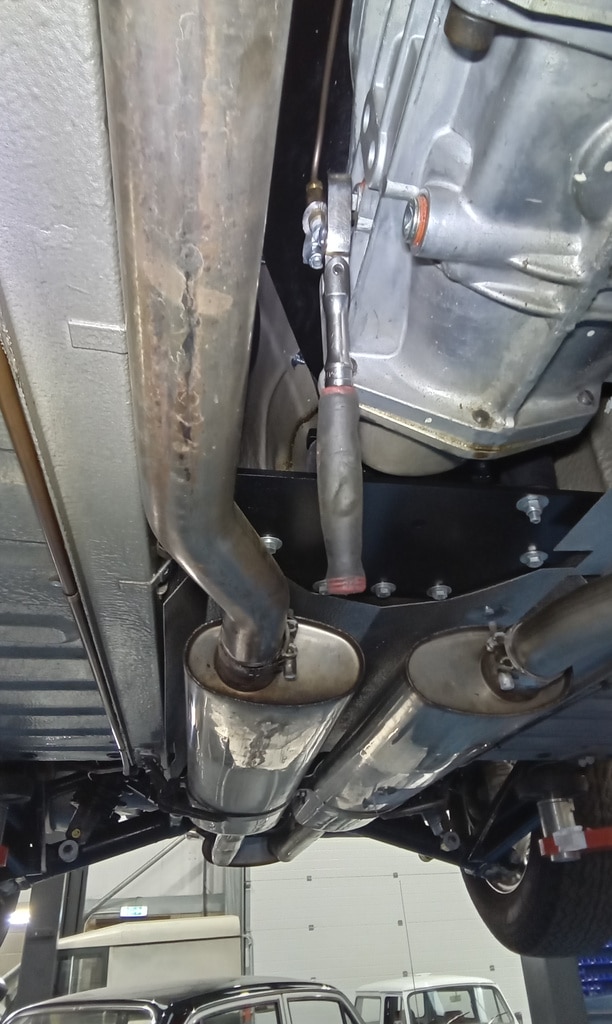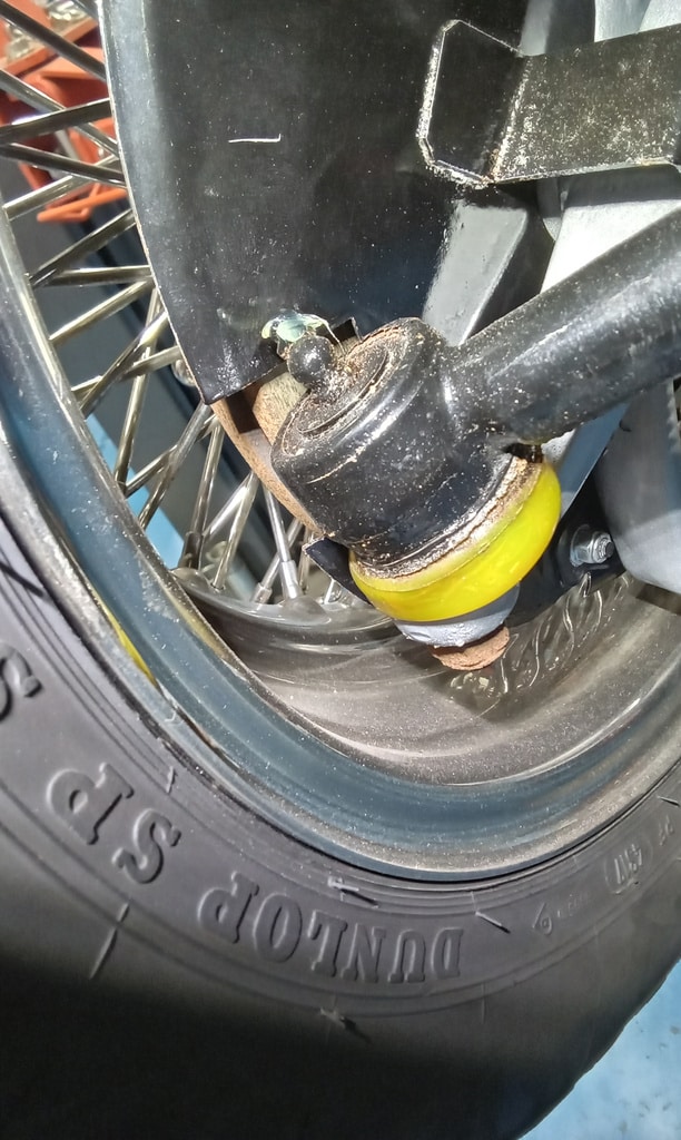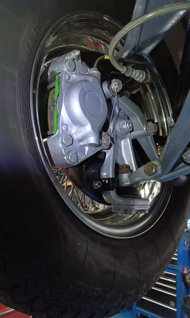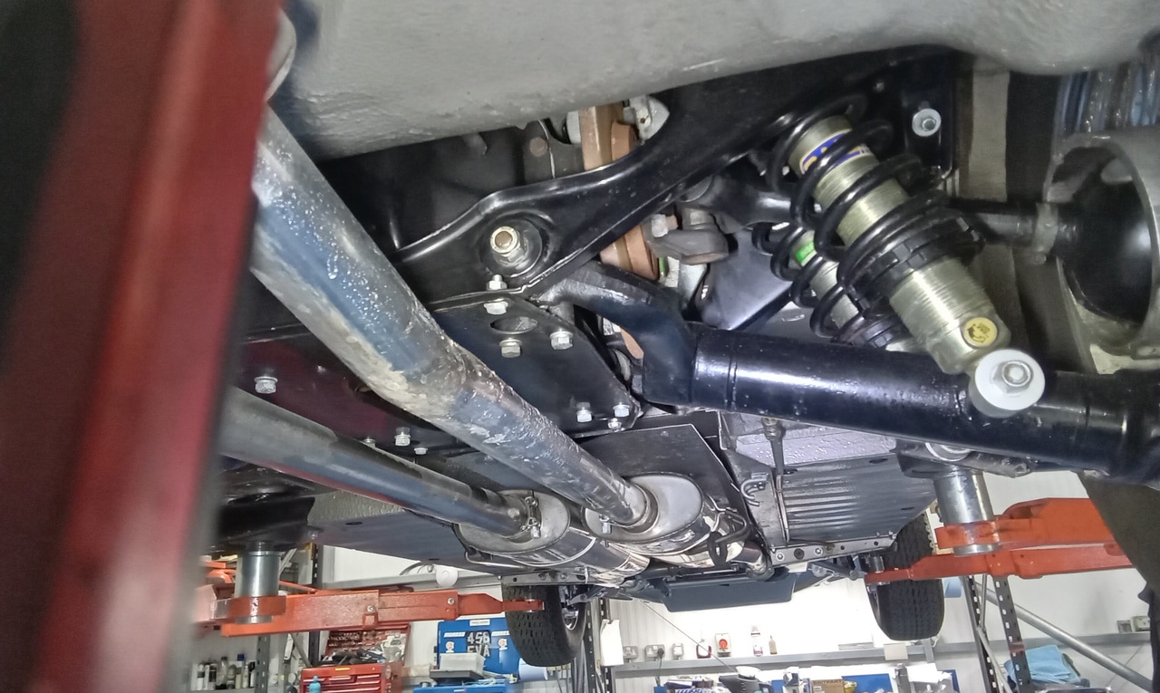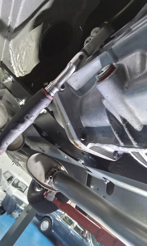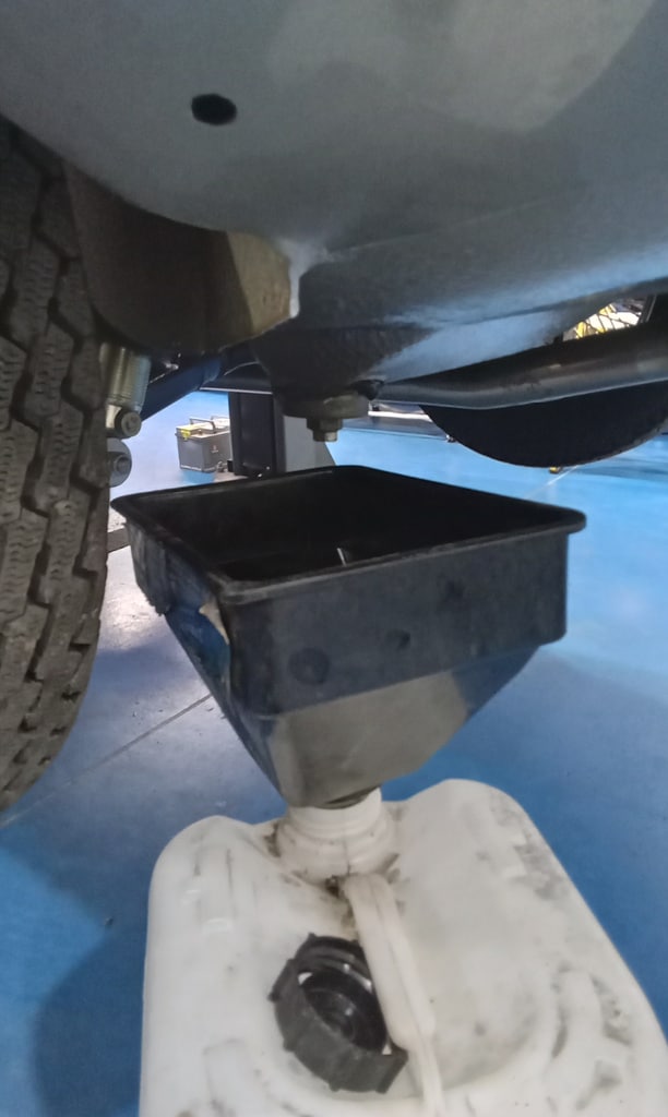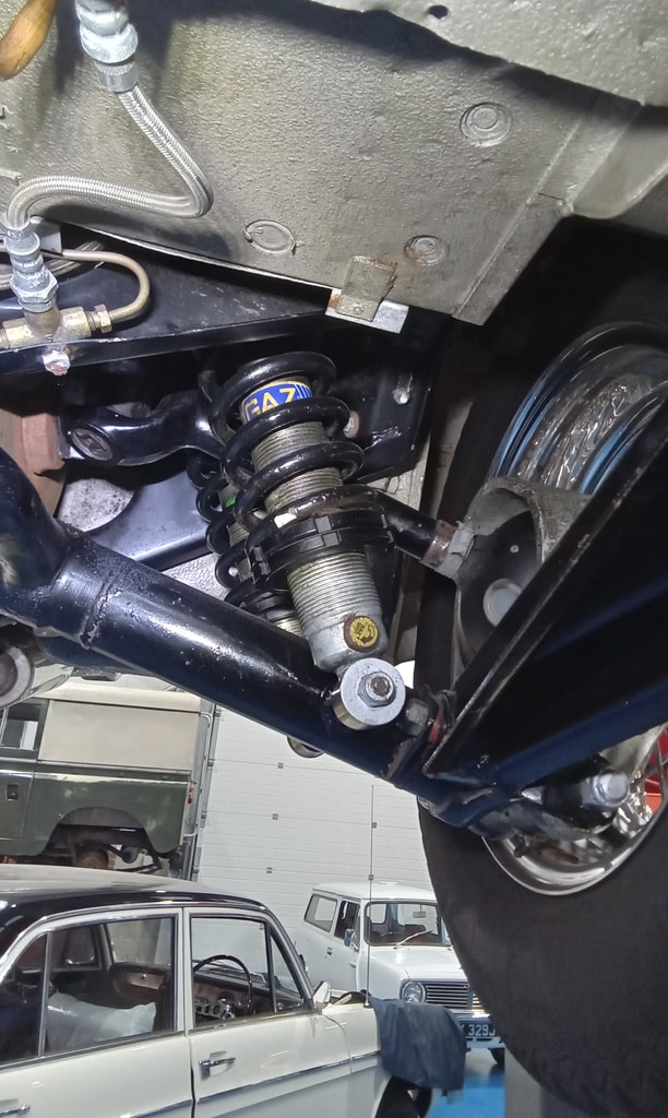 ”Carry out appraisal. (Non start). Check battery. I charged it yesterday for 6hrs. 13.1v. Test battery and it failed, requires new battery. Raise on ramp and inspect. Grease all points. Refit exhaust rubbers offside centre. Remove small heatshield and check gearbox oil, OK. Refit shield. Inspect brakes. Connect known good battery and test electrical items. Knock up wheels and inflate all tyres. Remove offside rear light lens. Tighten connections to stop/tail bulb and refit lens.”