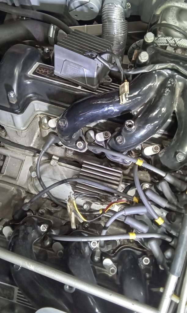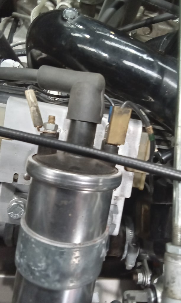 ”We managed to find an old ignition amplifier in stock. So connect and test. 12v now at coil and at ballast resistor. Crank over and it started. Strip and remove old amp moduleand fit our one. Secure wiring and crimp terminals from distributor to amp module. Shrink wrap wires and tape up. Test again and it starts fine.”