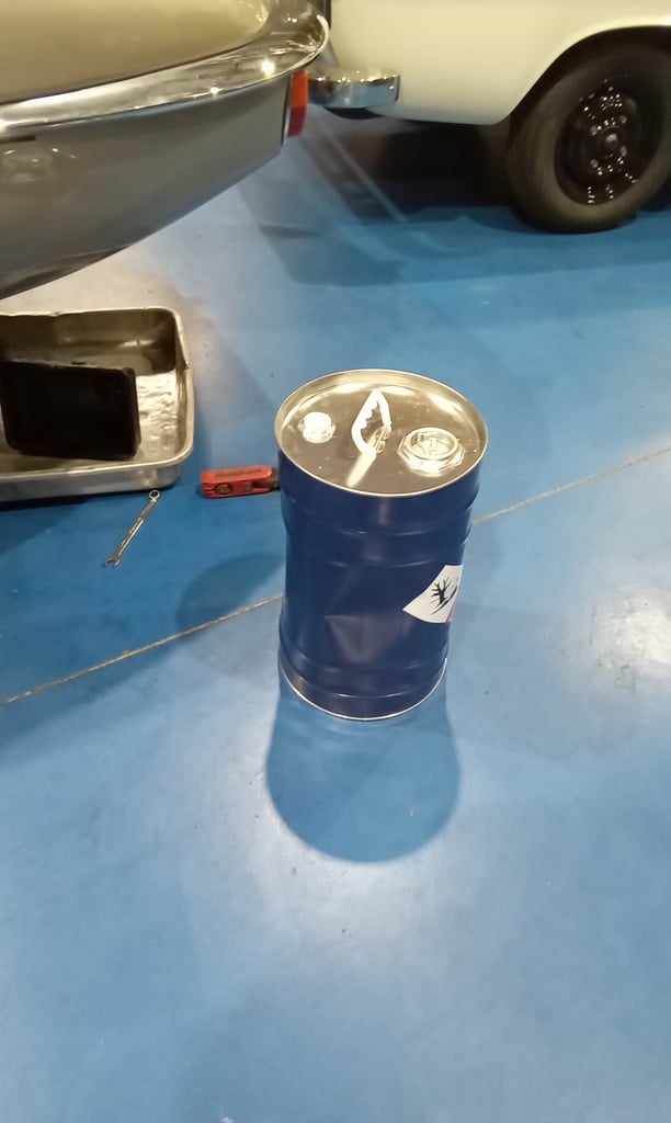 ”Fit new fuel tank drain bung seal. Grease, fit and secure. Fill with 24ltrs Synthetic fuel. Check for leaks, ok. Take outside and run up. Ready to go back to storage.”