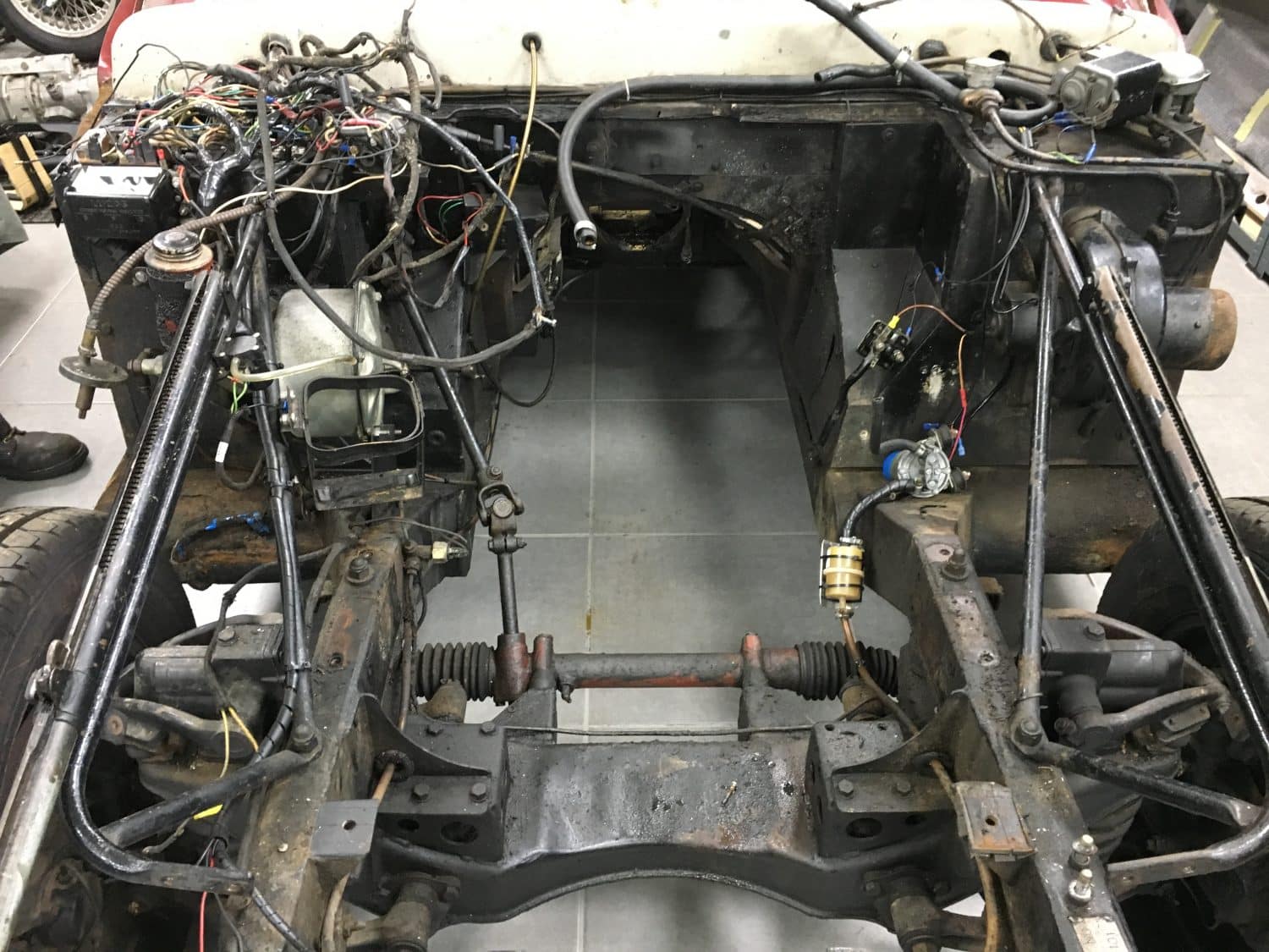 As we mentioned before, when restoring a car or taking on any project it is vital to take lots of pictures as you go along. You may never need them but if, one day, you’re questioning the position of something you know you have images to fall back on.[/vc_column_text][/vc_column][/vc_row][vc_row][vc_column][vc_gallery type=”image_grid” images=”8207,8208,8209,8210,8211,8212,8213,8214,8215,8216,8217,8218,8219,8220,8221,8222,8223,8224,8225,8226,8227,8249,8250,8251,8252,8253,8254,8255,8256,8257,8258,8259,8261″][/vc_column][/vc_row][vc_row][vc_column][vc_column_text]A successful morning in our Ipswich workshops and Asa and John, together, managed to lift the Jensen 541S engine and gearbox out of the car.
