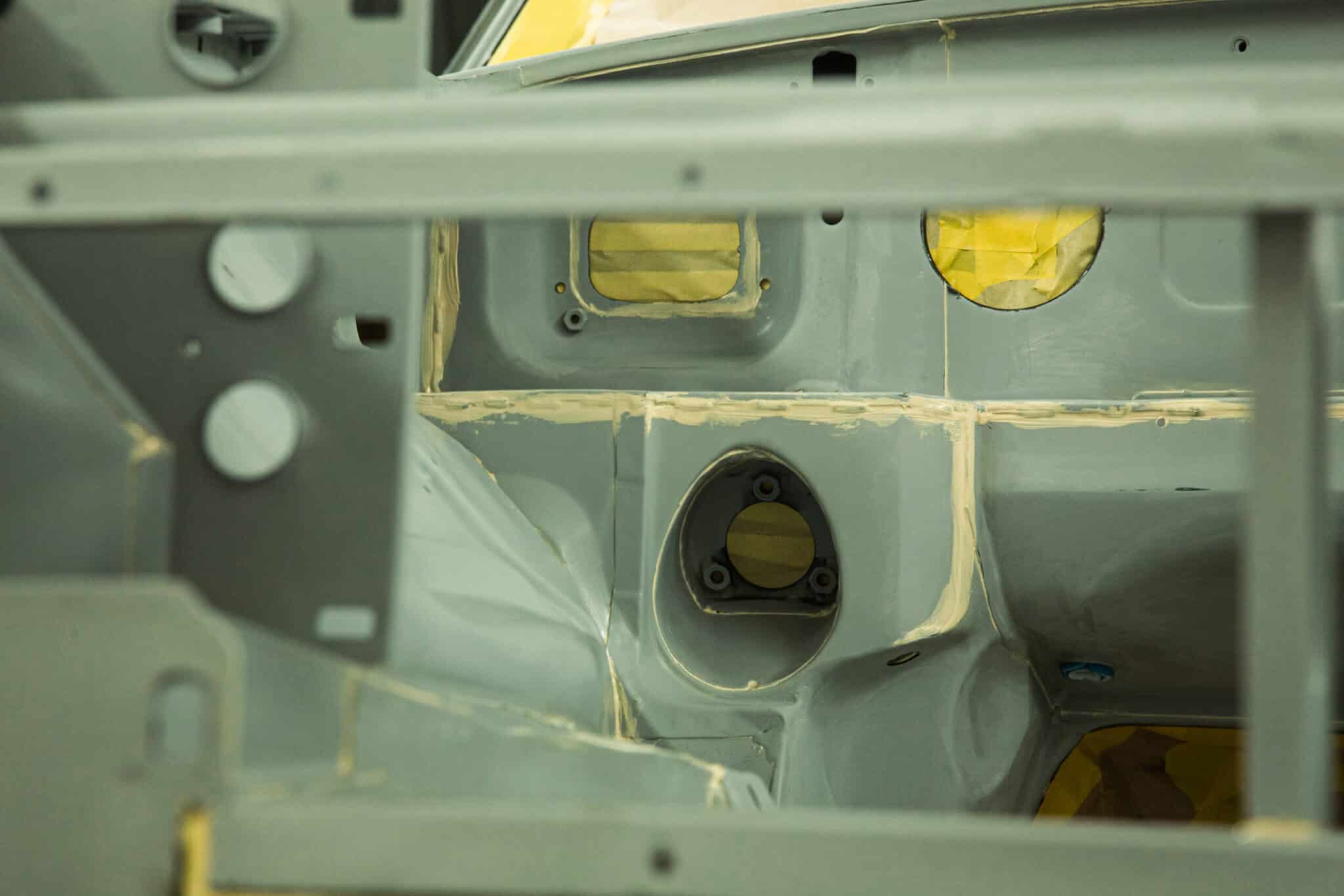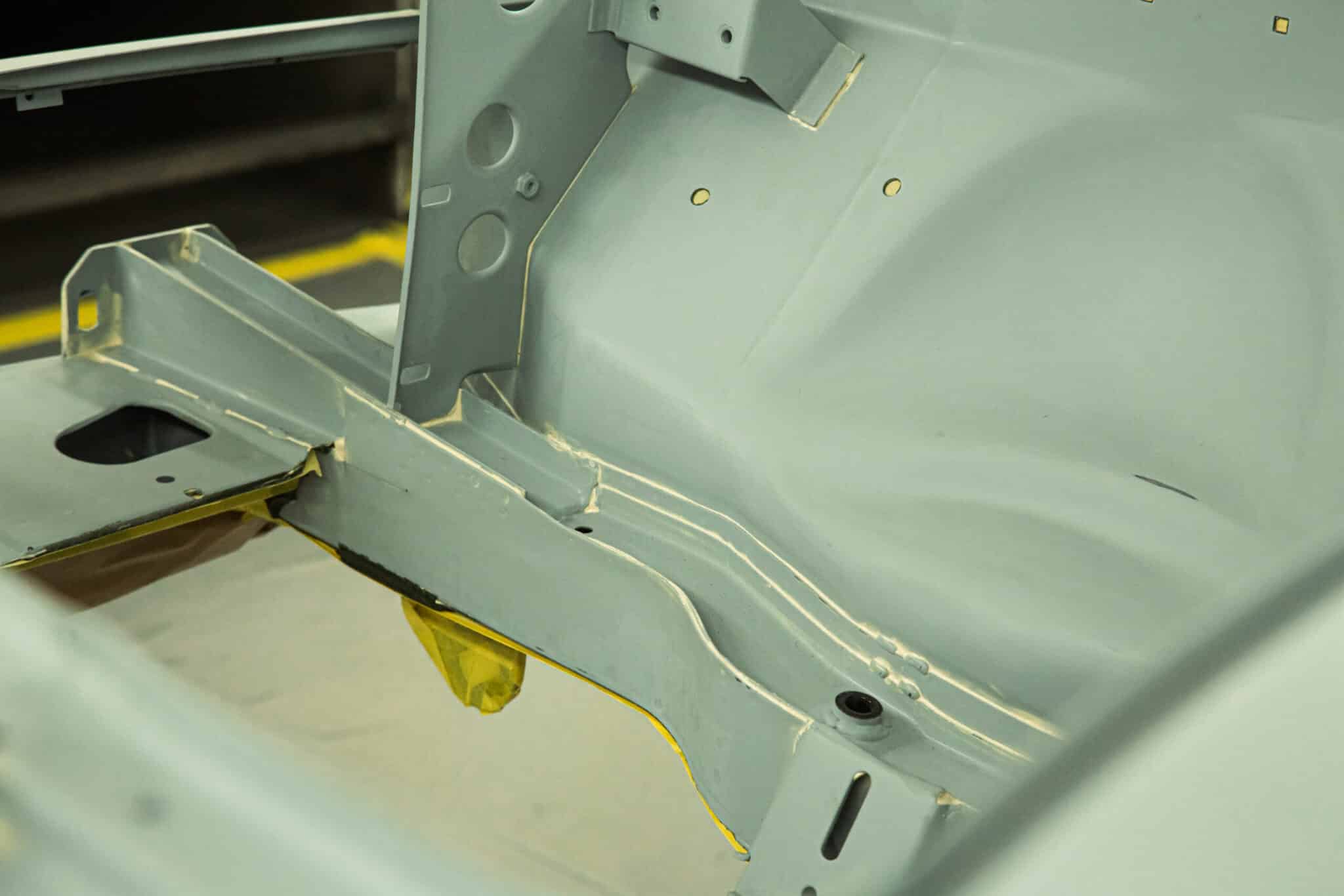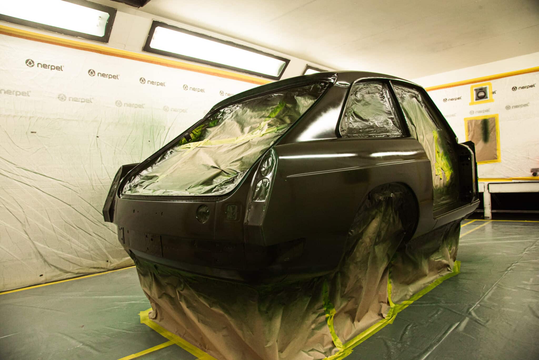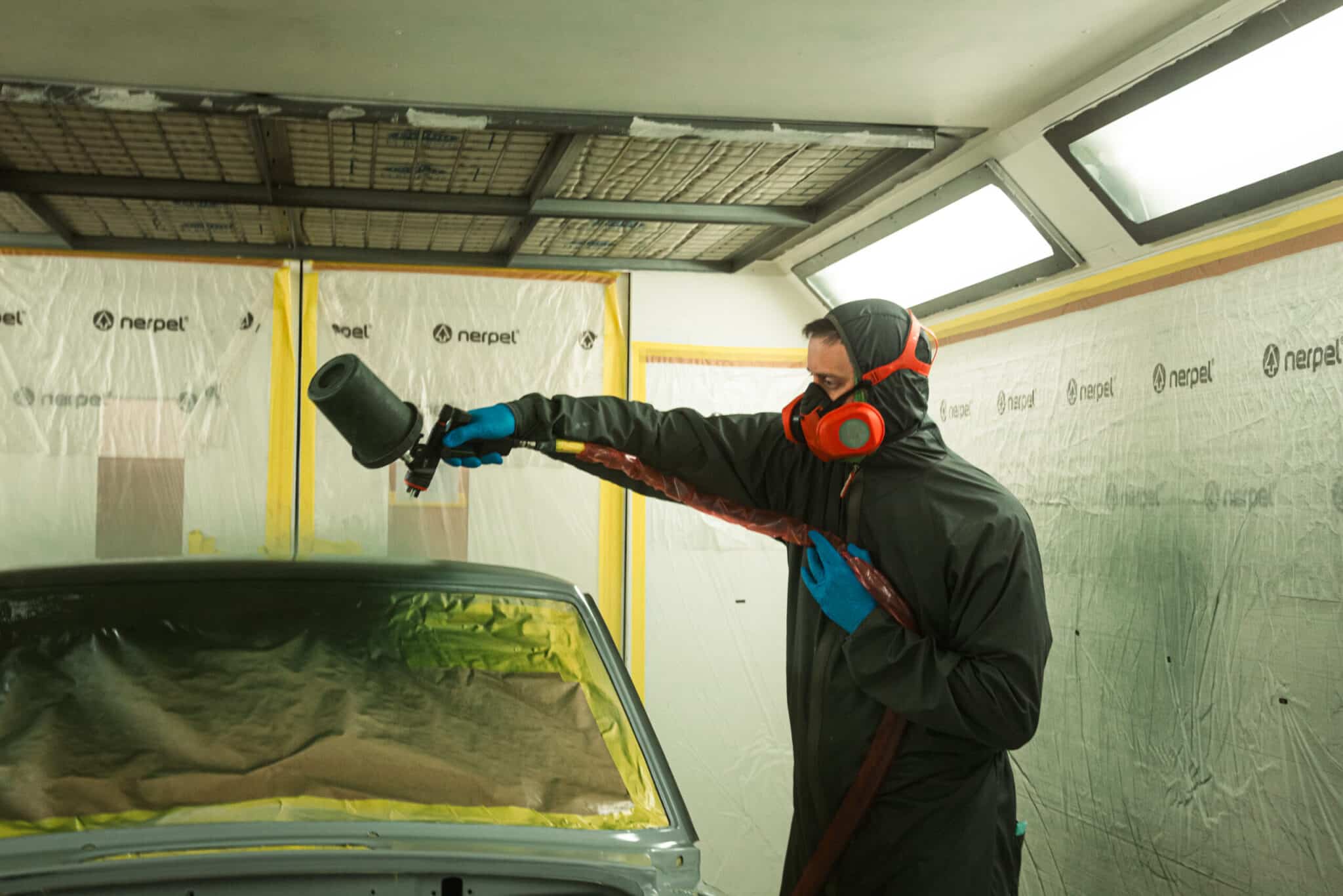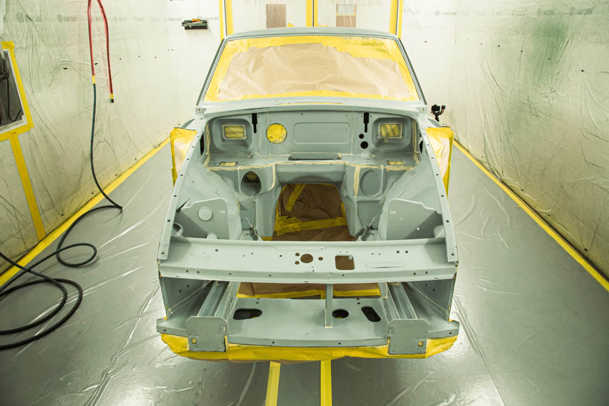 This morning, the day came for the 1975 MG B GT V8 to have its bodyshell painted. Adam, one of our amazing paint and body technicians, has been in control of this side of the cars restoration – from preparing the heritage shell through the many phases of priming, sanding and levelling to get the car to this point. Once the car had been cleaned down and sealed, Adam could lay down the first coat of Tundra Green onto the car so of course we had to jump in the booth with him as this special project gets its new look.