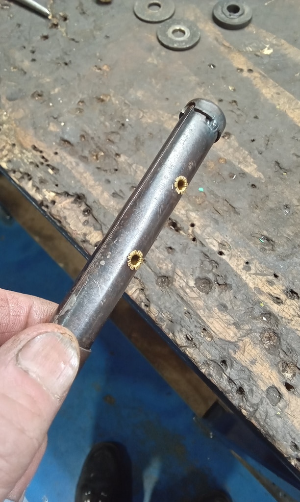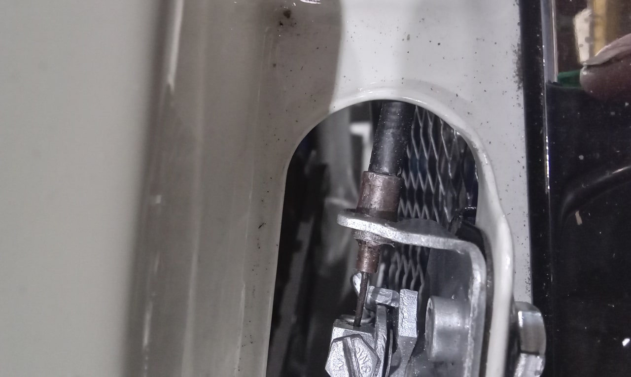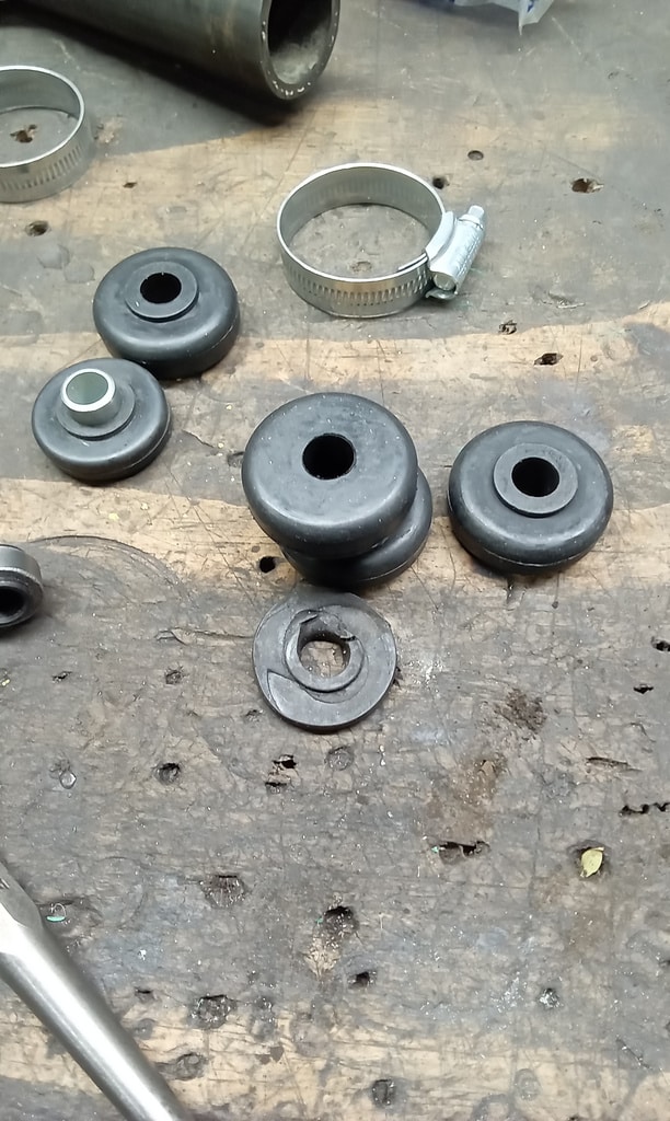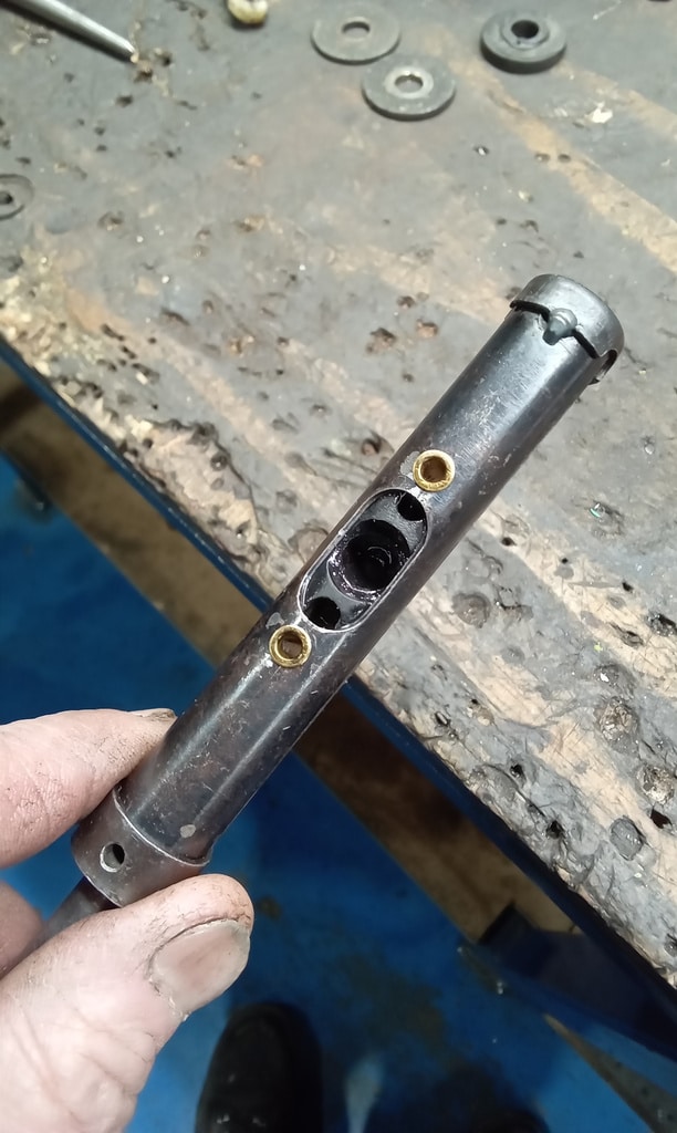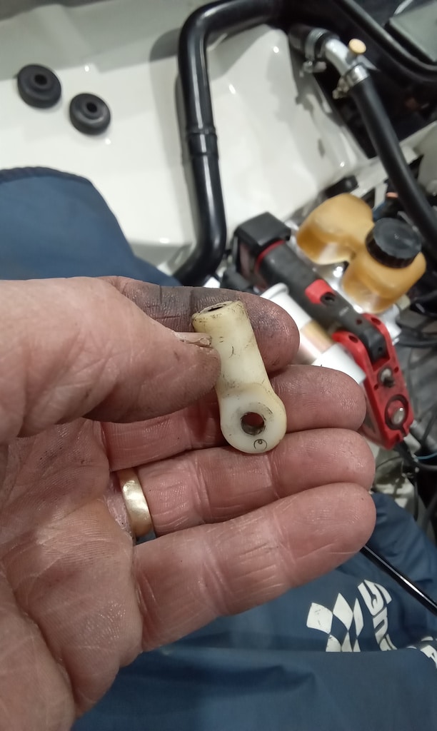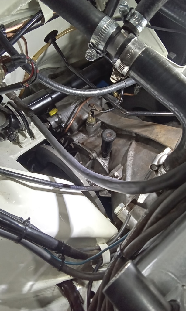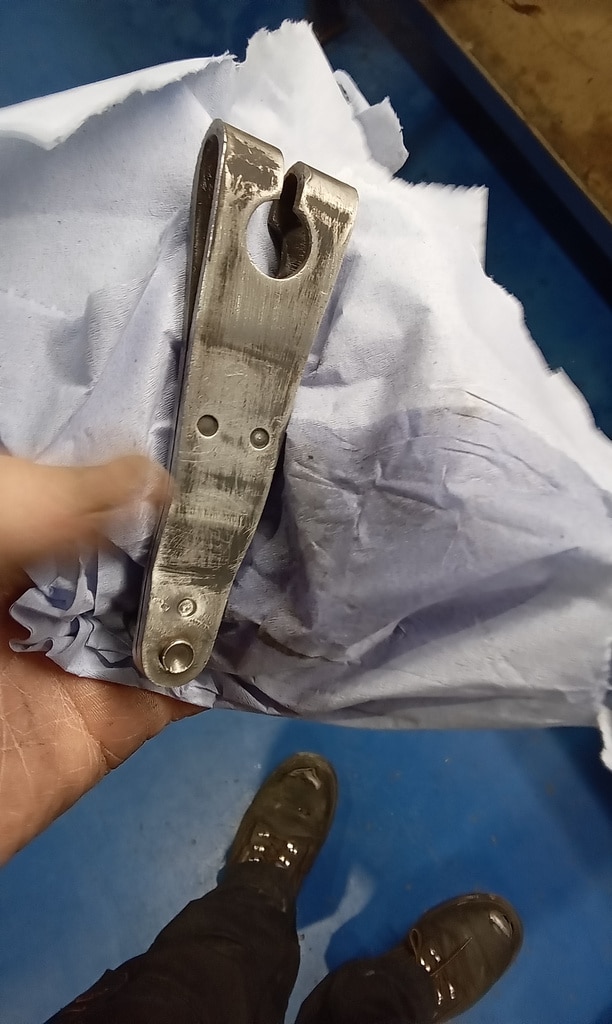 ‘Prepare gear link arm and selector rod for fitment. Paint arm. John shrink wrapped selector cable. Slide over arm and fit pinch bolt. Fit selector arm and lube ball sockets. Press ball sockets on and align arm. Tighten pinch bolt and fit rubbers to cable a d secure. Fit selector cable ball end and press into socket. Test gears. See all OK.’