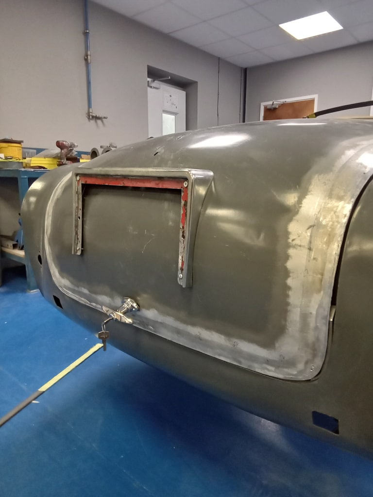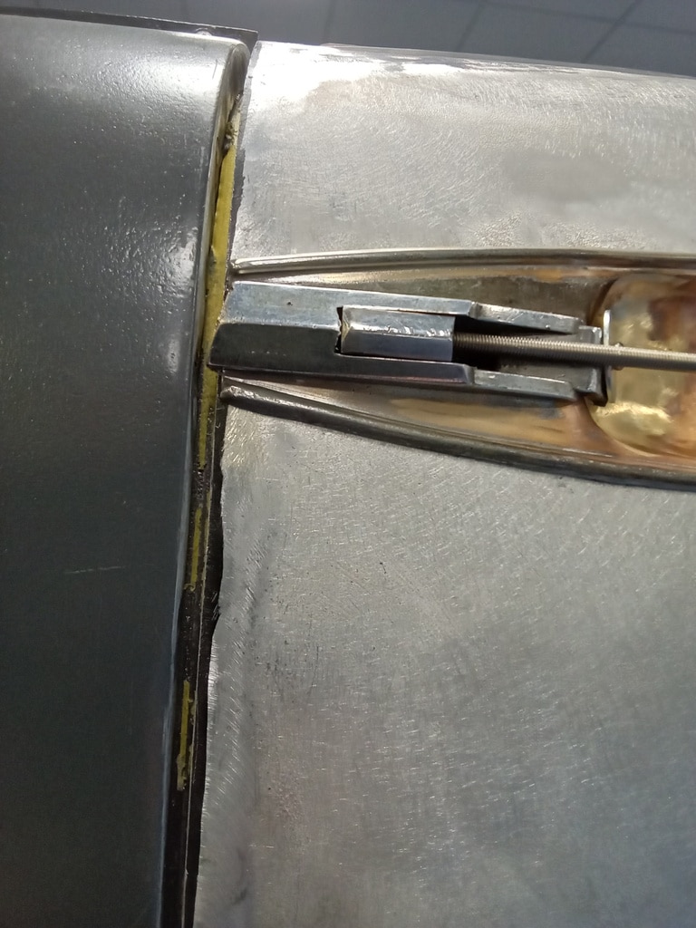 The Bridge Classic Cars paint and body team are working their way through the adjustments and panel moving on the 1955 Aston Martin DB2/4 Drophead Coupe here at our Suffolk HQ. Mauro, one of our paint and body technicians, has been getting both the passenger and drivers door adjusted on their strikers while also making sure that the panel gaps were even and uniform. Once done, Mauro began to readjust the boot lid to make sure that the locking mechanism lands correctly but like the doors are even and uniform in their panel gap.