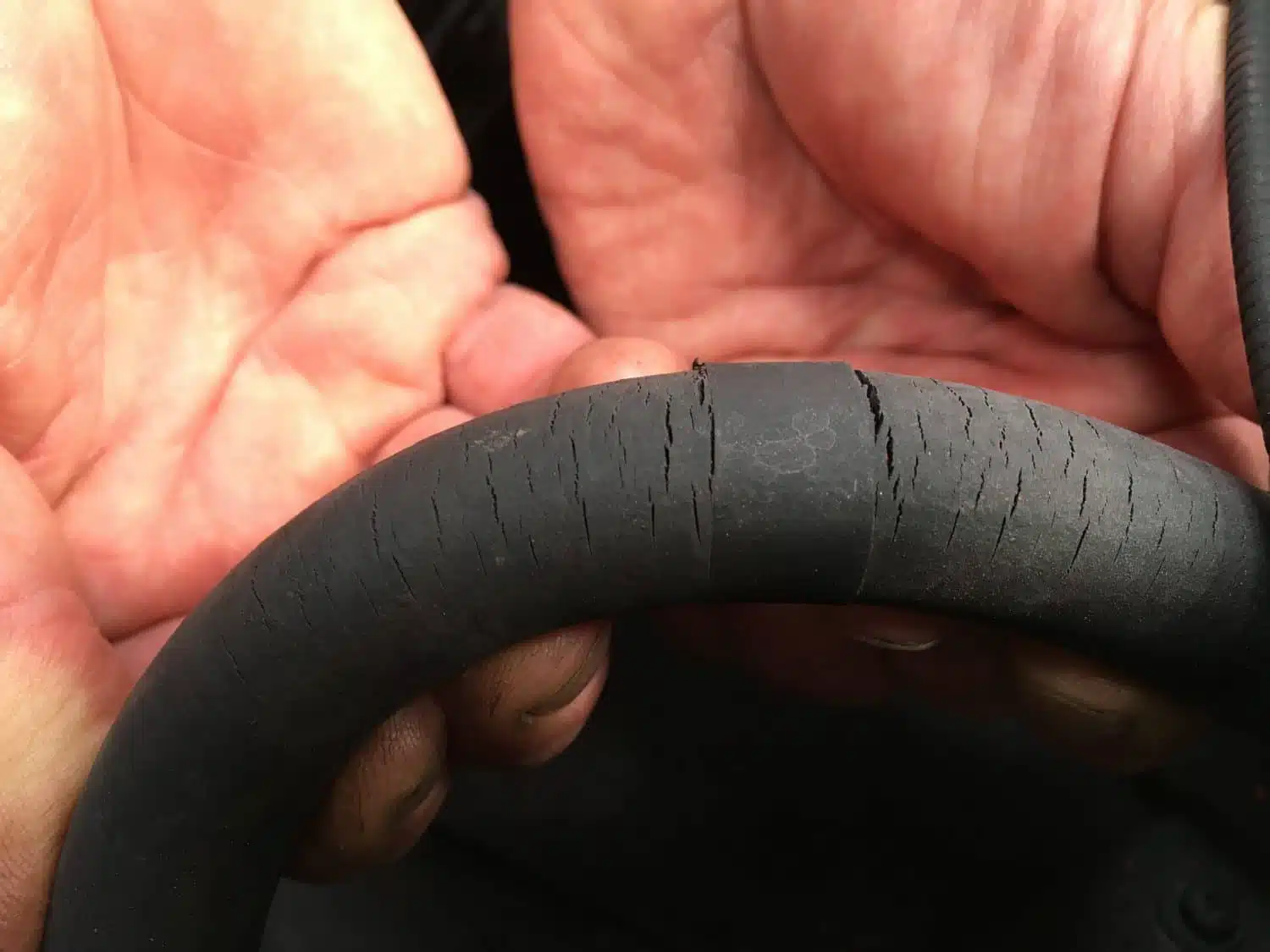 Another one of the hoses had lost its flexibility entirely, this is not a good sign. When rubber no longer flexes it is time to renew. What makes this example worse is that the tube has expanded too.