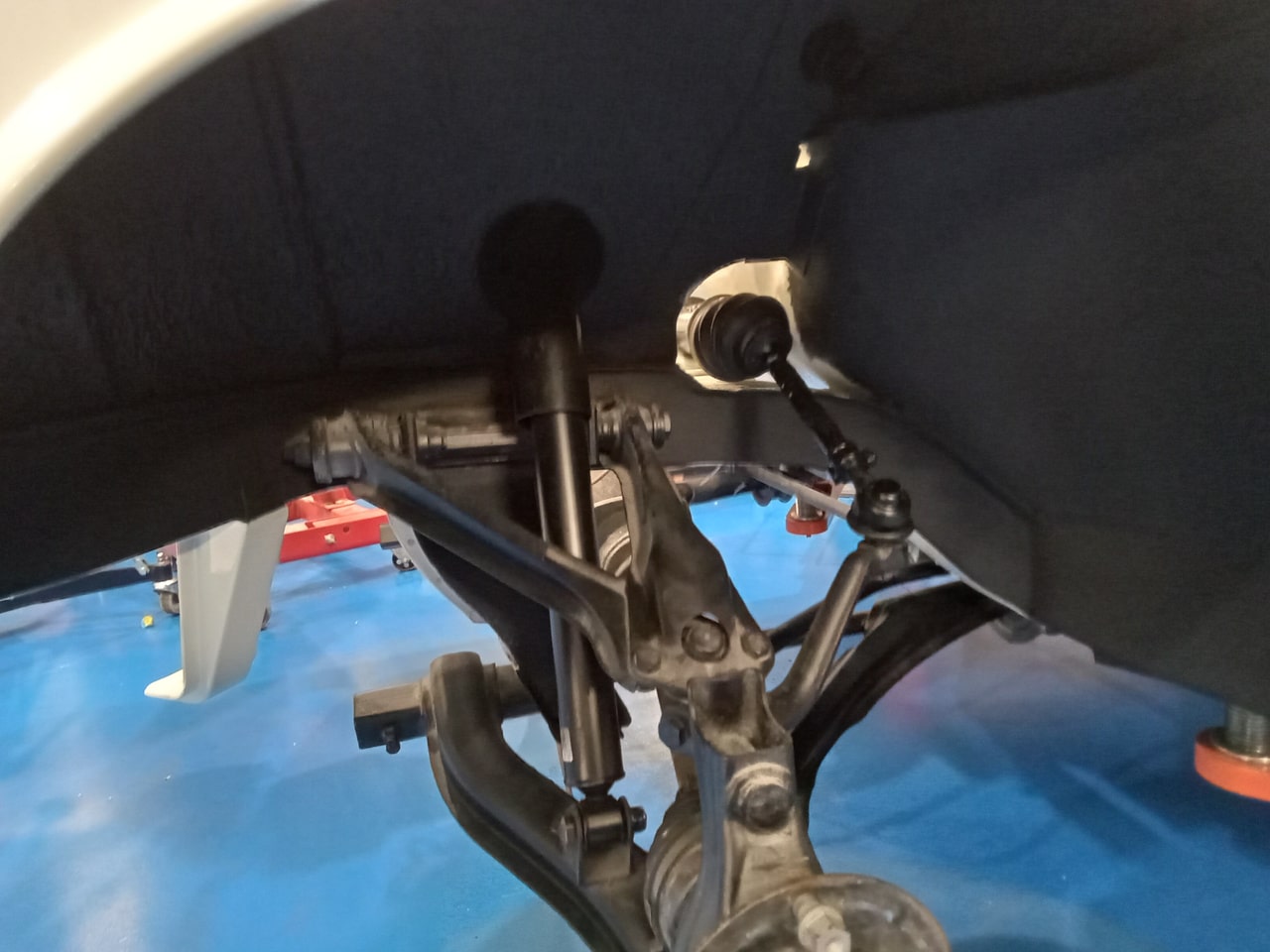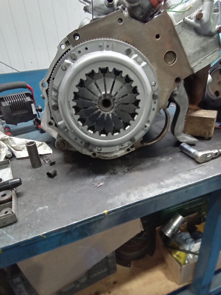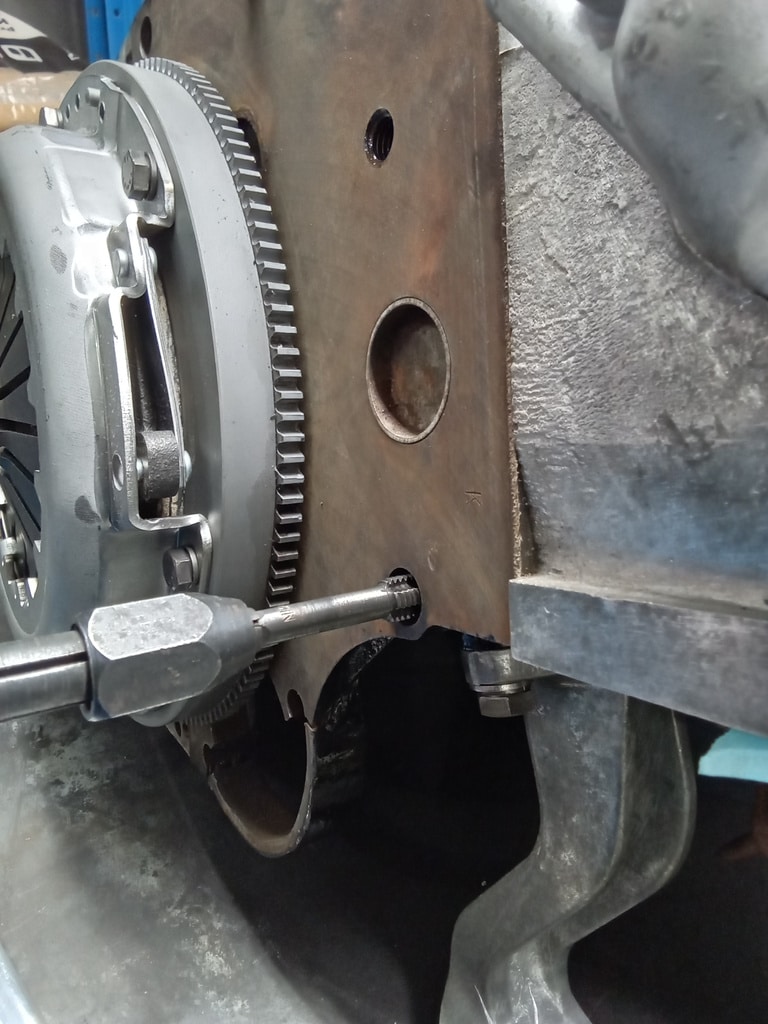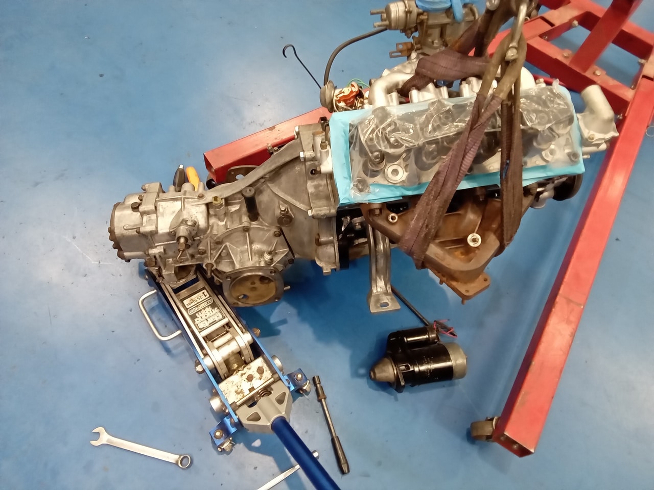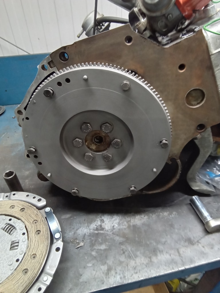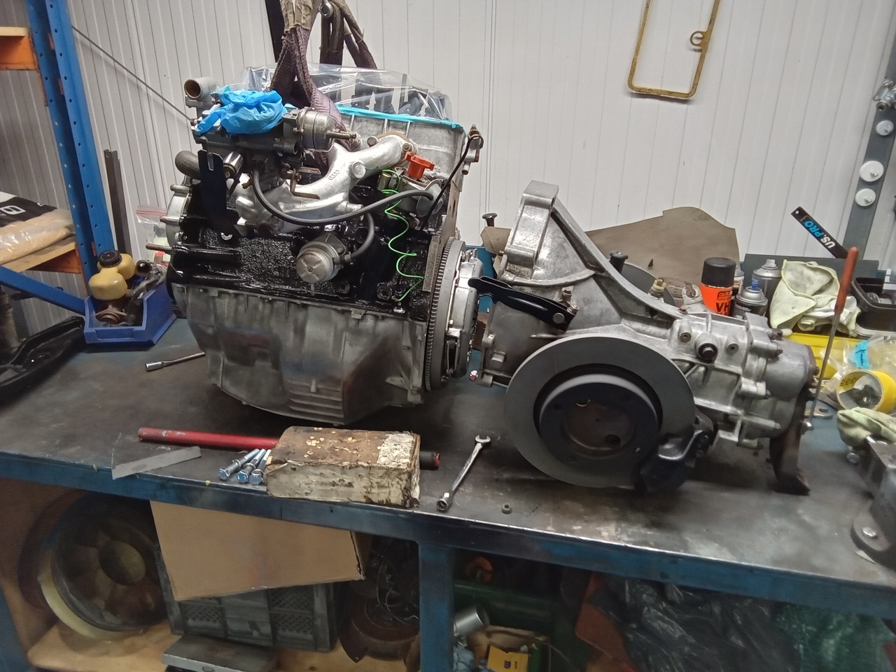 Fitted seat belts, painted and fitted brake lines to front calipers. Fitted engine and gearbox into car. Started making template for offside engine mount.