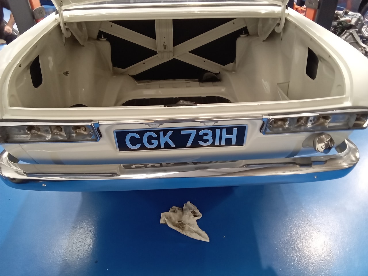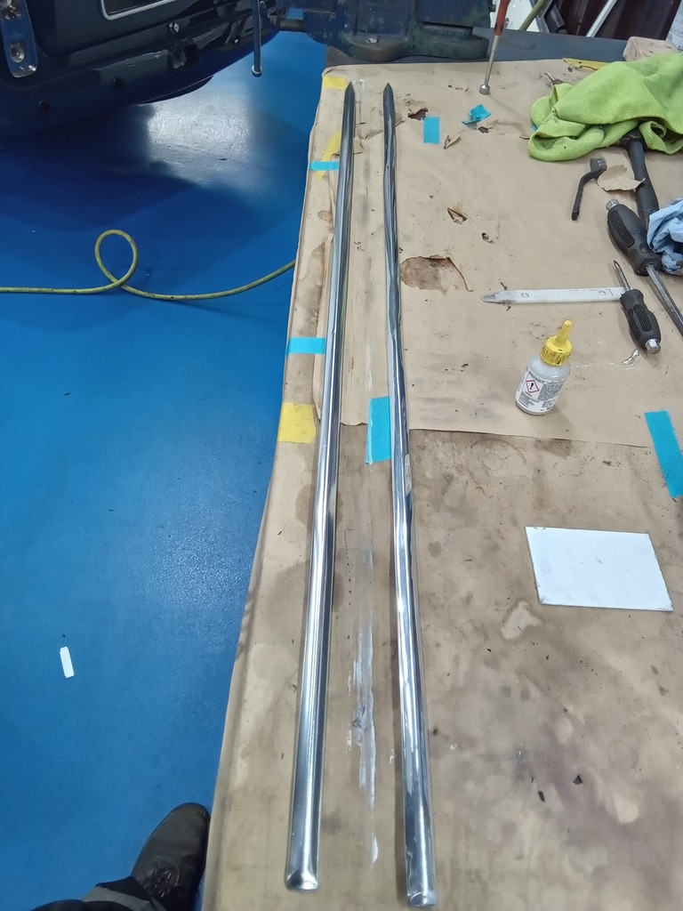 Repaired and polished second hand front wing trim, filed out holes in front wings, fitted new trim clips and fitted trims, filed out holes in offside front front door fitted trim, realined clutch and fitted gearbox to engine, refitted up brakes to gearbox. Removed front wheels and undersealed under wheel arches.