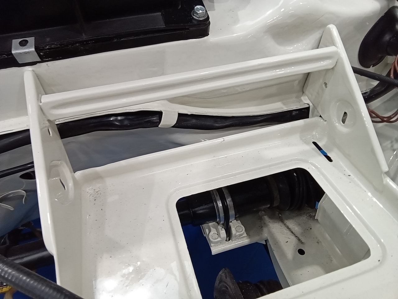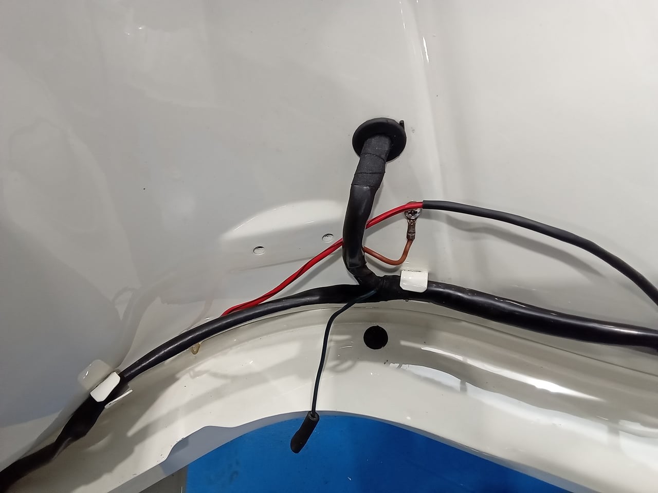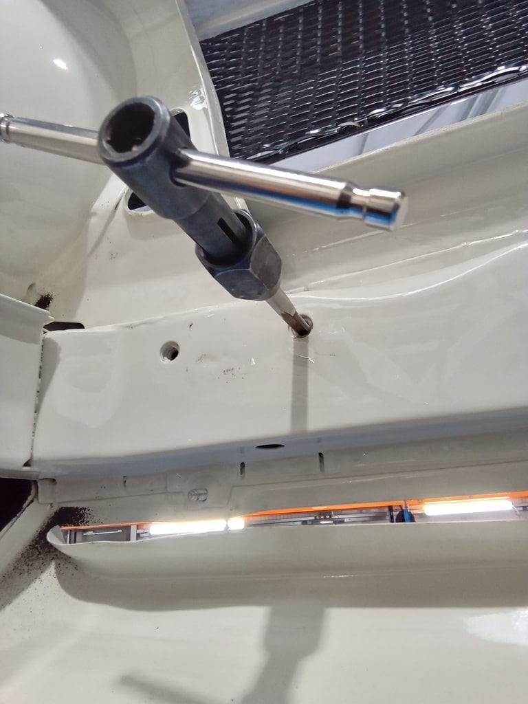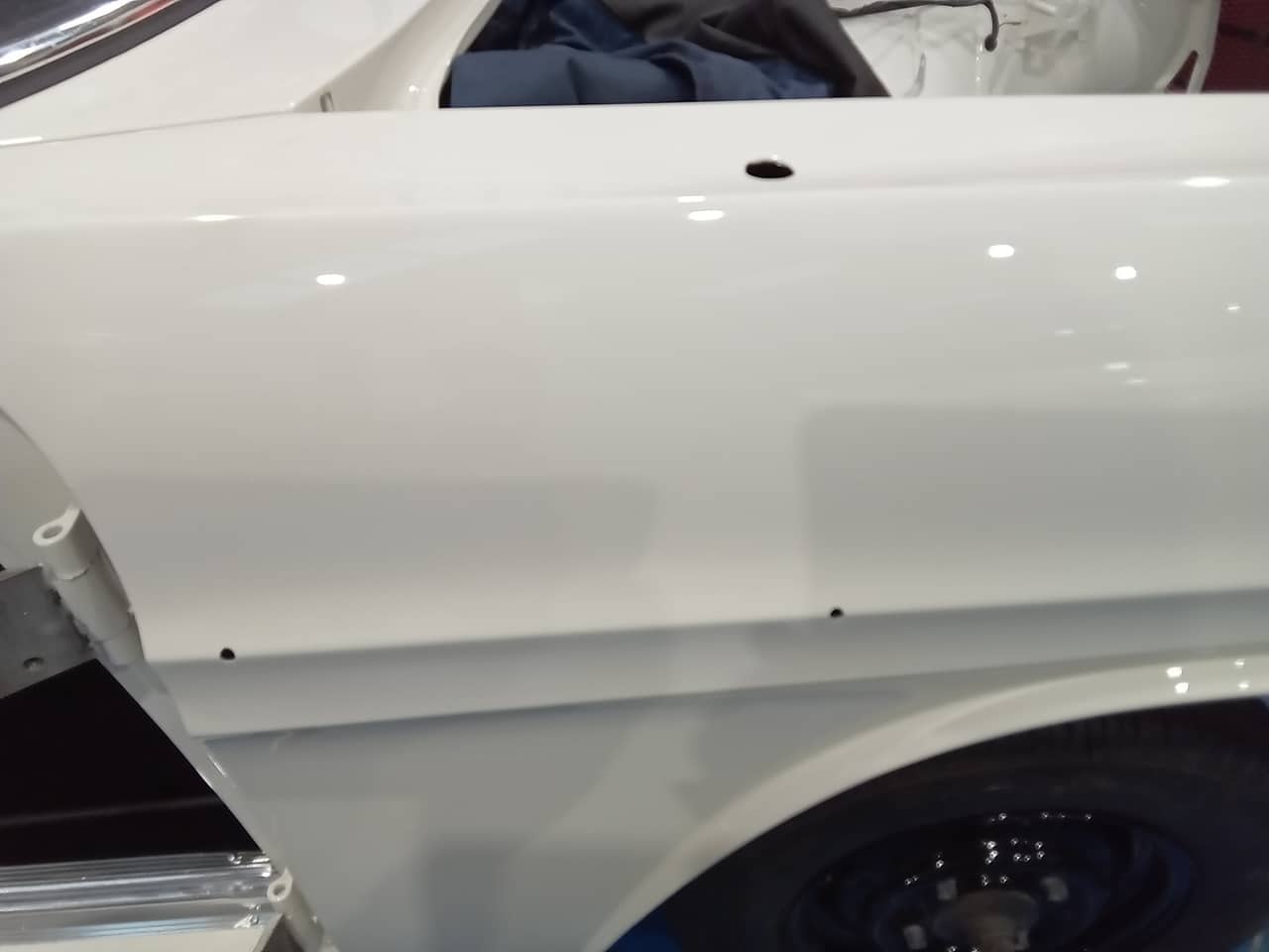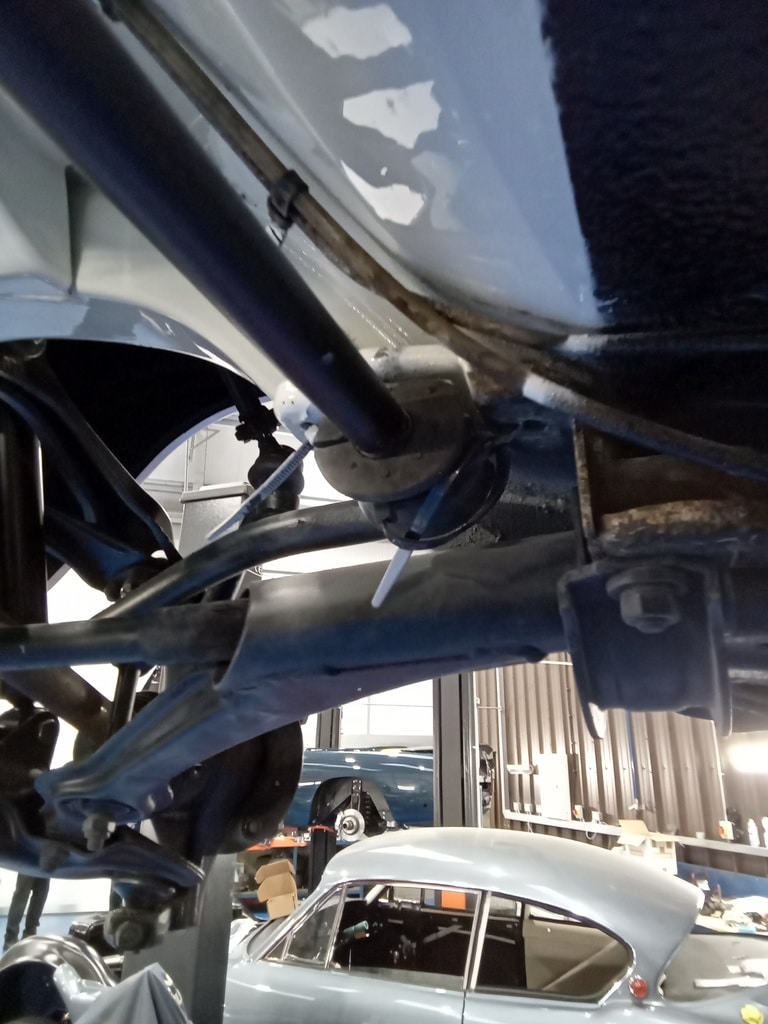 Finished off undersealing front wheel arches, demasked, fitted offside front indicator. Cleaned off overspray off loom under bonnet rerouted wiring. Screwed earth leads in place. Removed rear lights cut down old wing trim and fitted between rear lights, refitted lights. Modified door trim clips and fitted last door trim to offside front door. Sorted out all possible engine mounts. Sorted out new bolts and cutting size, started bolting up engine mounts ready to fit engine.