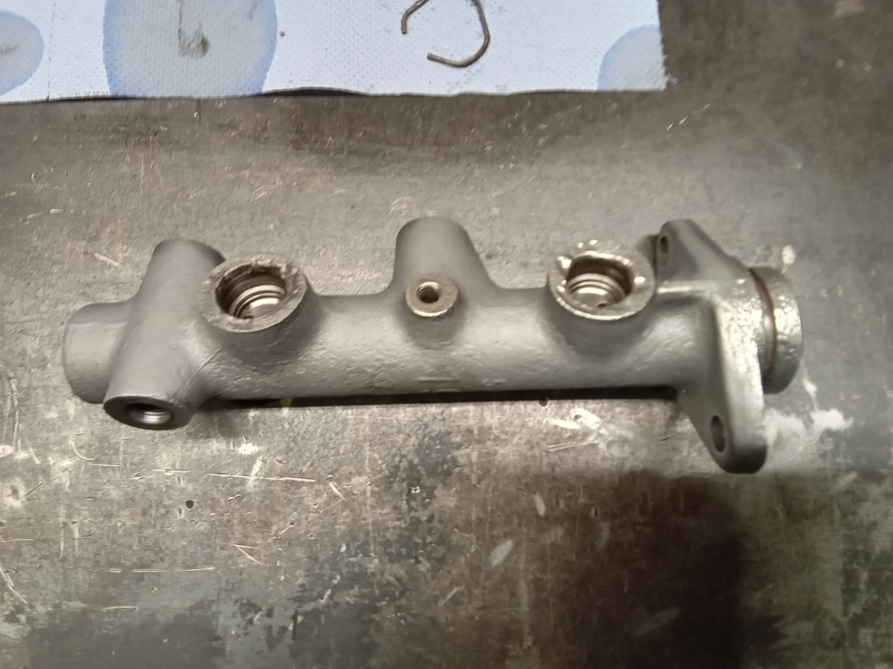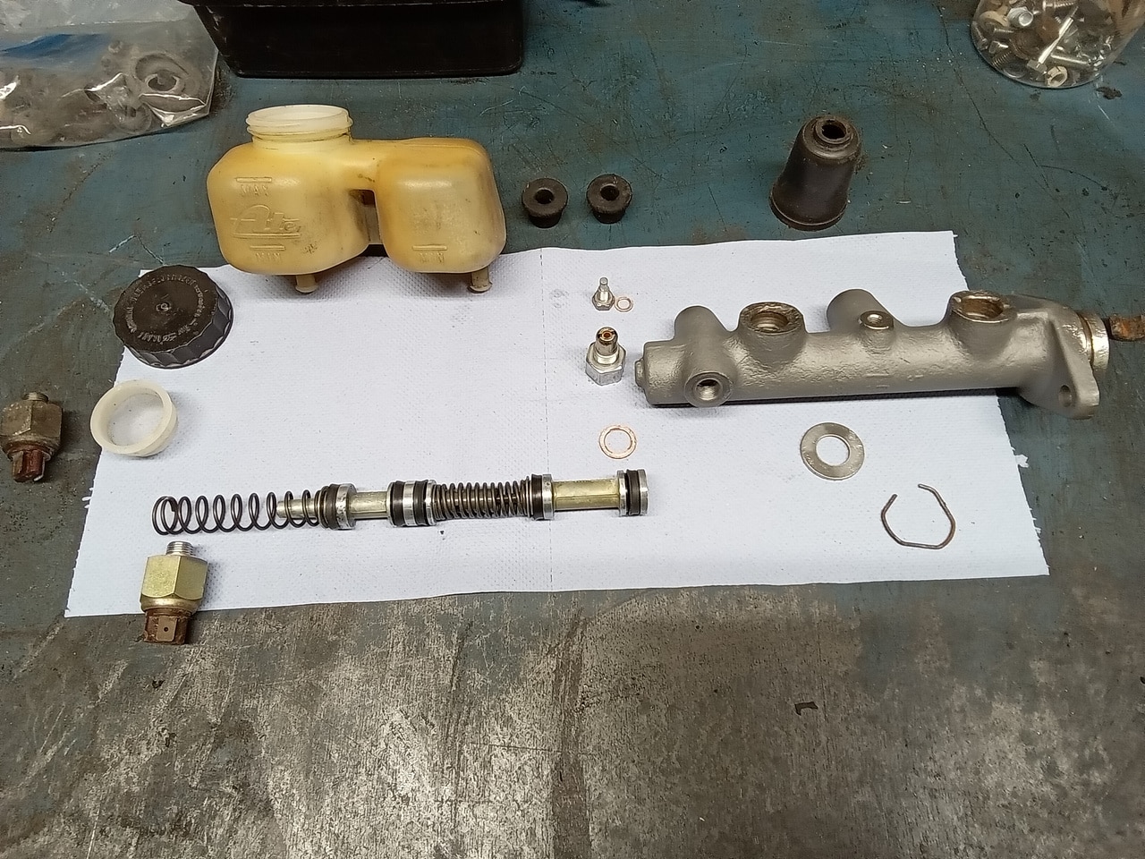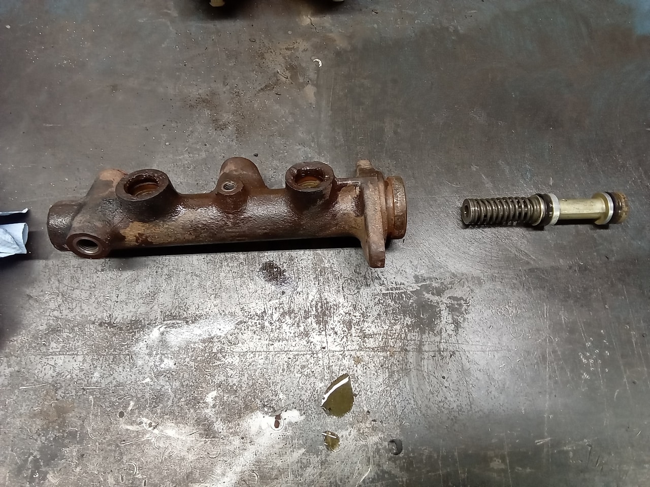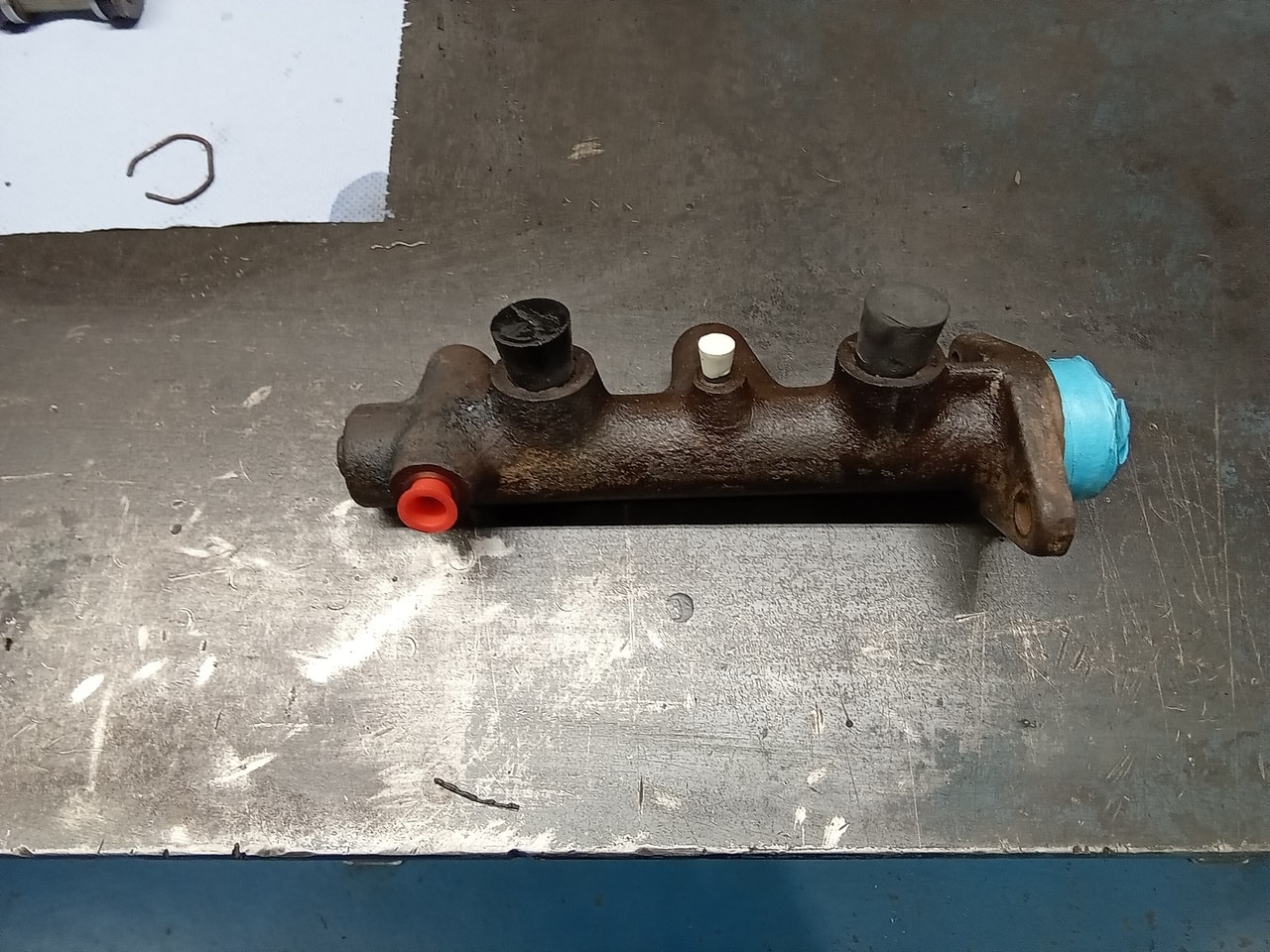Tapped out threads in door hinges cleaned up bolts, fitted both rear doors. Stripped down brake master cylinder, sandblasted body, cleaned up switch and all internal moving parts, washed out reservoir and filter. Ready for rebuilding.