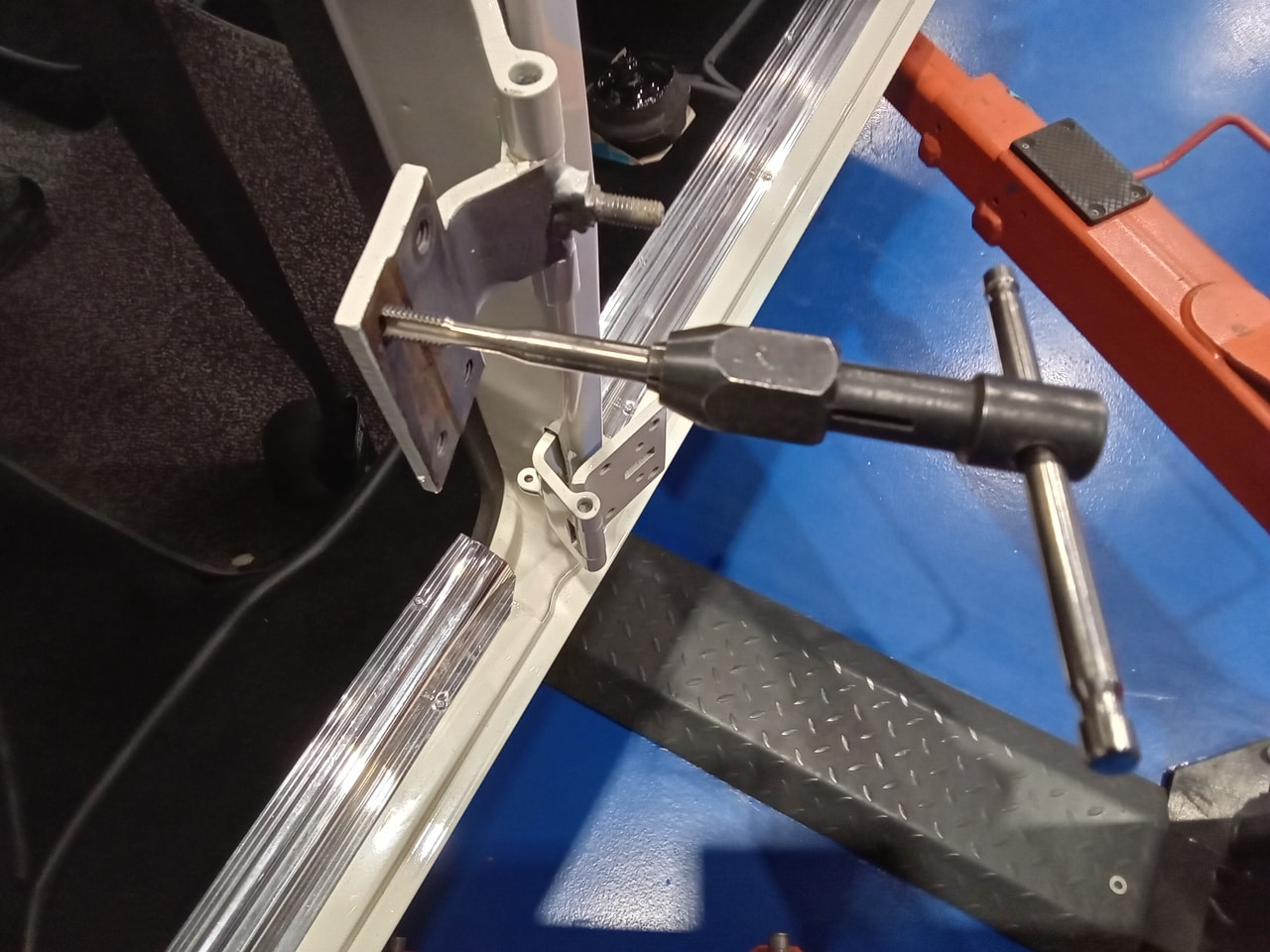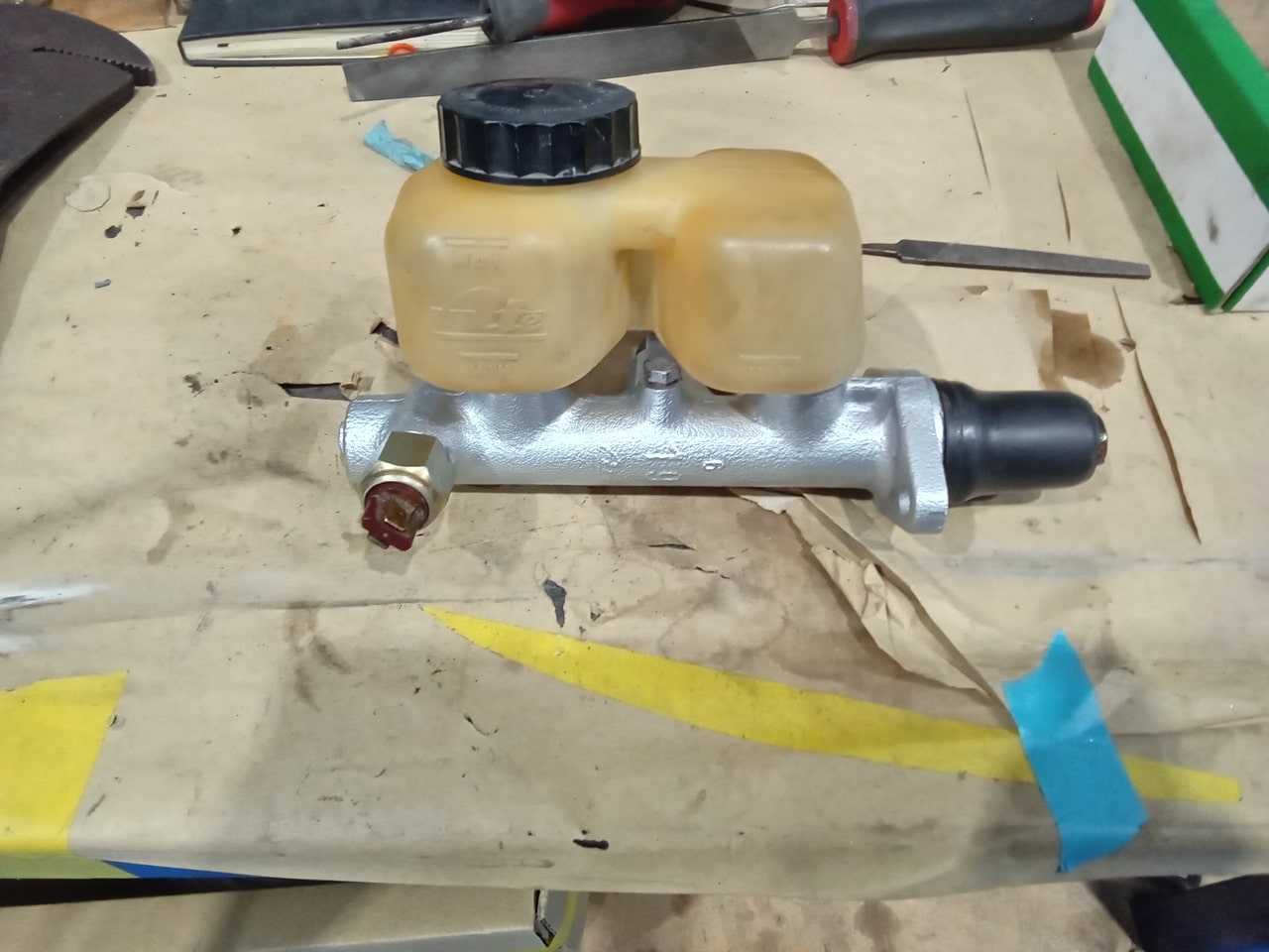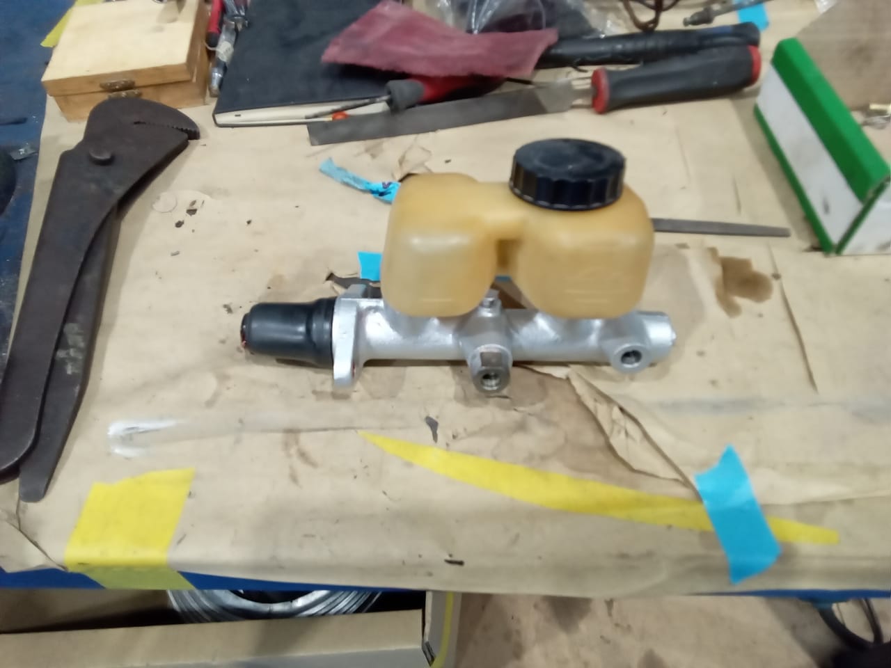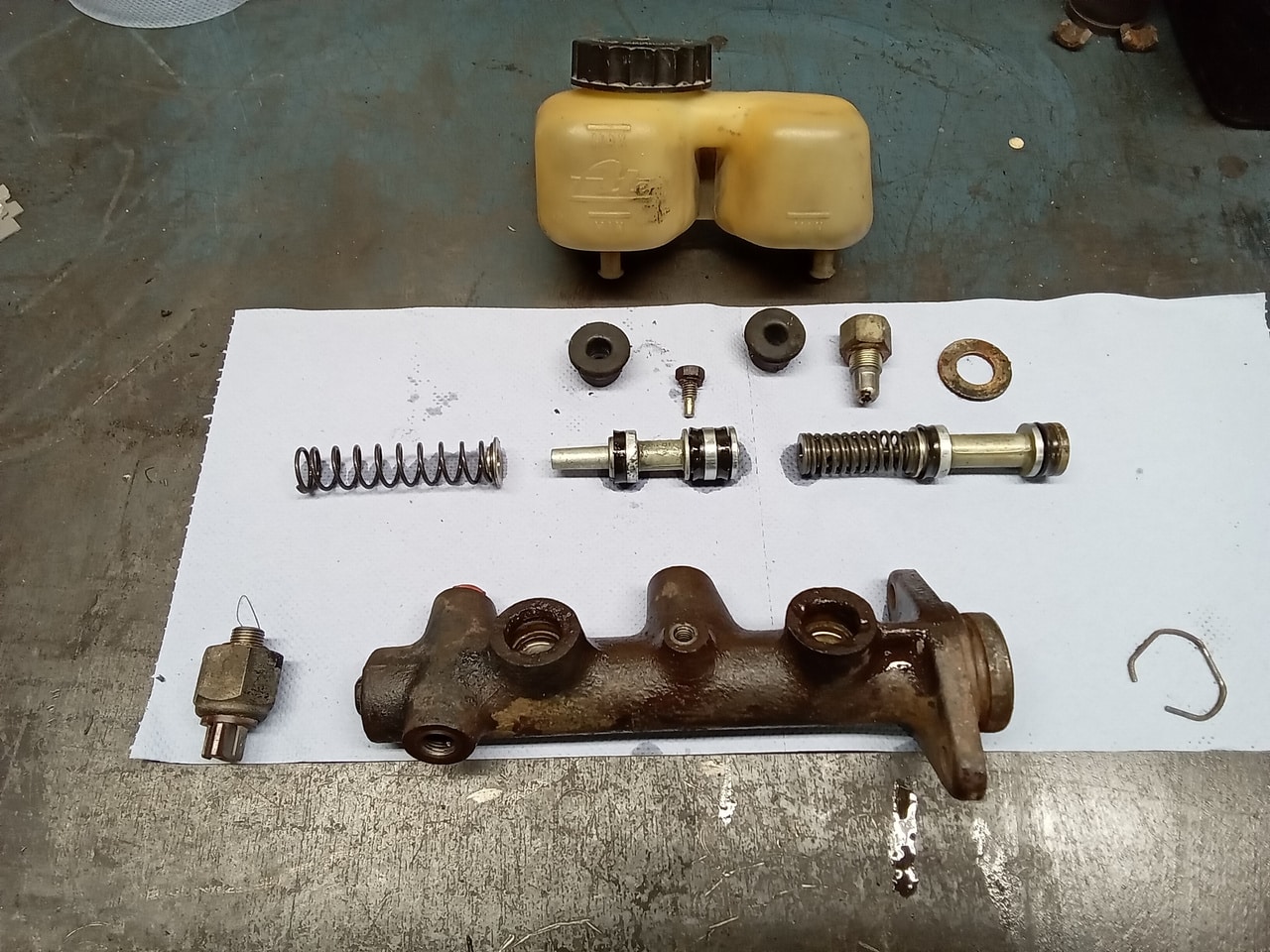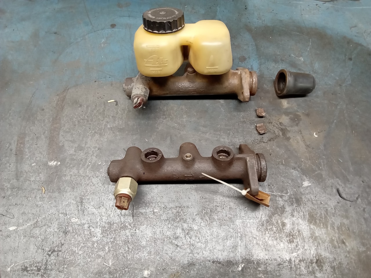 Tapped out threads in door hinges cleaned up bolts, fitted both rear doors. Stripped down brake master cylinder, sandblasted body, cleaned up switch and all internal moving parts, washed out reservoir and filter. Ready for rebuilding.