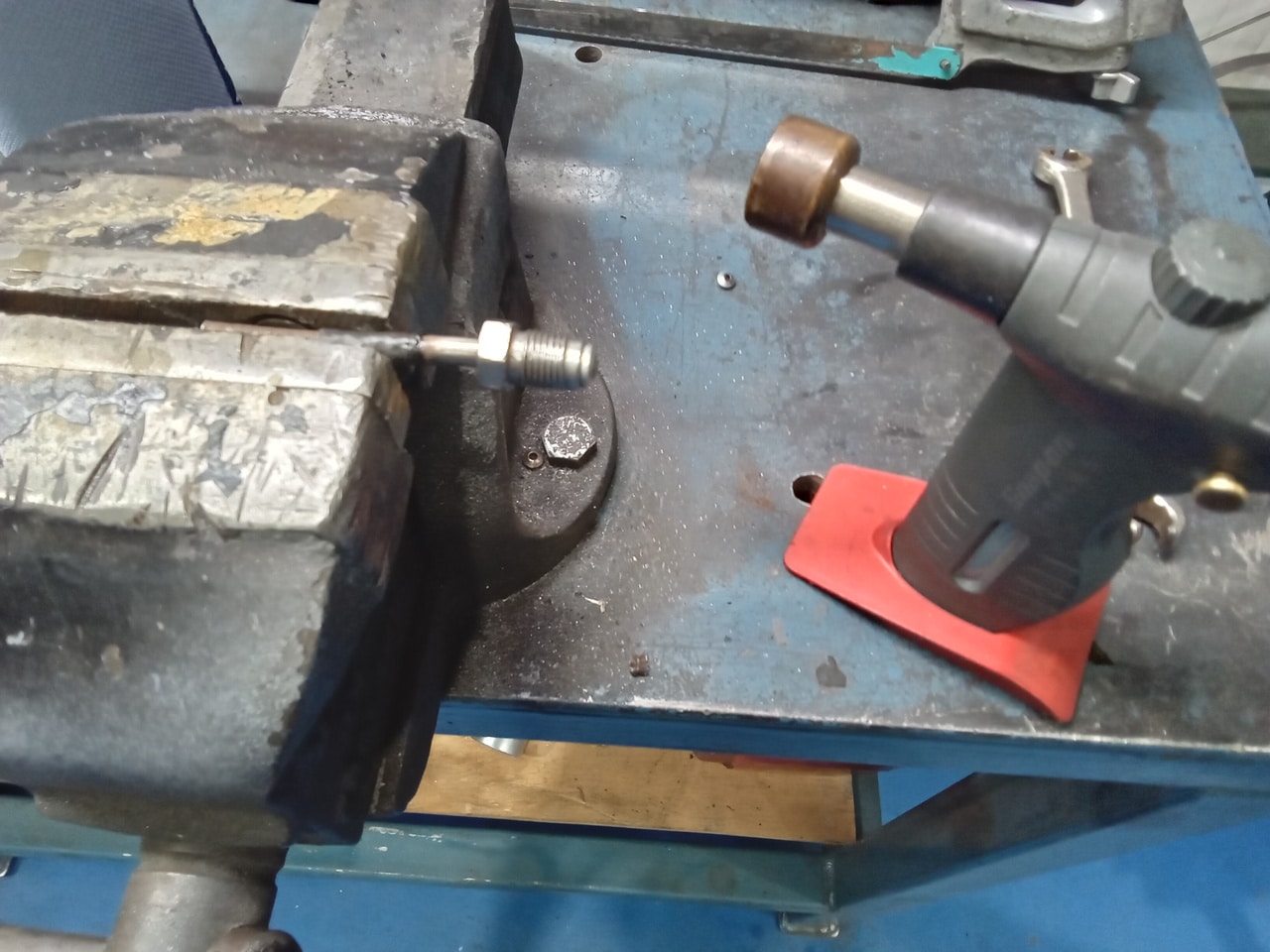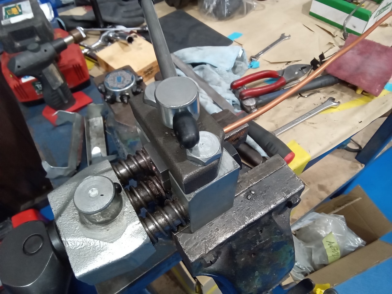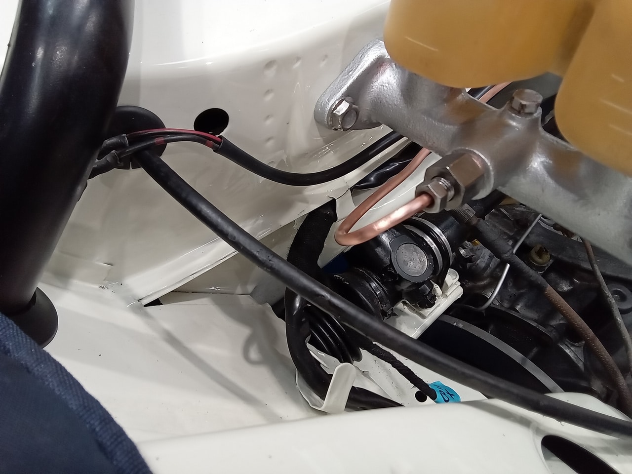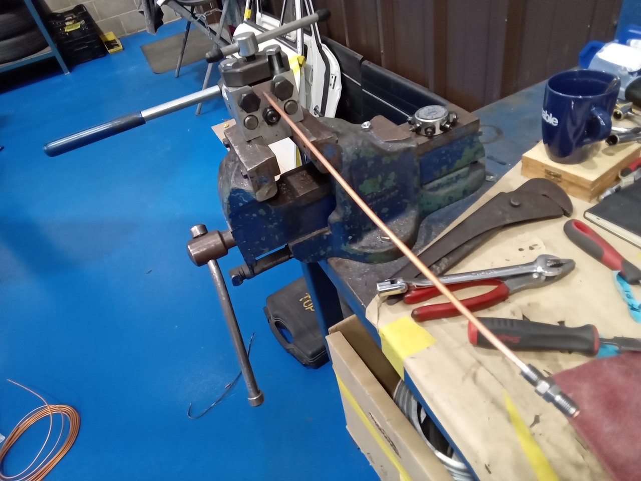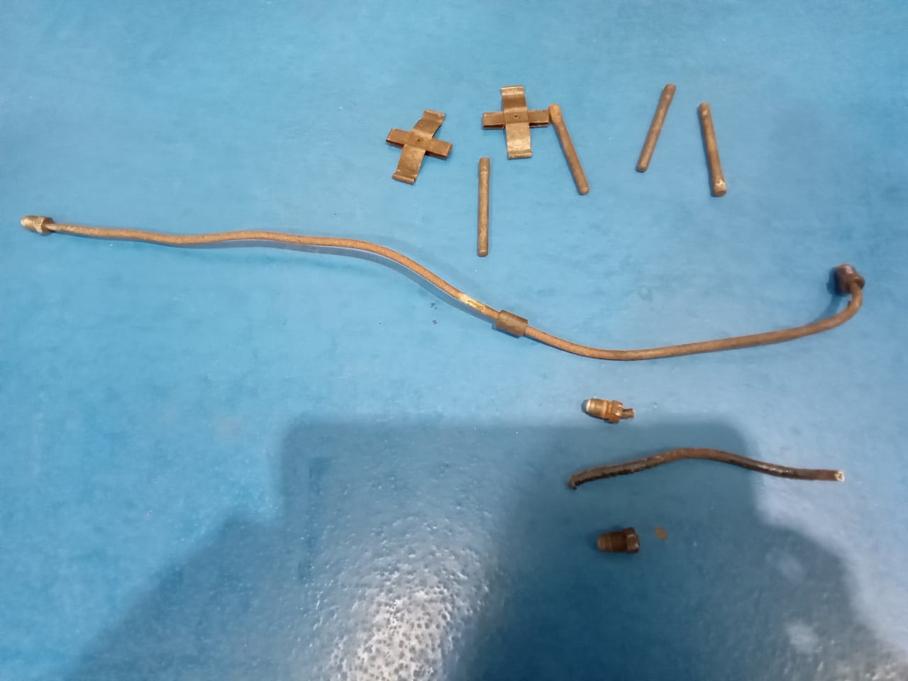 Cleaned and painted master cylinder, rebuilt master cylinder and fitted. Removed old brake pipes around, removed old Unions Cleaned up and made up new brake pipes all round and fitted”