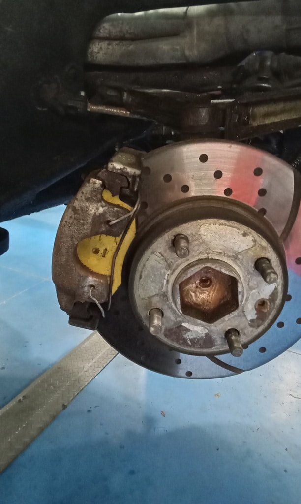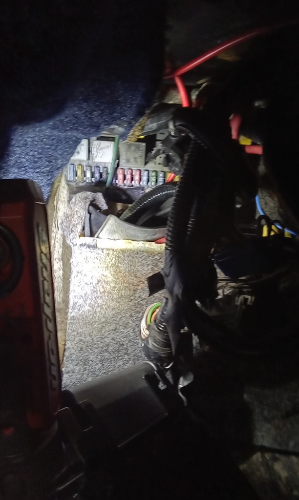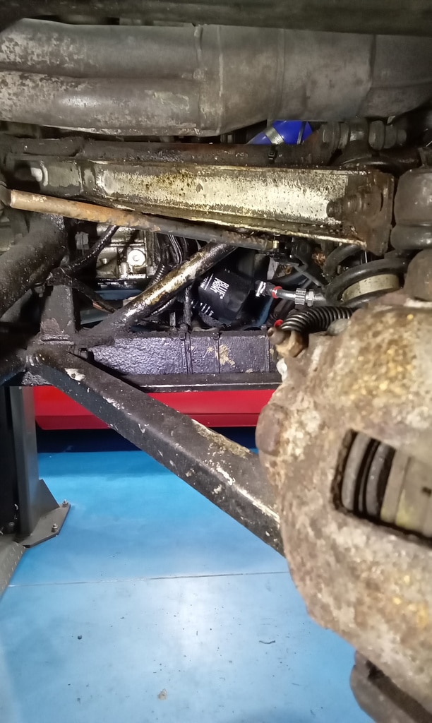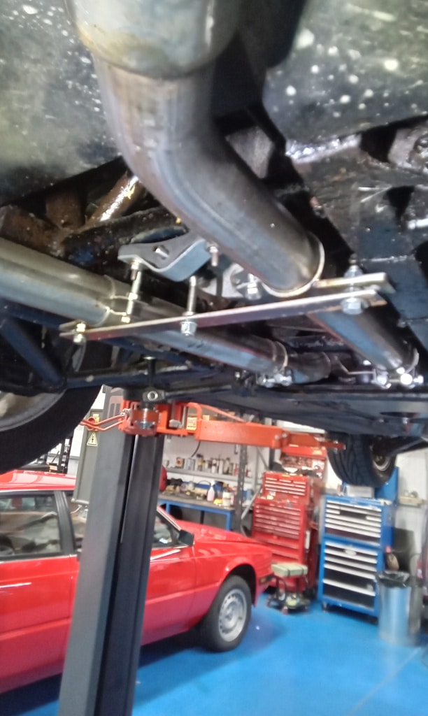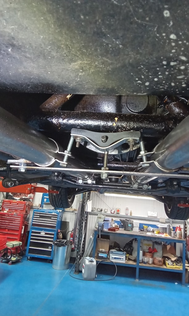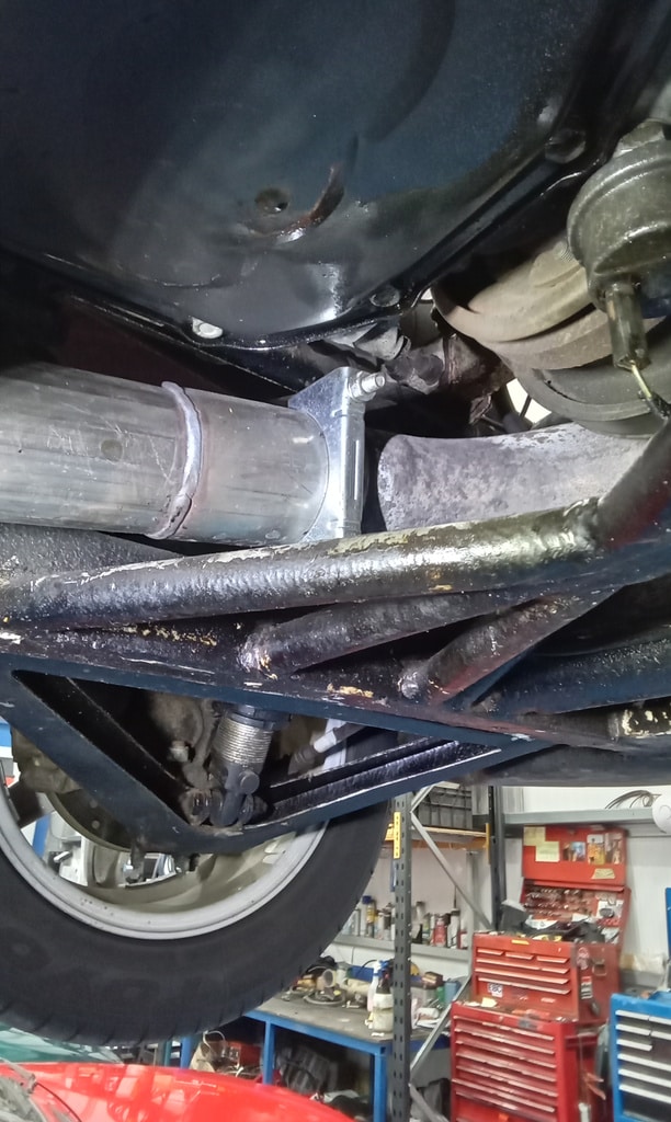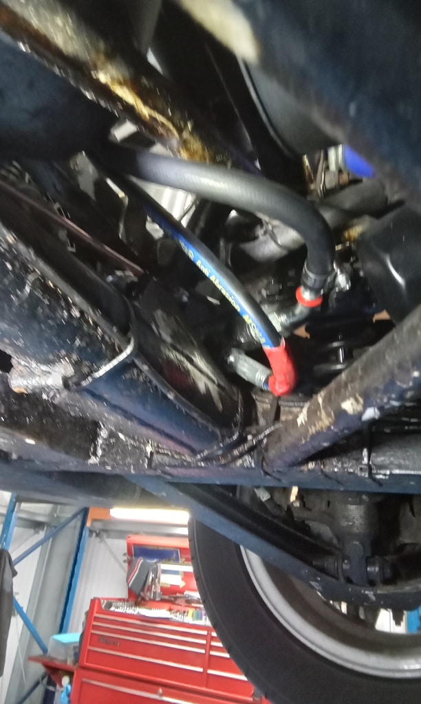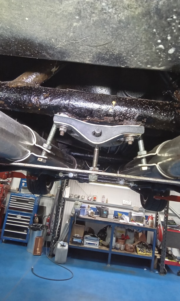 ”Carry out appraisal and start repairs as i go.. Tighten steering UJ’s. Make small plate to fit behind rear exhaust mount to space away from floor. Tighten all clamps and brackets at rear and fit mount. Put flat blade screwdriver in car to remove wheel centre caps as tool missing and put a tyre repair gel in boot.”