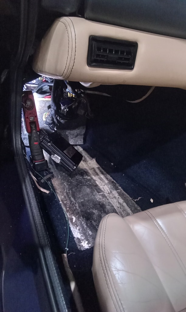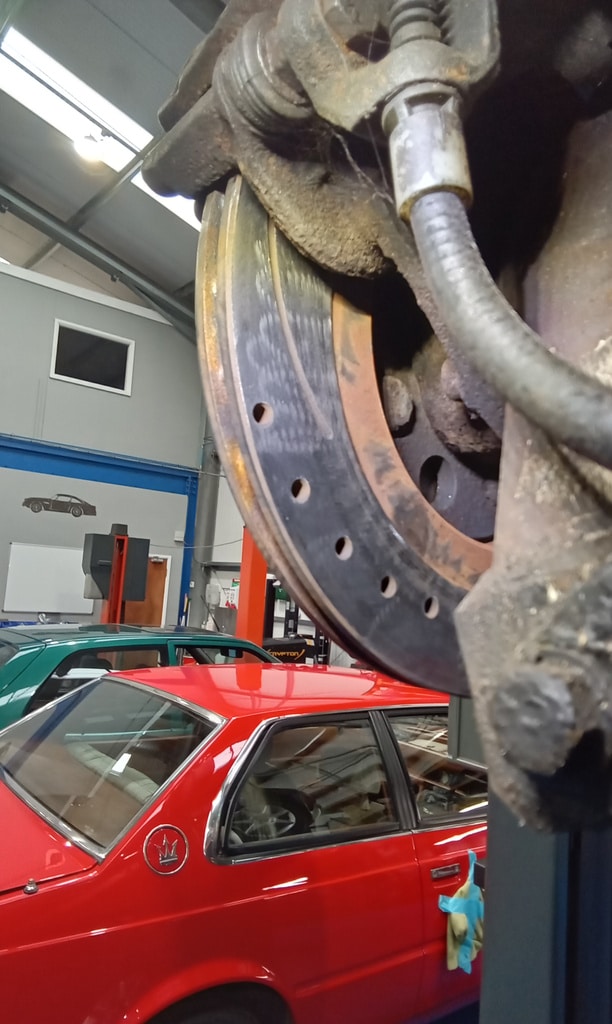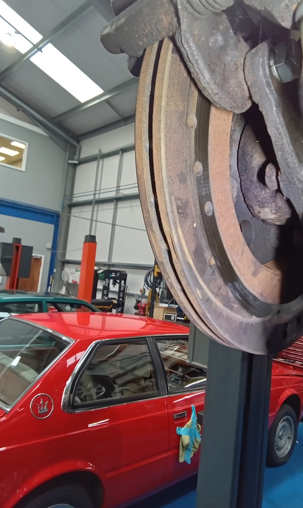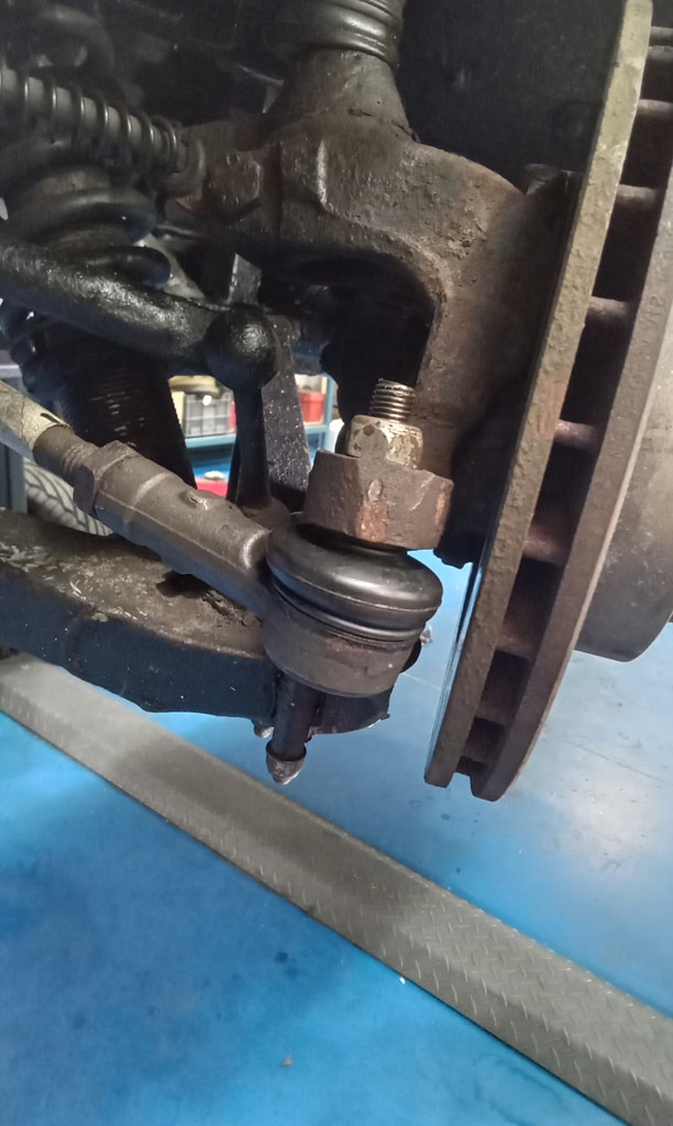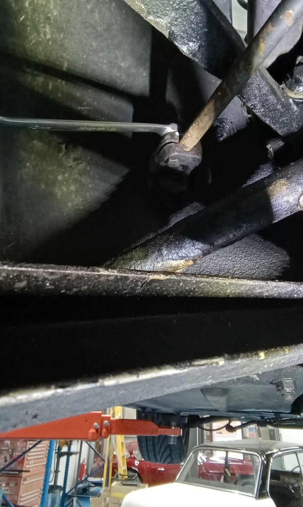 ”Tighten both rear anti-roll bar links. Check both axle and gearbox levels, ok. Check tyres and remove wheels and check brakes. De rust rear discs. Strip nearside front track rod end andfit new rubber. Refit and secure. Tighten track rod end lock nuts. Refit wheels, inflate tyres and torque wheel nuts. Refit centre caps. Lube window runners and operate windows. Try when engine running and getting a good power supply. Check interior light. Tighten connectionsand test. OK, so refit. Check dash lighting working. Found switch under dash turned off. All working now. Investigate mirrors not working. Remove drivers door speaker for access, but can’t find relay so door panel has to be removed.”