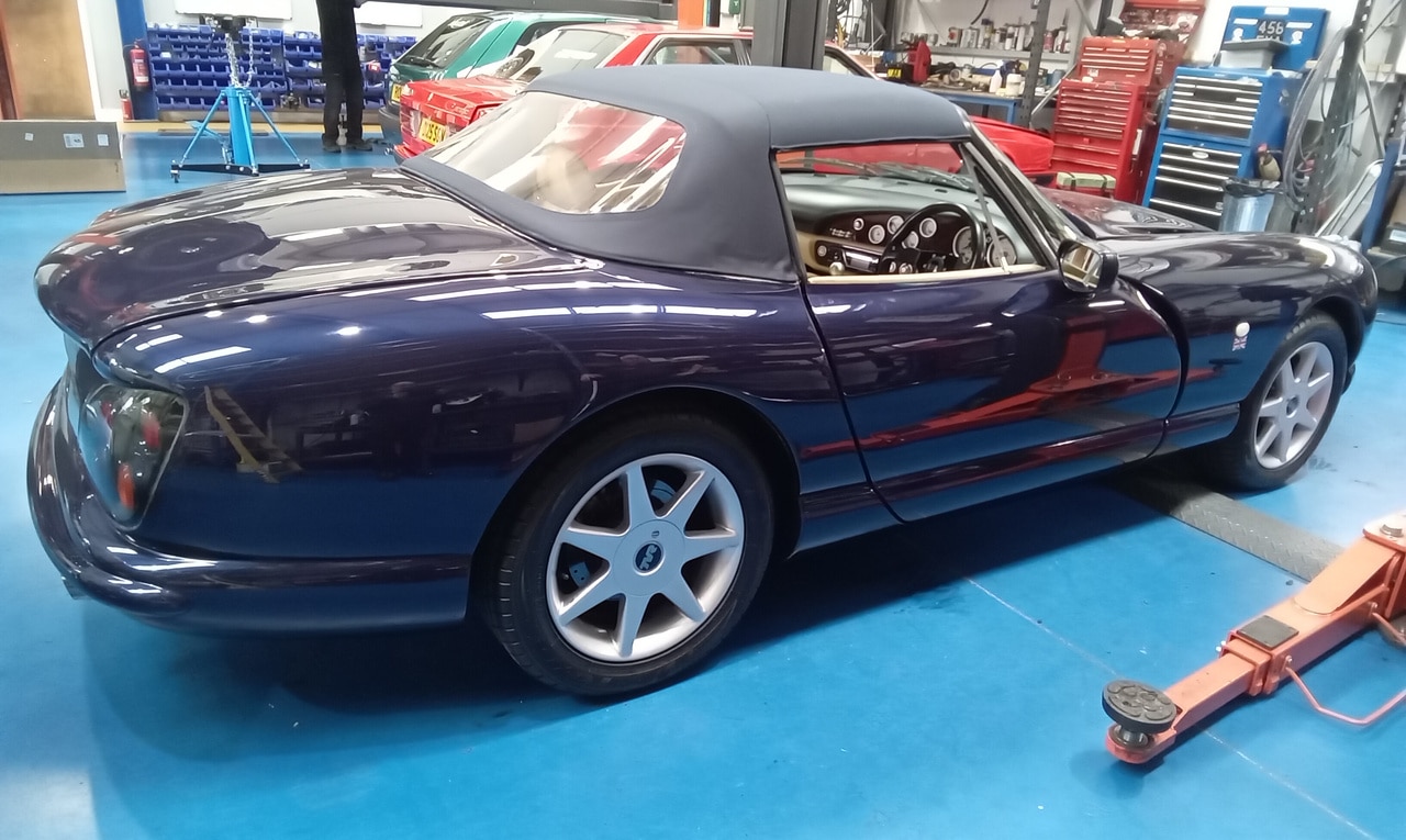 A recent new addition to the Bridge Classic Cars restoration HQ is this 1998 TVR Chimaera. Our restoration technician Jon has been working his way through the appraisal and repairs on the car.
