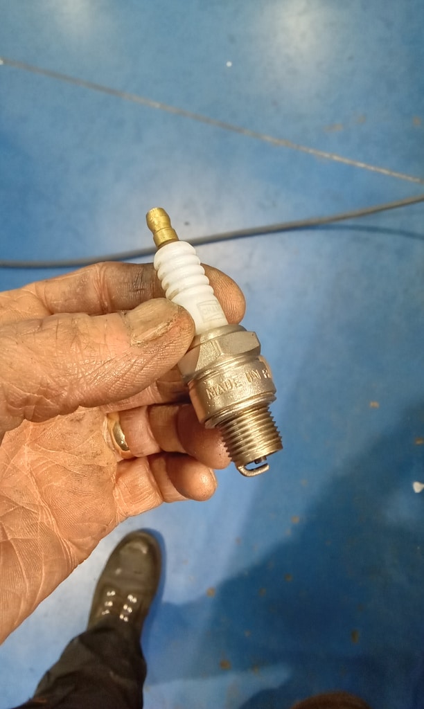 ‘Remove spark plugs and blow out cylinders. Clean and regap plugs and refit. Strip carb. Remove piston and suction chamber clean and inspect. Check cold start function and free movement of the jet.’