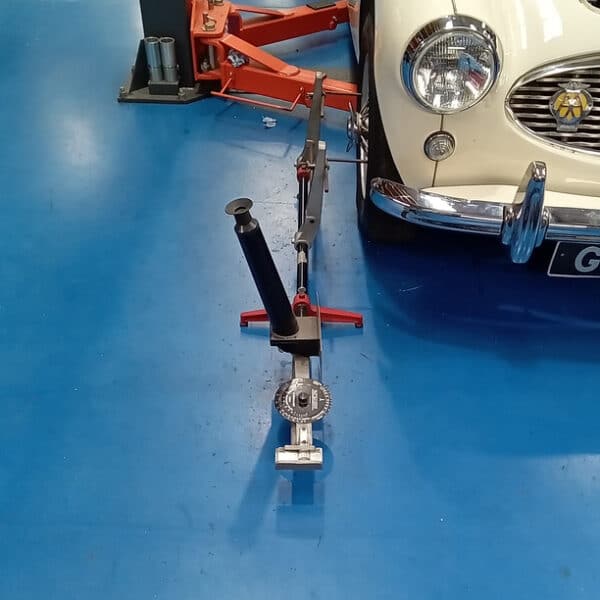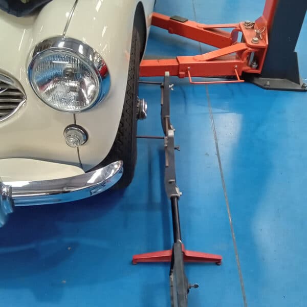 Jonn carried out work on our 1959 Austin Healey 3000, beginning with the installation of a new offside front wheel bearing. He fully greased and adjusted the bearing, then refitted the wheel and conducted an initial test. After removing the wheel to readjust the bearing, he refitted and tested it again, confirming it was operating correctly. He then removed the wheel once more to fit the split pin and dust cap, before finally refitting the wheel and securing it tightly. The kingpin and trunnion were greased, and a check for play showed no issues.