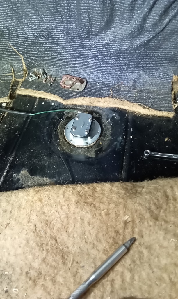 A new fuel tank sender was fitted and tested, but the float was initially contacting the bottom of the tank. Jonn bent the float arm to ensure it read empty properly, then confirmed correct operation and secured the sender in place. He refitted the boot carpet and associated trim. A new washer pump was installed, with the pipes connected and tested successfully. Jonn adjusted the jets and rechecked the system, confirming it was functioning correctly.
