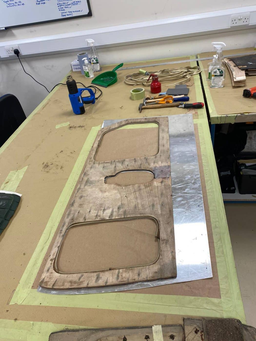 Brian has also re-covered the front door panel with 3mm foam and leather, which are both trimmed to shape and glued into place.