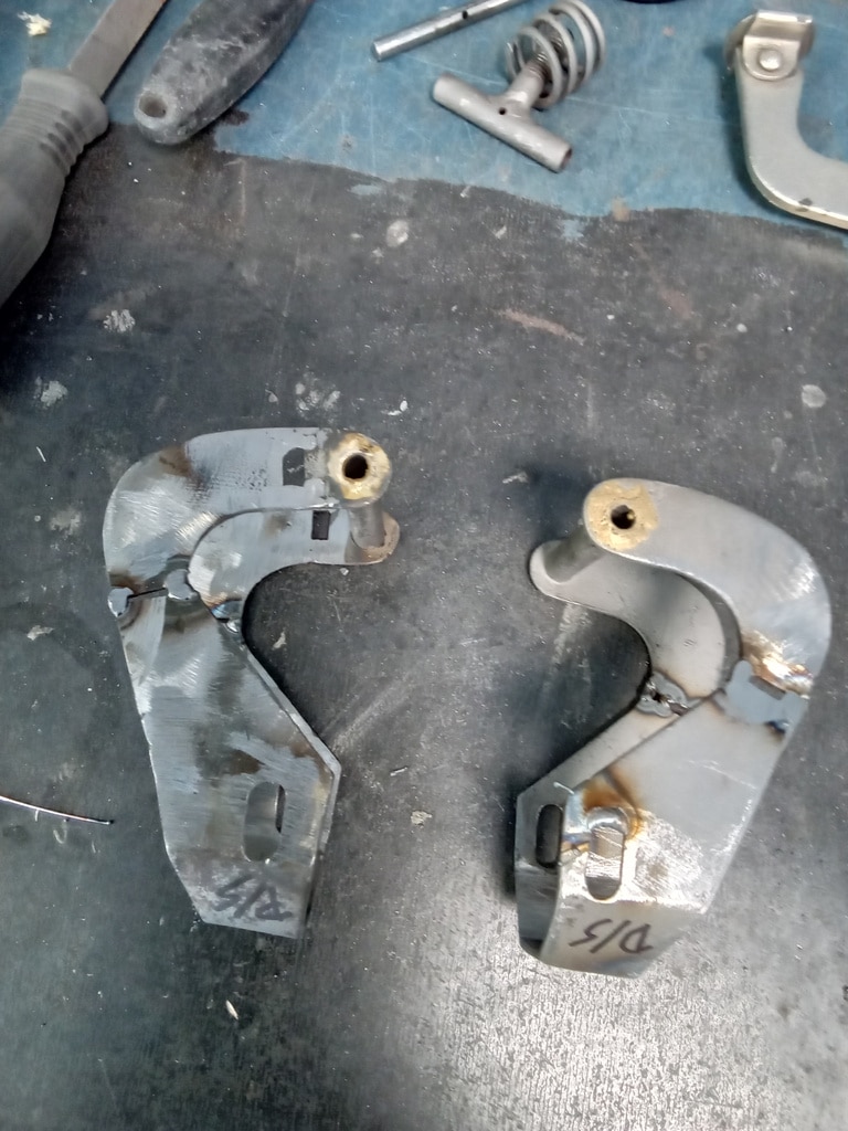 The 1953 Aston Martin DB2/4 Drophead Coupe restoration is moving forward with every day. Our paint and body technician Mauro has been heading up the restoration of this handbuilt sports car. This time, as part of the panel gapping and adjustment, Mauro has had to adjust and modify the bonnet catches to make sure that the gap remains even and uniform on the 1 piece fron clamshell.