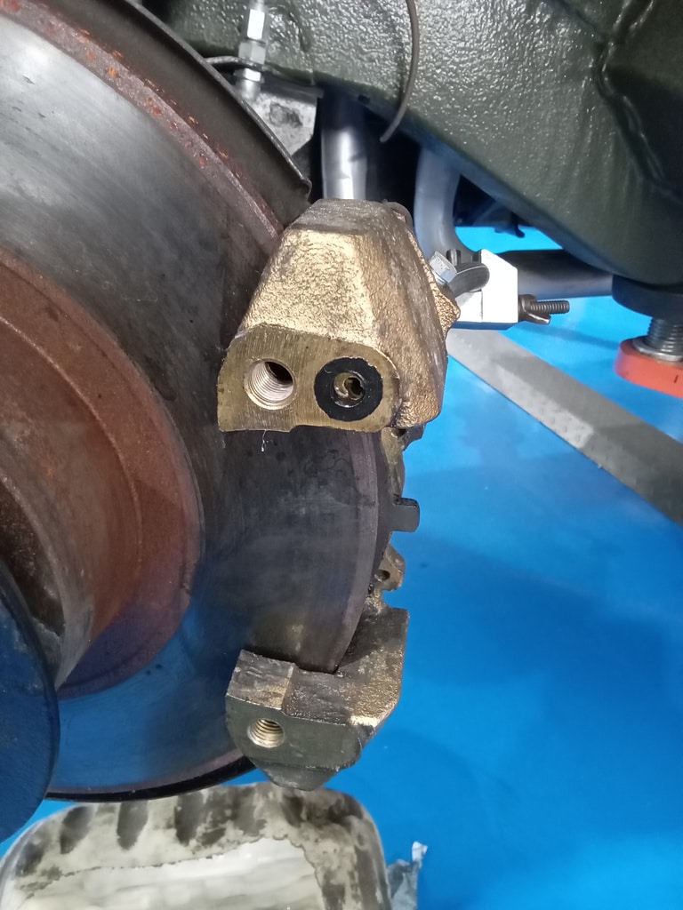 Another storage car in the Bridge Classic Cars workshop is this 1975 MGB Roadster which was completed a few years ago for its owner. The team went to check over the car and found that the brake fluid level was extremely low. When they went to bleed the system, they discovered an issue inside one of the calipers. A seal which sits between the 2 halves of the caliper was leaking and in need of replacing.