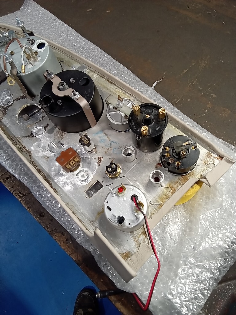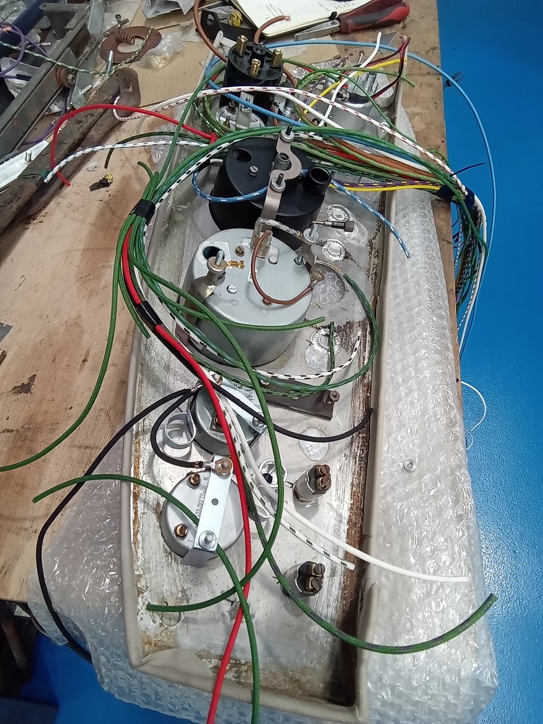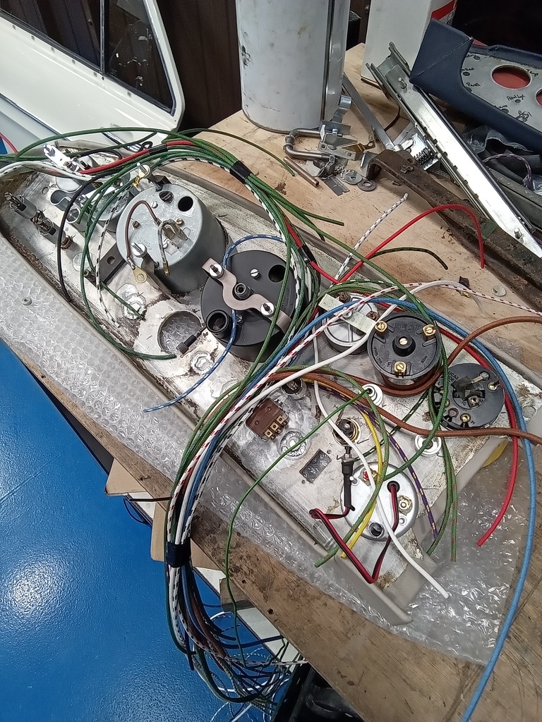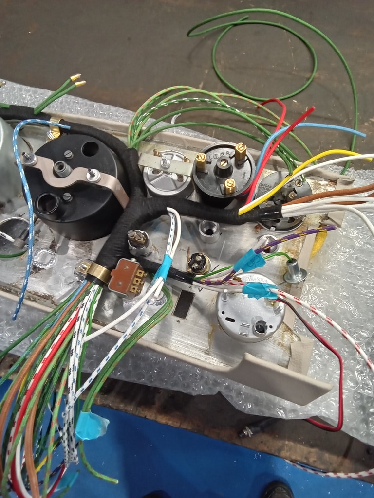 Alongside the brightwork beginning to get fitted to the Jensen, Rob has been building up the wiring harness on the back of the dashboard insert. Each individual wire in the loom was tested and finished on the bench before it will be fitted into the car and begin testing the systems of the car.