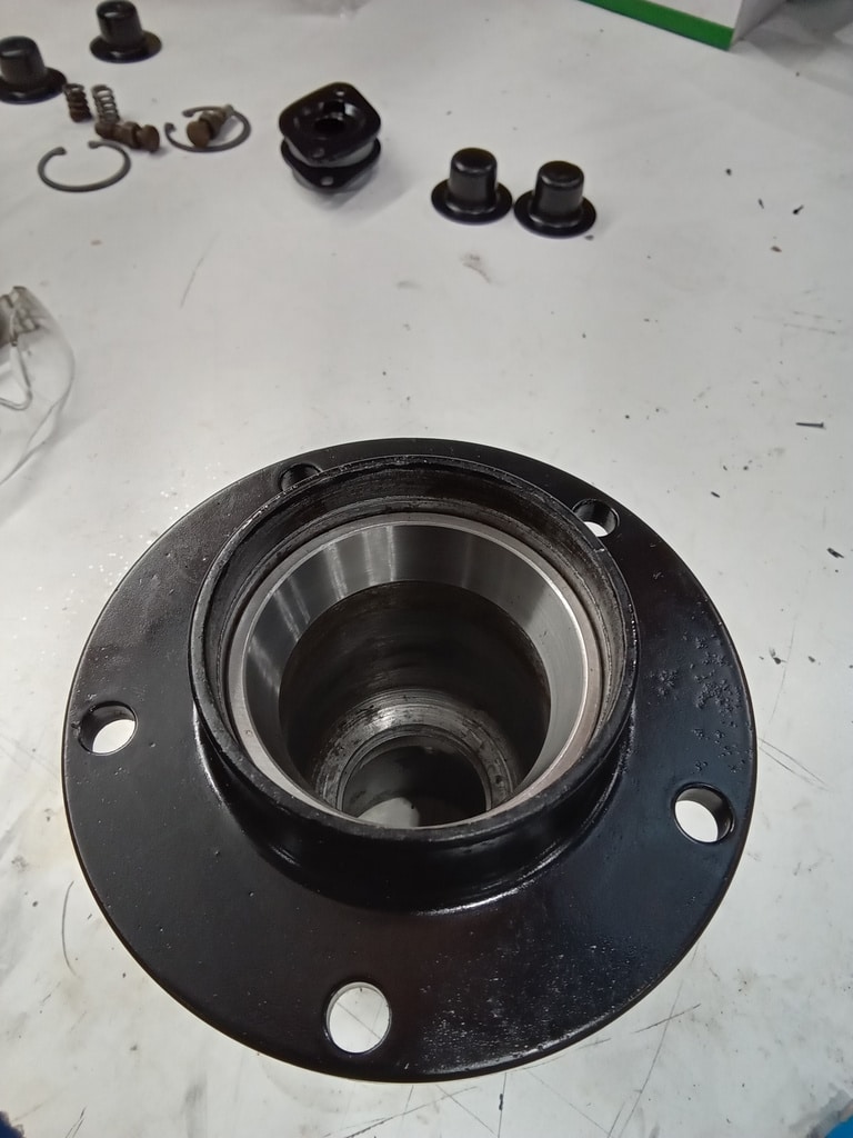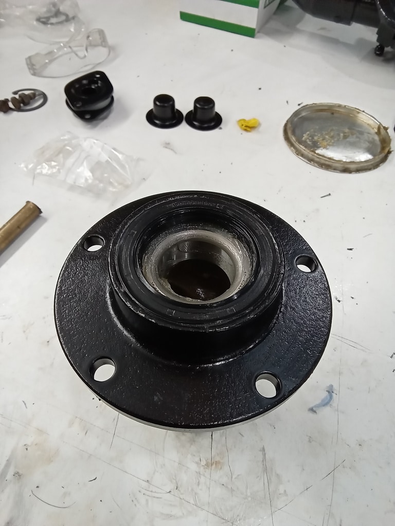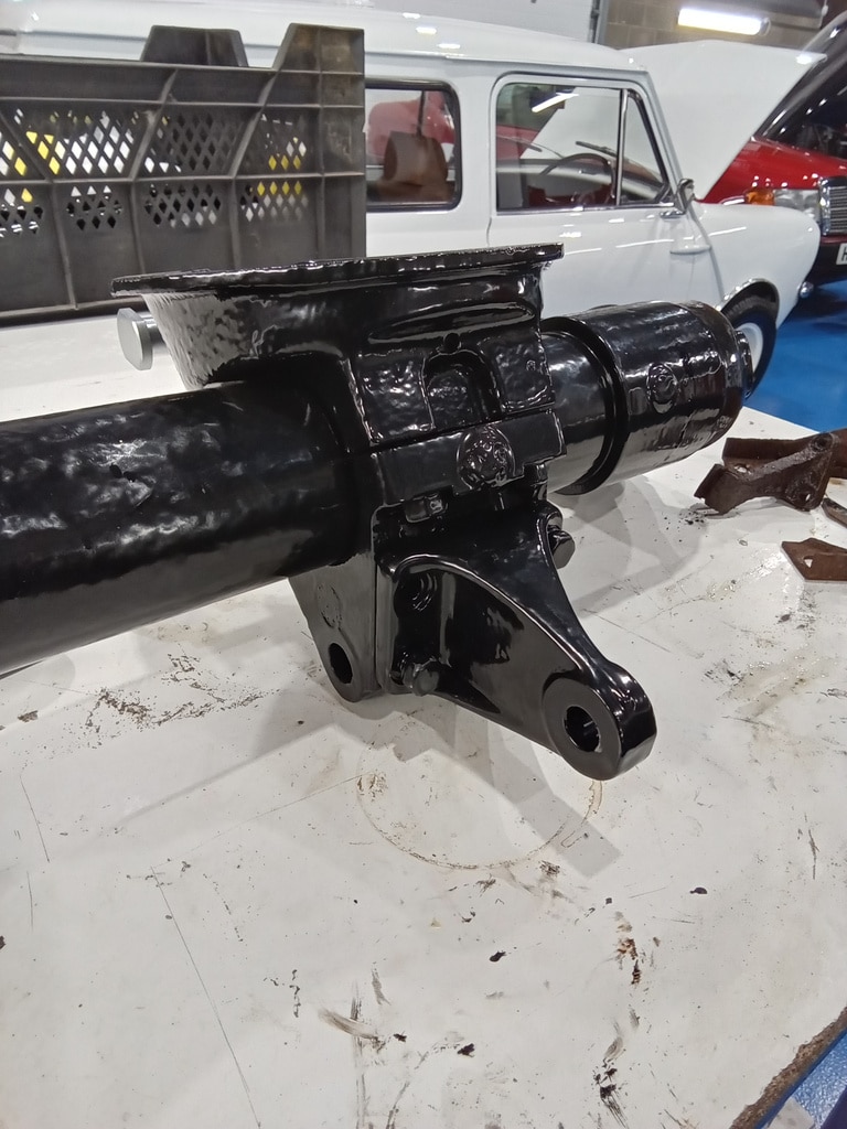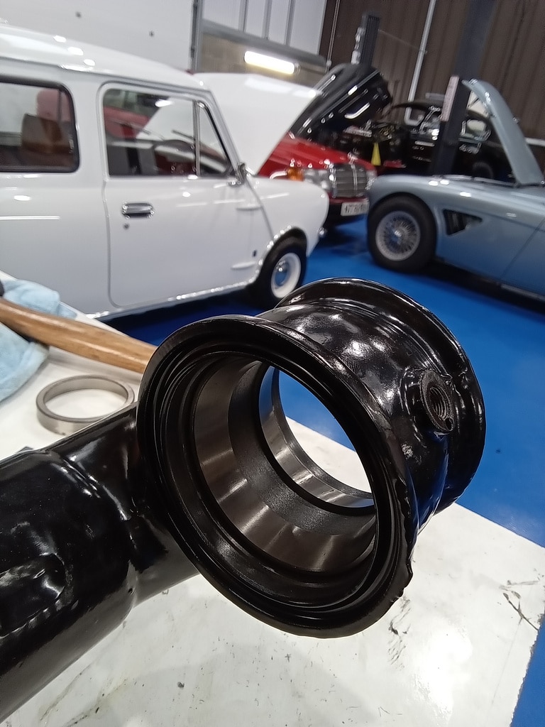 With the bodyshell being worked on in the paint and bodyshop, our restoration technicians in the mechanical workshop are busy working on other parts of the 1970 Aston Martin DBS Vantage, Our technician Ben has been building up the suspension on the classic GT car by pressing in the new bushes, races seals and bronze bushes before then packing and greasing the various bearings and the hubs.