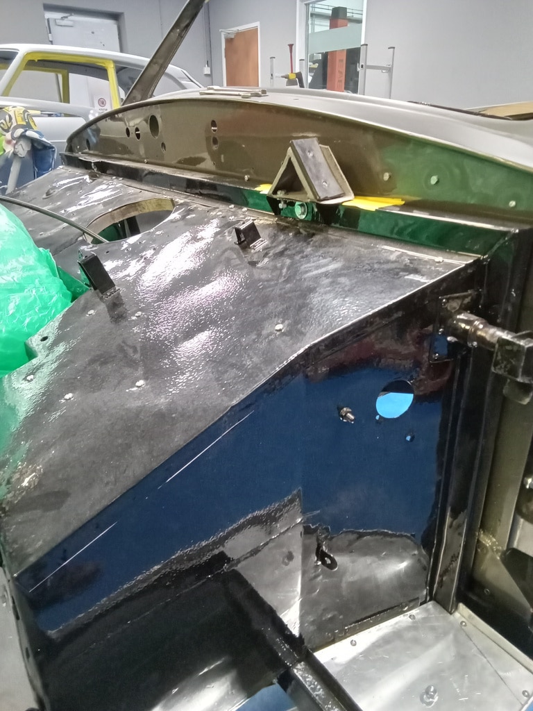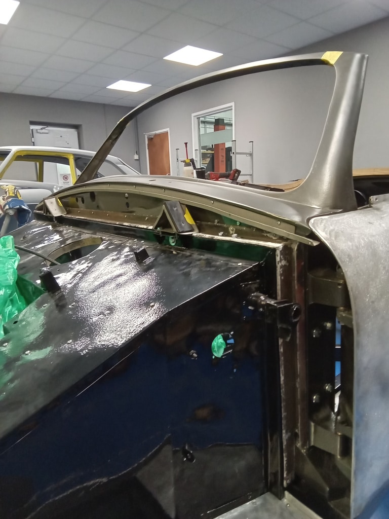 The team in the Bridge Classic Cars paint and body department have taken on their side of the 1955 Aston Martin DB2 Drophead Coupe project recently. Our paint and body technician Mauro has been working his magic on the bulkhead of the rare, vintage Aston Martin.