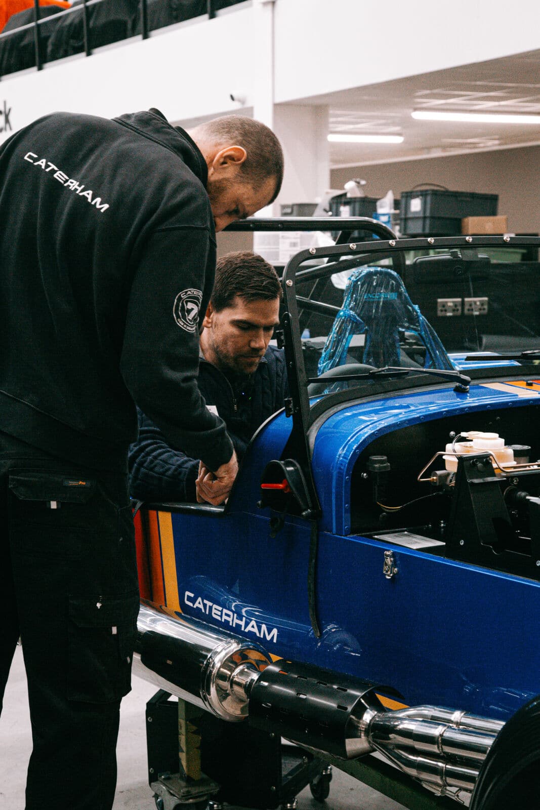 Rob and Ali from Caterham were there to take him around his car and discusss the next phase the car will be heading into shortly before it is collected from the factory and taken home ‘the scenic route’.