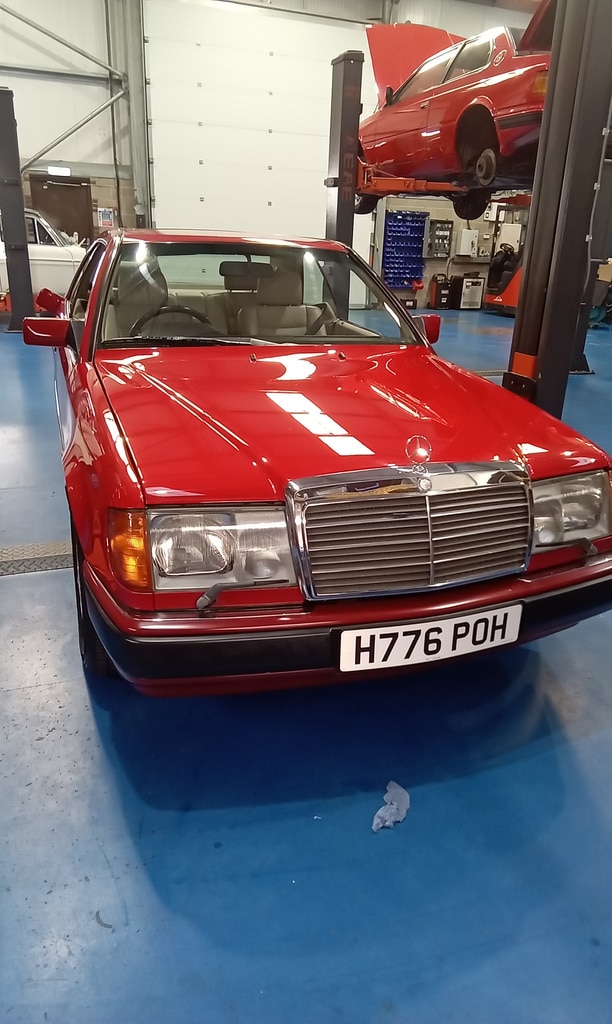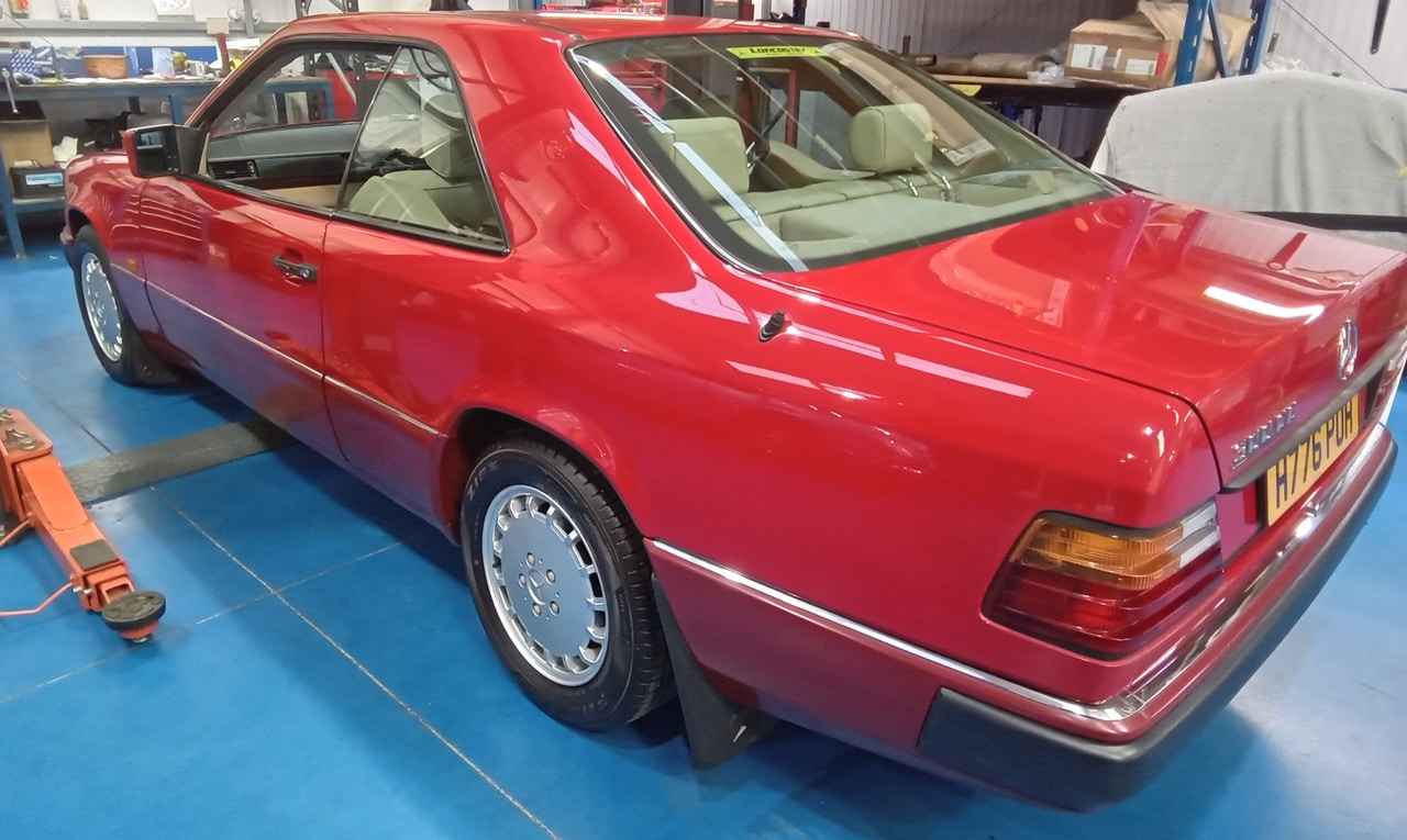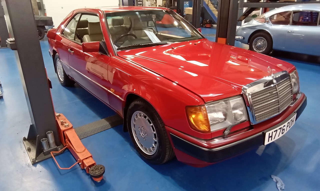 Our restoration technician Jon always has something on his ramp here at the Bridge Classic Cars HQ, this time its our 1991 Mercedes 300CE. This 1990’s Coupe was recently won, but the winner decided to take the cash alternative instead of the car, so the Bridge Classic Cars team carried out the PDI on the car as well as a few small jobs whilst we organise the cars next stage of its life.