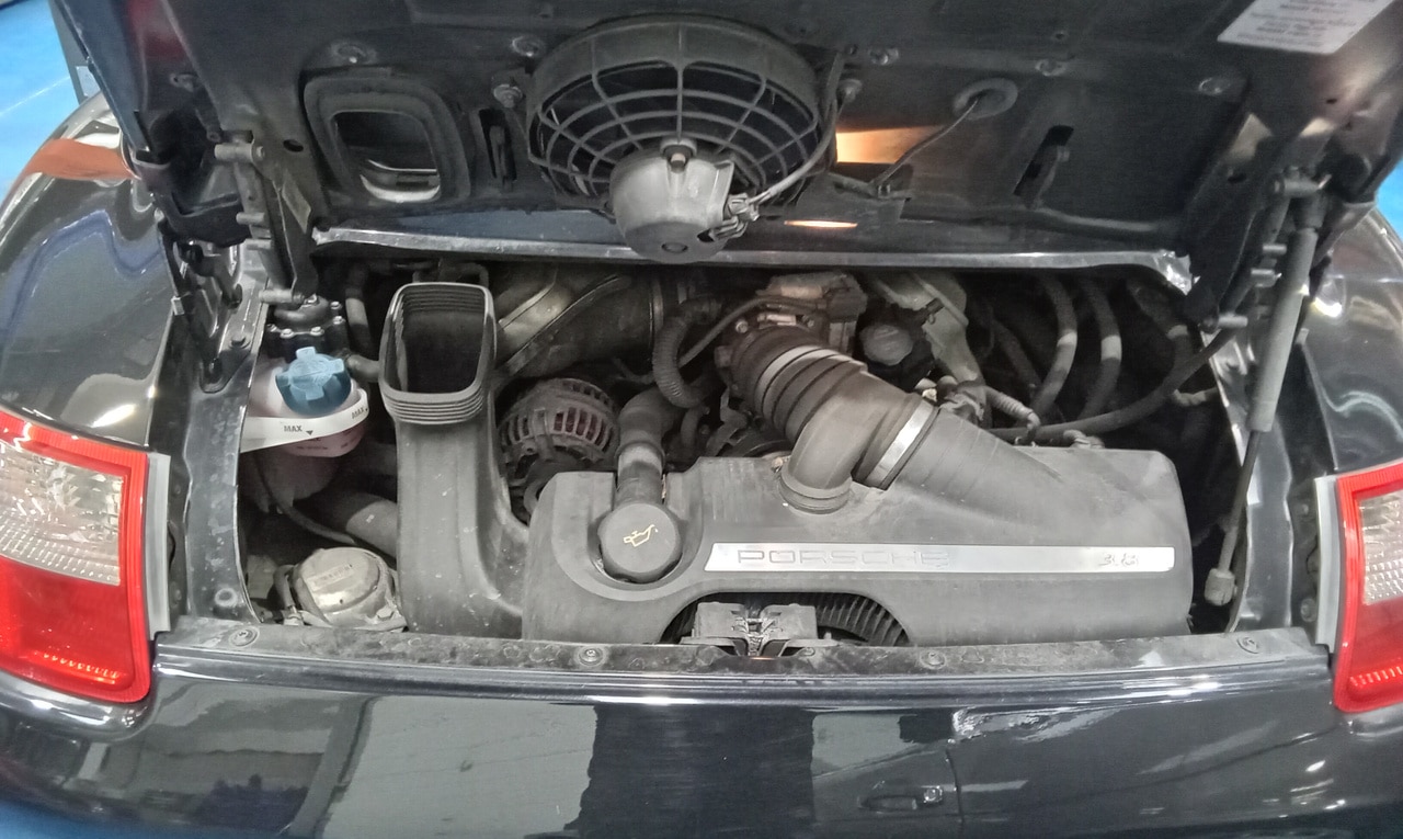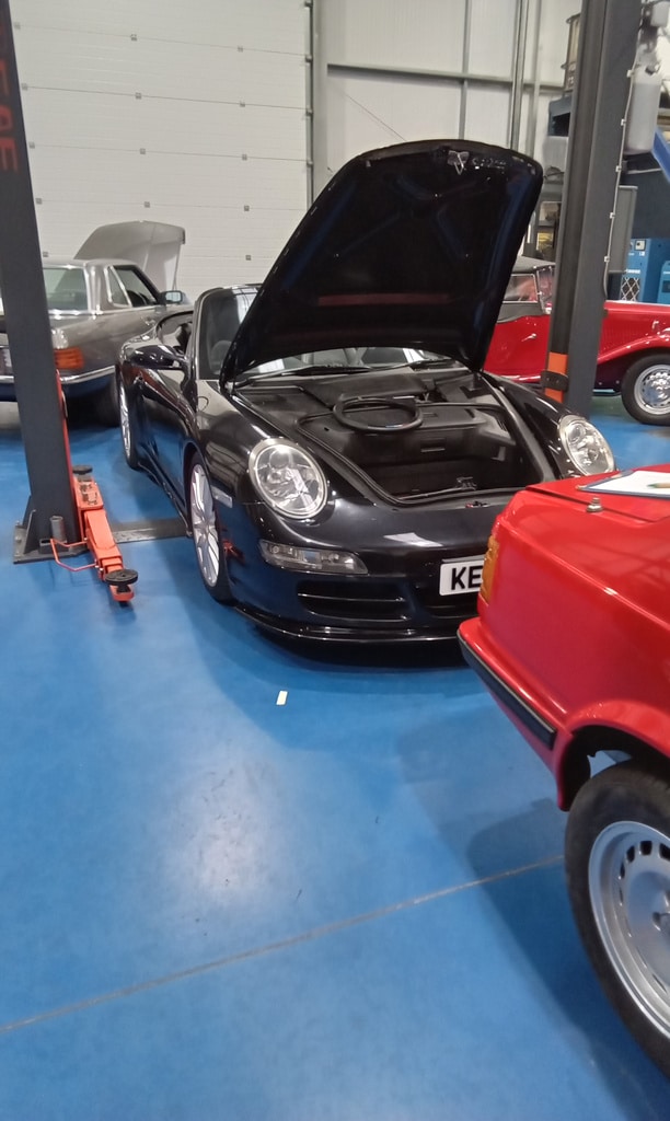 The 2005 Porche 911 which arrived recently at the Bridge Classic Cars HQ, has been on the ramp for our classic car technician Jon to check over.