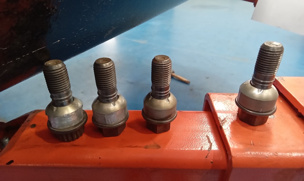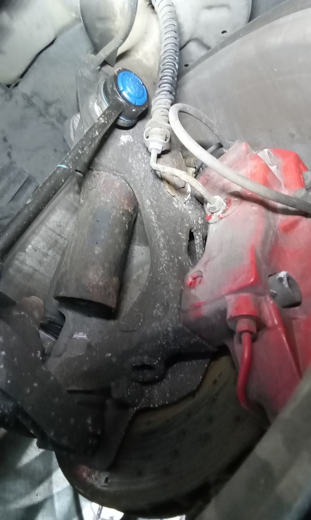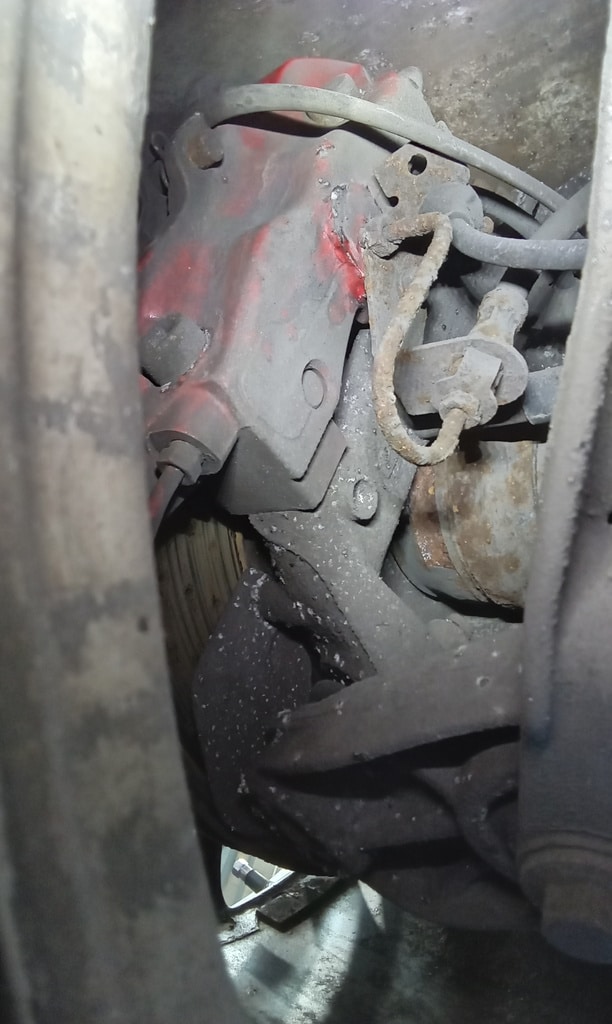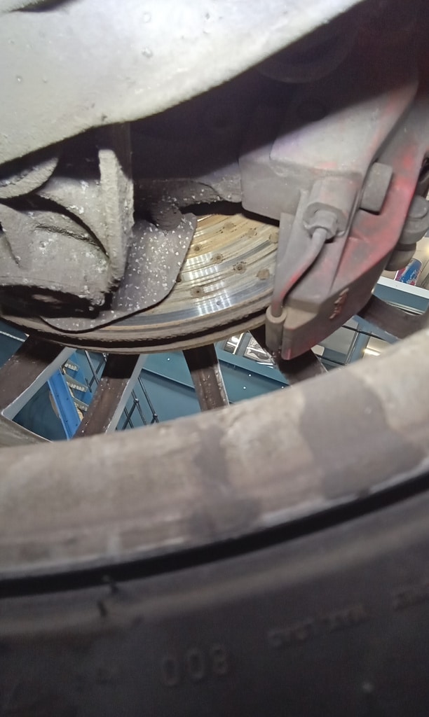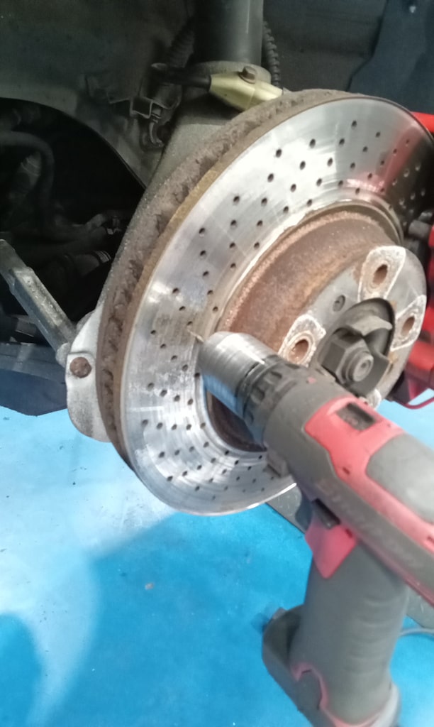 ”Carry out appraisal. Remove side skirts so able to raise on ramp and continue inspection. Check gearbox/axle oil a d top up. Remove all wheels. Wheels stuck on hub centres so knock off. Inspect tyres and brakes. Start redrilling discs to unblock holes.”