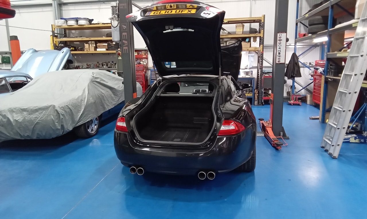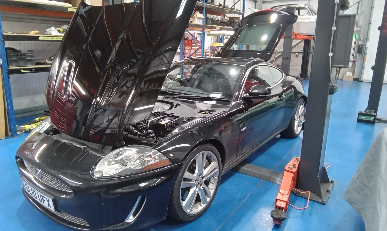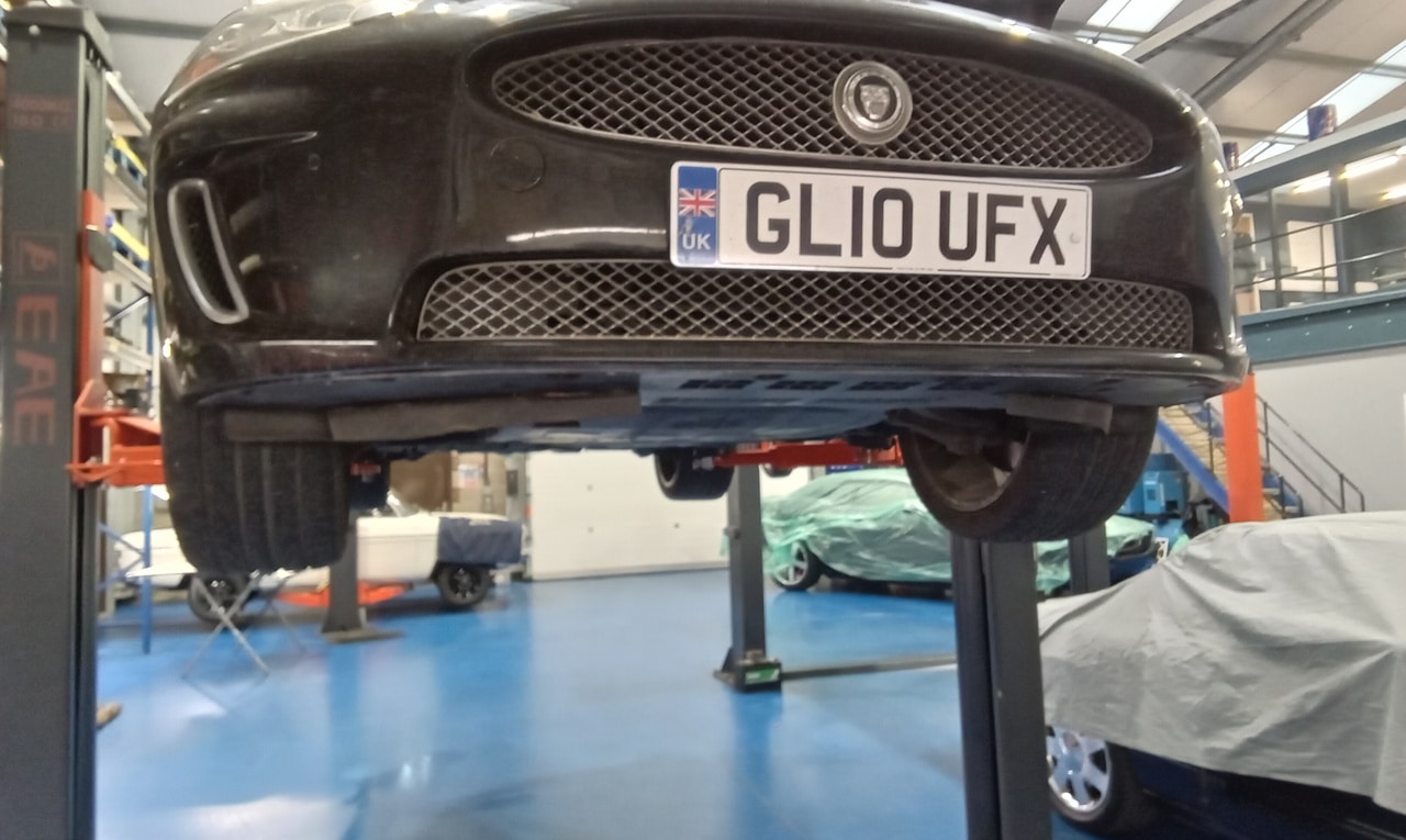 The Bridge Classic Cars workshop is always a hive of activity every day – but our technician Jon always has something new on his ramp every time you turn around. This time, he has been checking over and carrying out a few repairs on the 2010 Jaguar XKR.