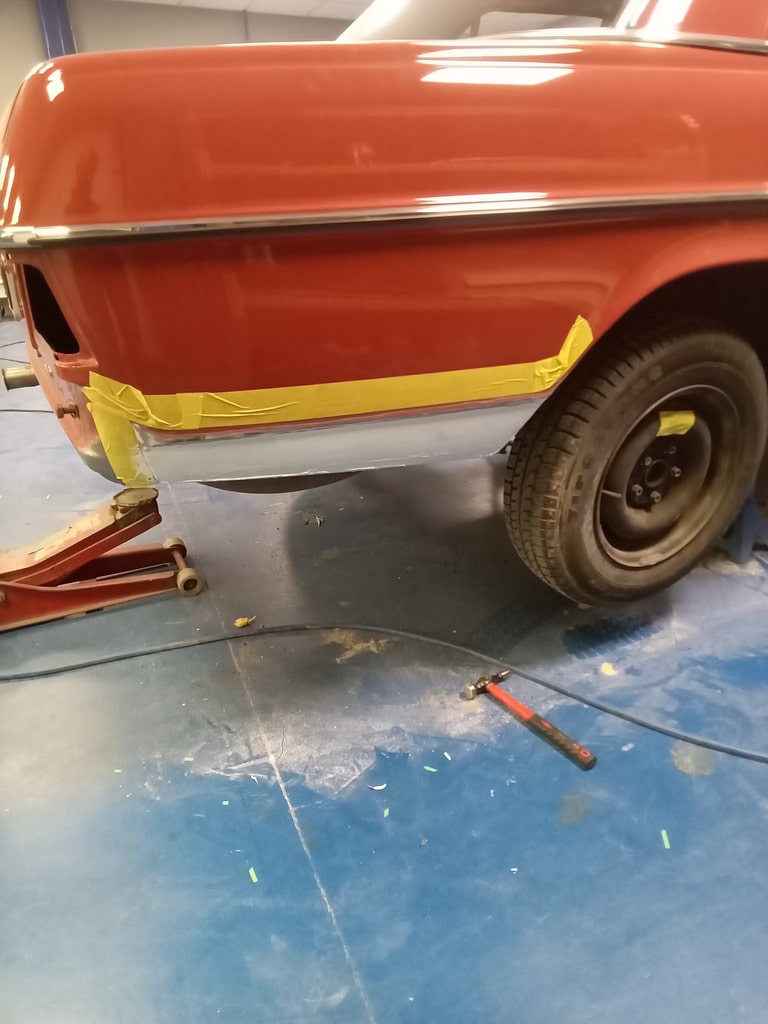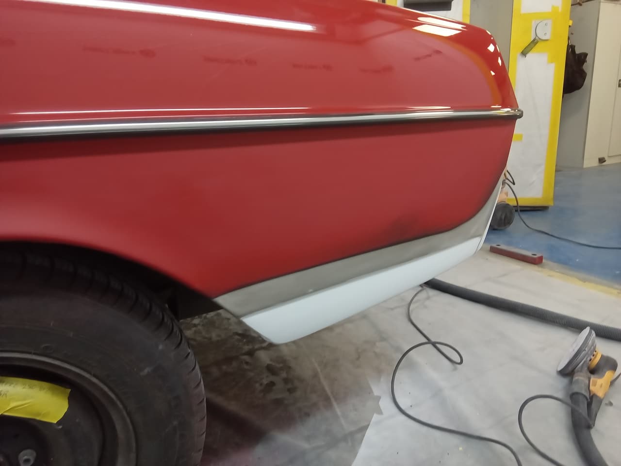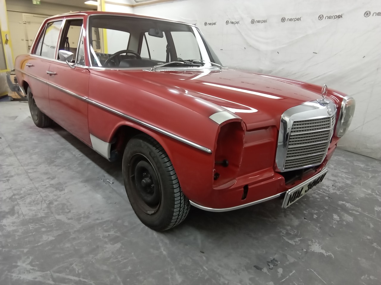 The paint and body team have really knocked it out the part with this one – our 1973 Mercedes W114 250. After carrying out a series of rust repairs on the lower body panels of the classic Mercedes, Mauro has been getting the car back together with a series of small area repaints as well as some larger areas.