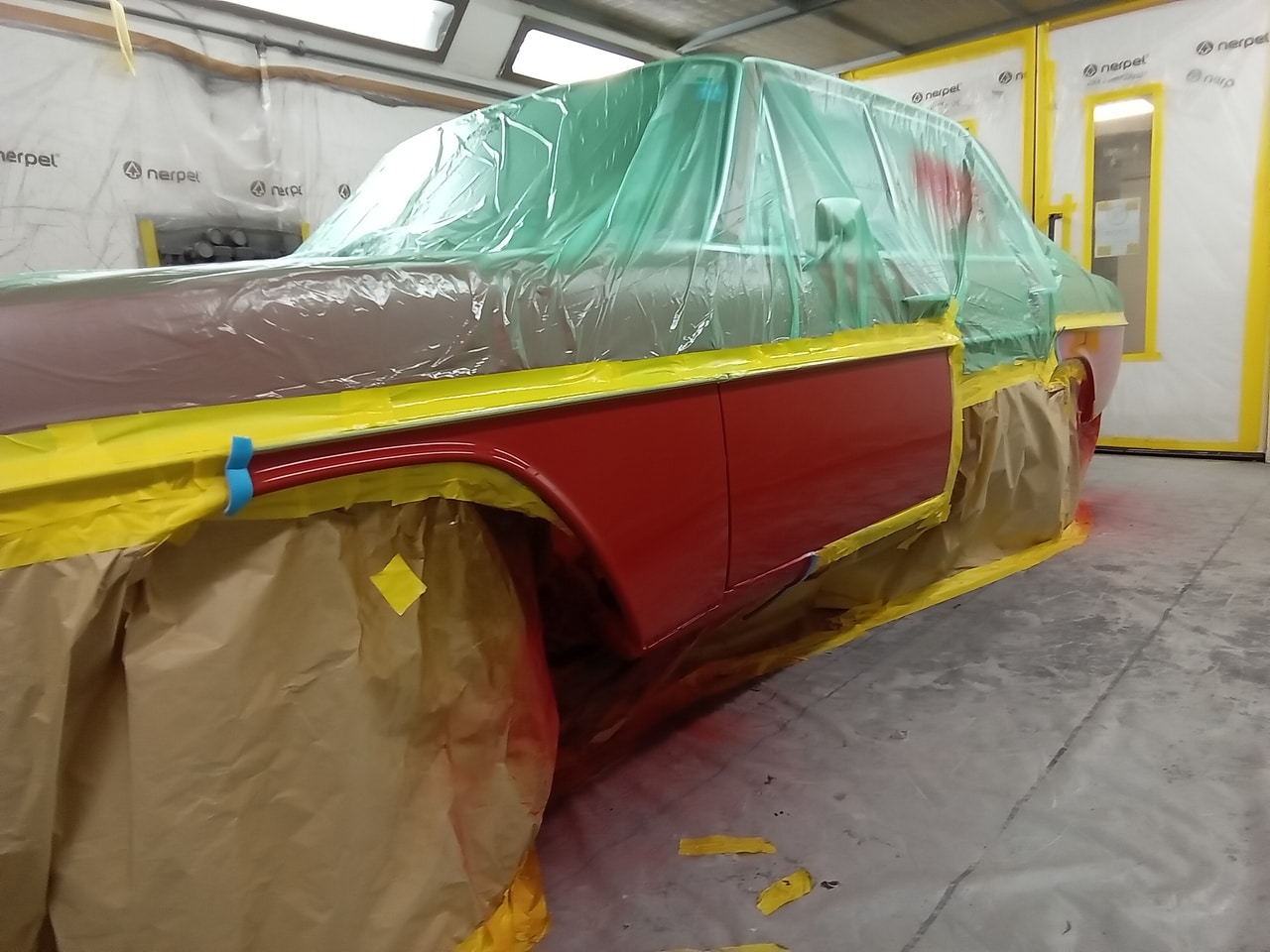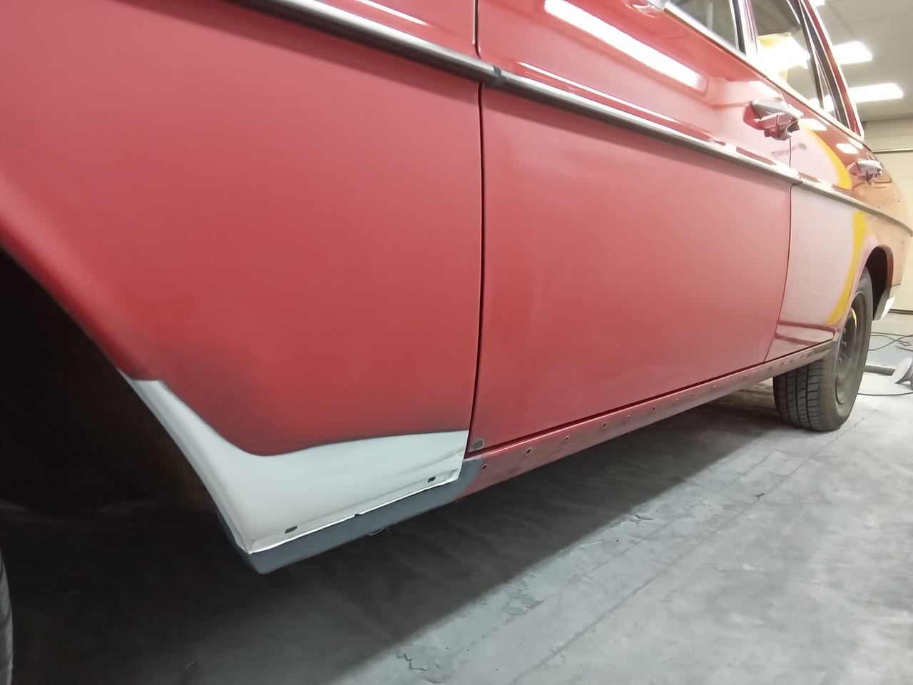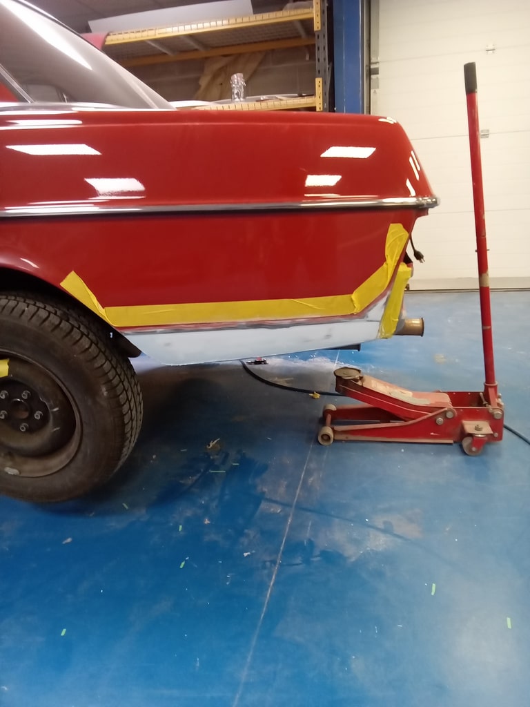 The paint and body team have really knocked it out the part with this one – our 1973 Mercedes W114 250. After carrying out a series of rust repairs on the lower body panels of the classic Mercedes, Mauro has been getting the car back together with a series of small area repaints as well as some larger areas.