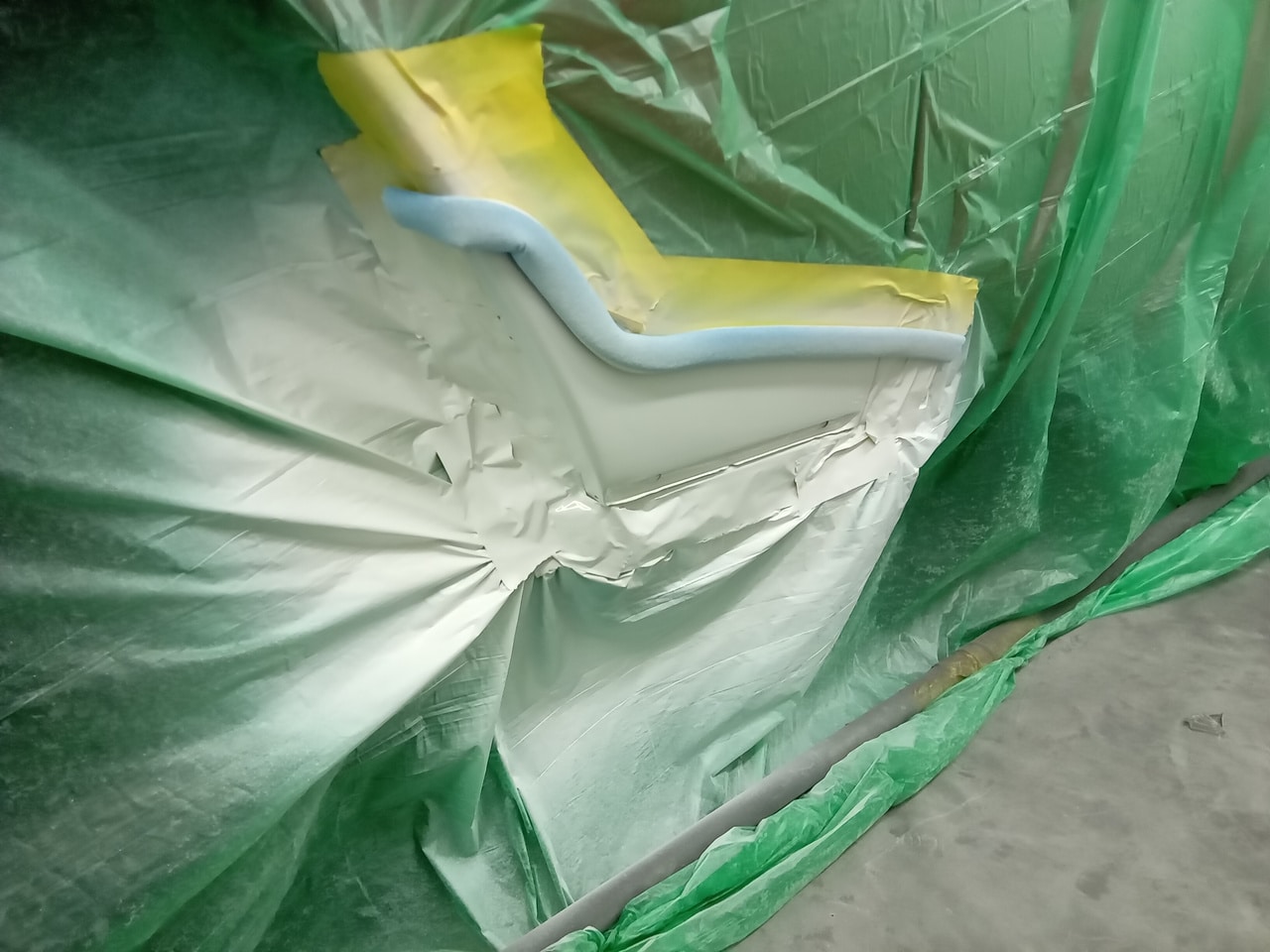 After carefully levelling the panels, priming, checking, rechecking and then checking one more time, Mauro could get the classic Mercedes into our in-house spray booth to lay down the perfectly colour matched paint on the panels which required it.