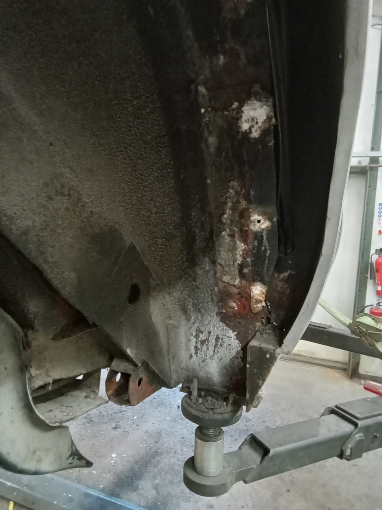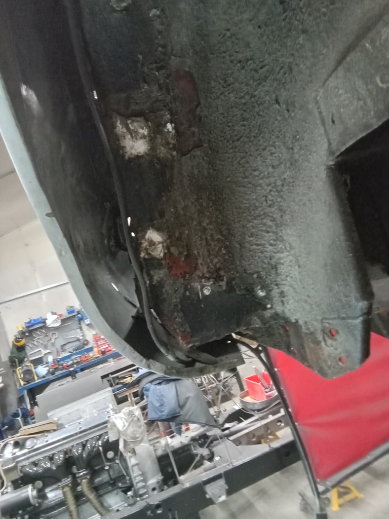 Greg, one of our restoration technians here at Bridge Classic Cars, has cut out the areas of rust on our 1970 Aston Martin DBS 6 Vantage as part of the inspection to see how far the rust issue goes. After all of the effected areas had been cut out and neutralised he could completed the work on the affected spot.