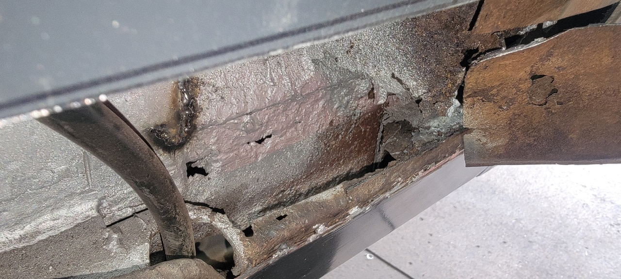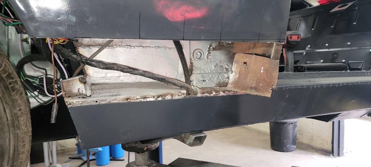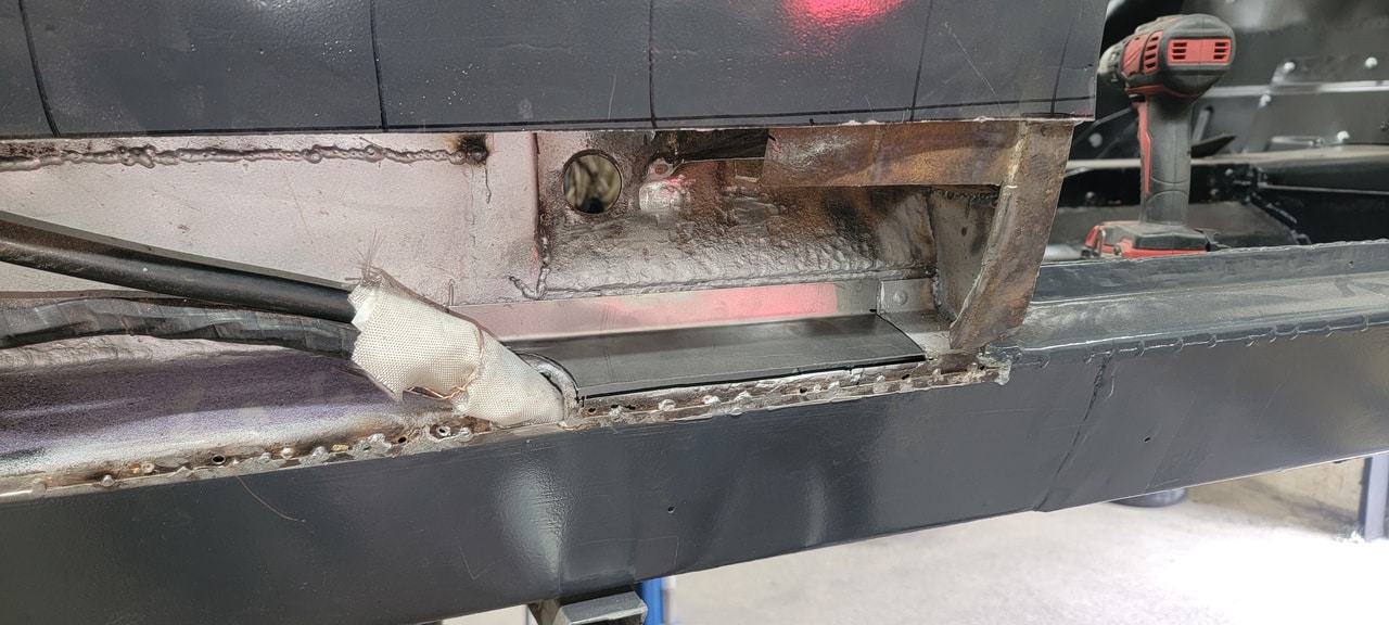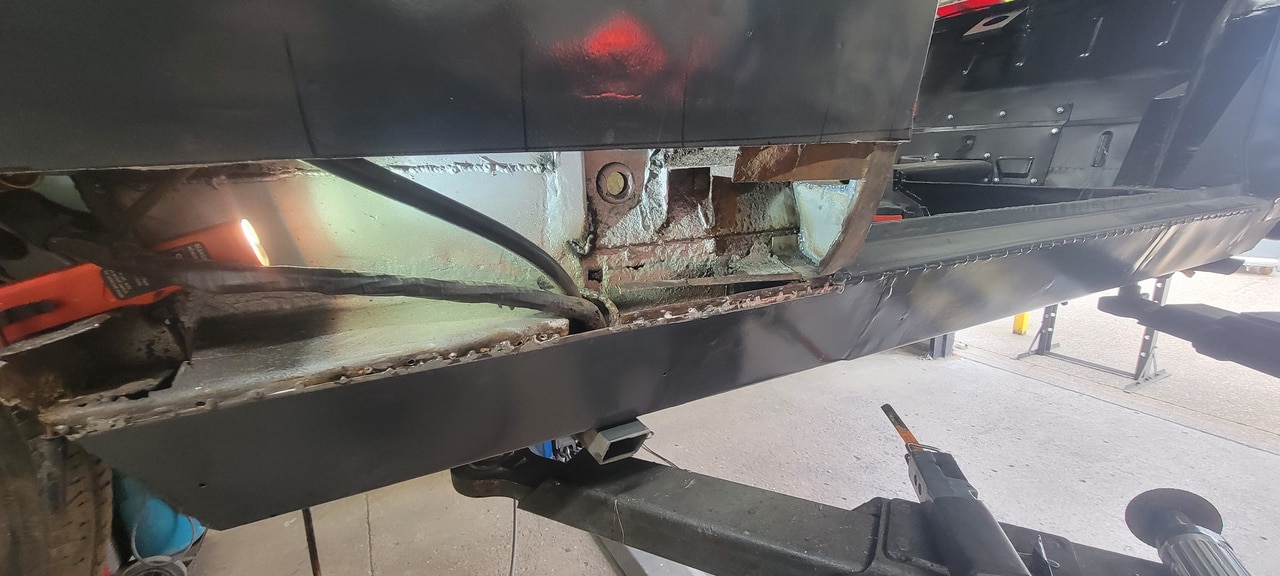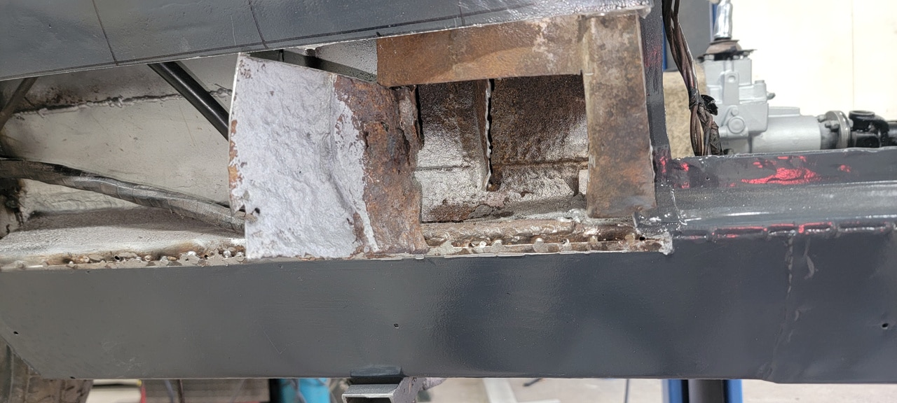 Our fabrication shop have been going in deeper to the bodyshell of the 1970 Aston Martin DBS Vantage. Our fabricator Greg has peeled back some of the temporary repairs on the car to dive deeper into removing areas of corrosion and replacing areas to get the whole car ‘back into the metal’. The team have made the car stable enough to be moved around, now are getting areas sorted out as the car moves into the next chapter of its restoration.