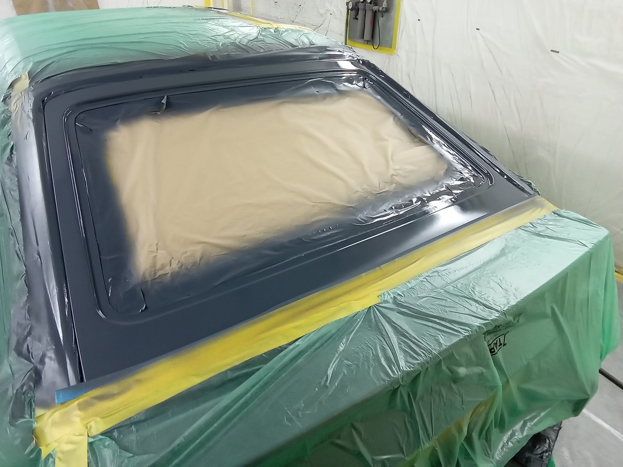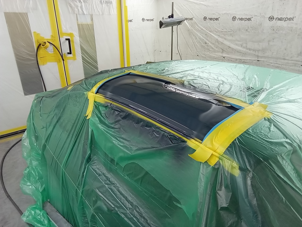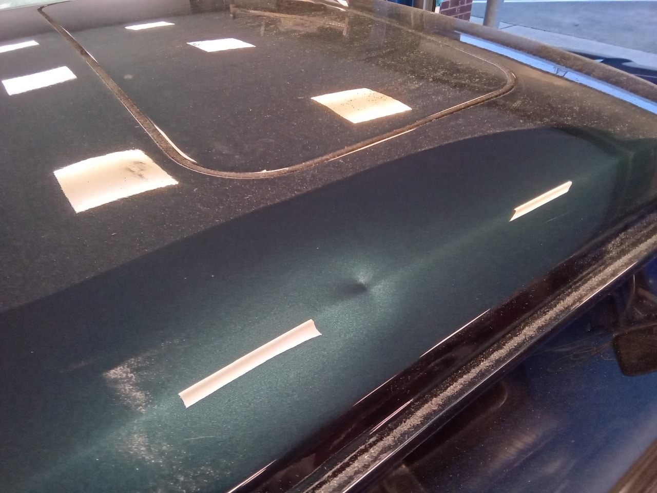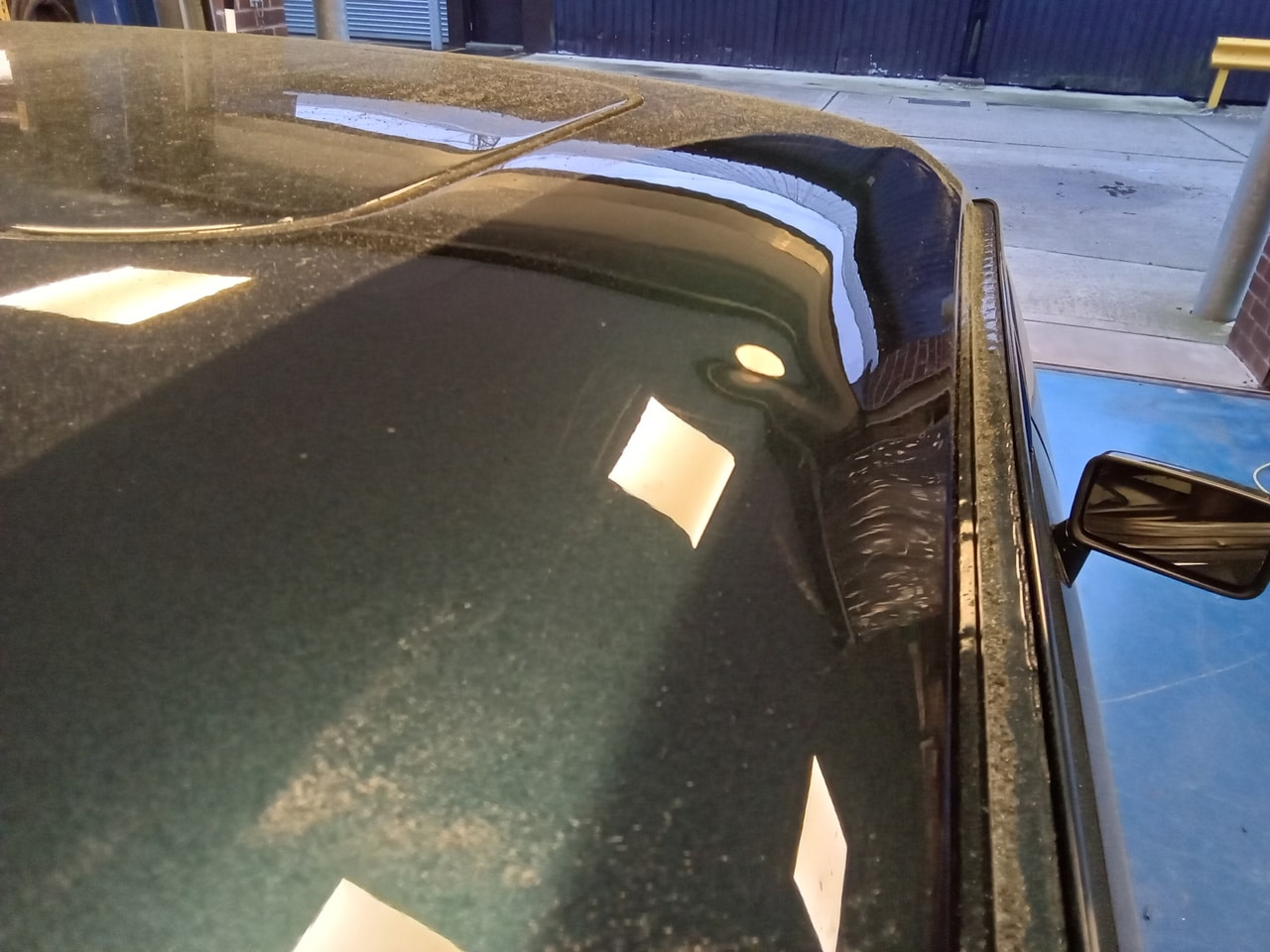 The Bridge Classic Cars team have been working on the 1987 Ford Capri fixing a couple of areas to get the classic blue oval coupe back to factory fresh. Chris, our paint and body manager, has work on full the dent out of the roof panel before levelling it as well as treating some areas of corrosion on the rear window before then priming all the effected areas ready to be colour matched.