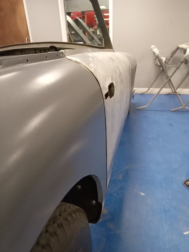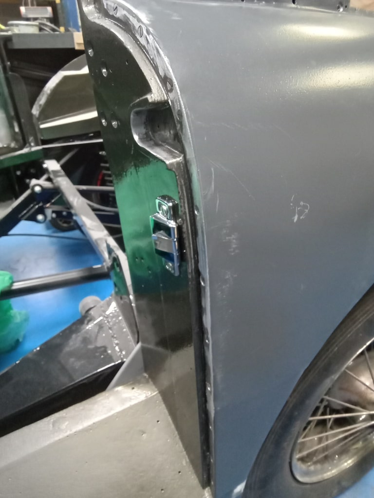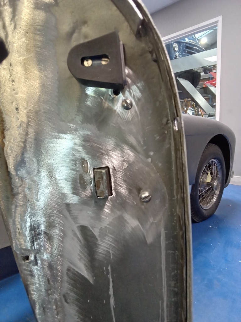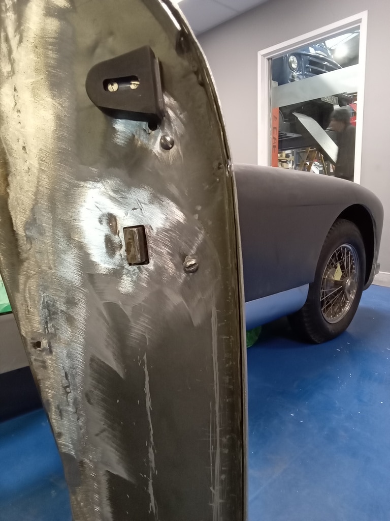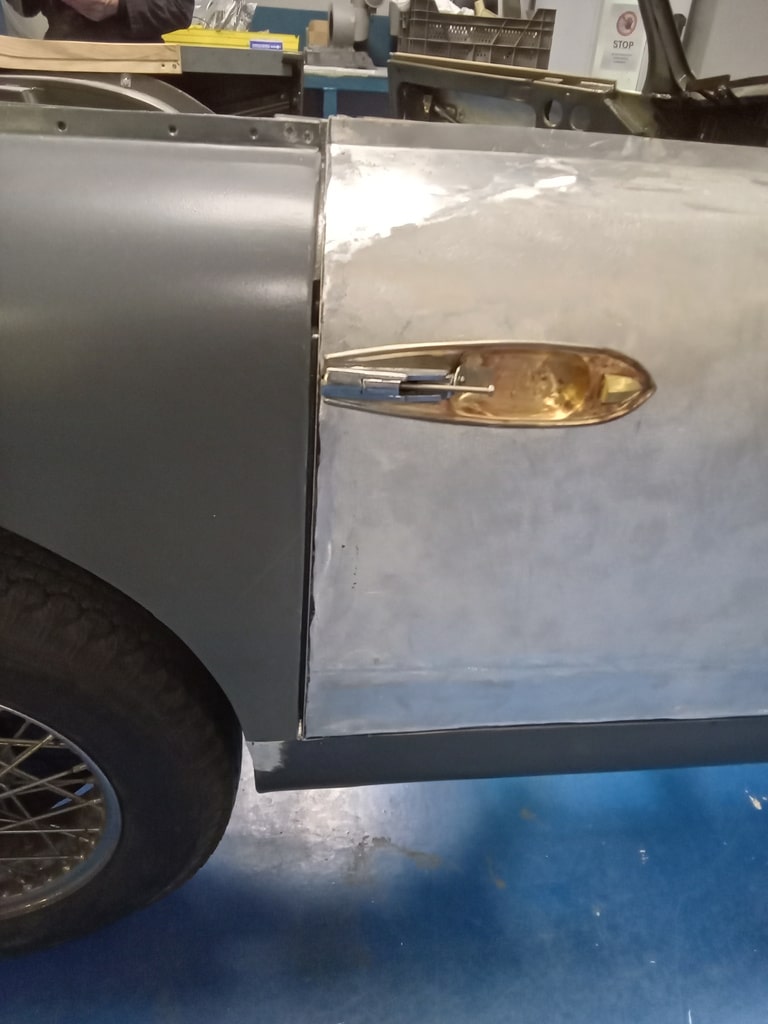 Mauro, one of our amazing paint and body technicians, has been methodically and painstakingly carrying out the adjustments on the doors of the 1955 Aston Martin DB2/4 Drophead Coupe.