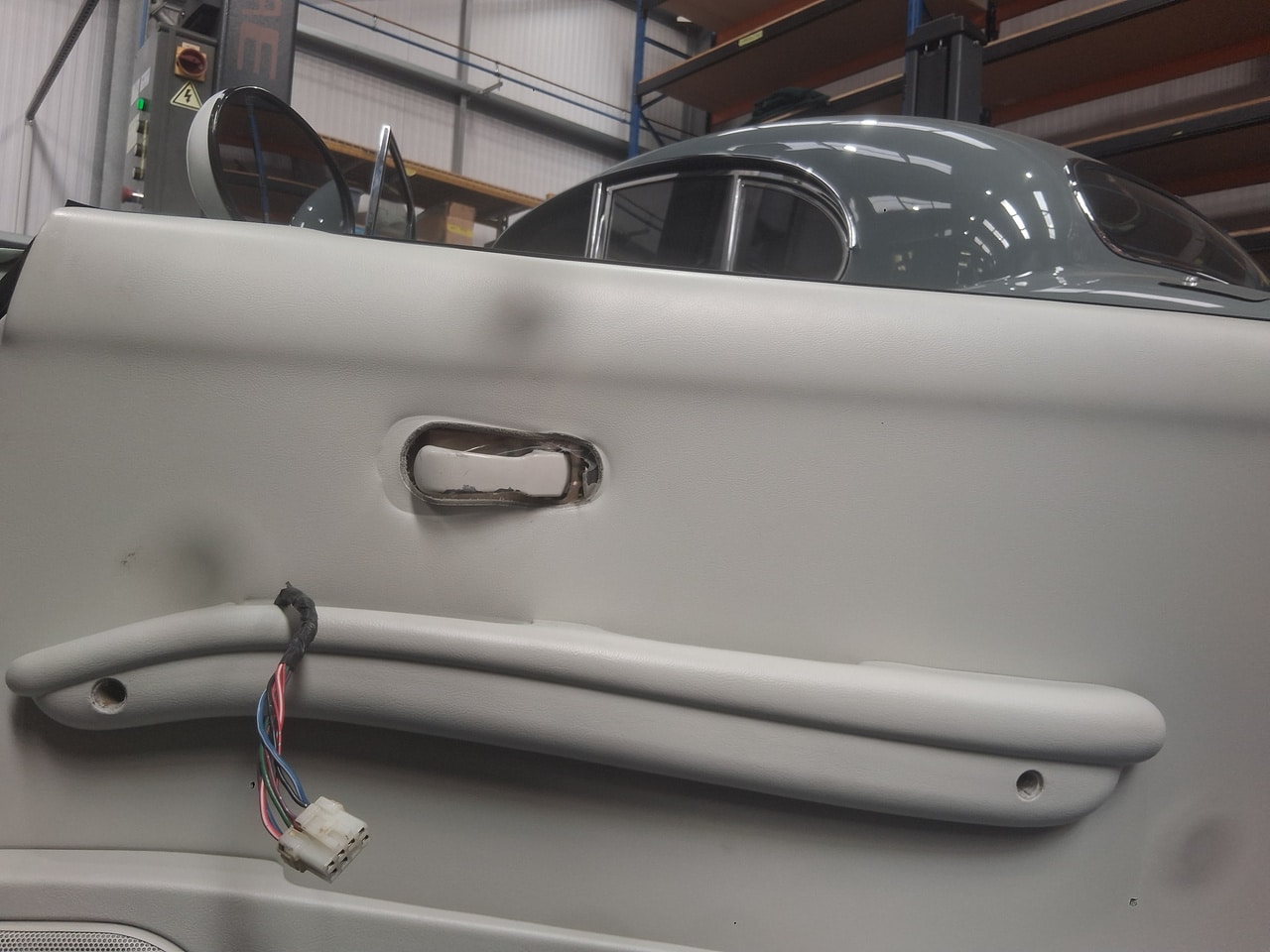 Our paint and body team have been working alongside our workshop team to get the door cards refinished for the 1991 Nissan Figaro. The door cards were cleaned down, repaired in places and then prepared for the paint and body team to spray the door cards for a new lease of life. Before the workshop to installed the freshly painted door cards, our workshop manager John cleaned up the window switches to get them working correctly on the iconic 90s coupe.