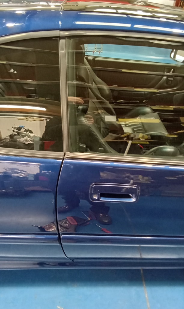 Jon investigated why the driver’s door on our 1994 Rover 220 Turbo in blue, which has been in the Bridge Classic Cars resotration workshop, would not open from the outside handle.