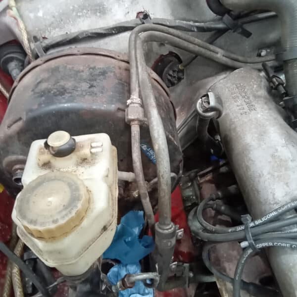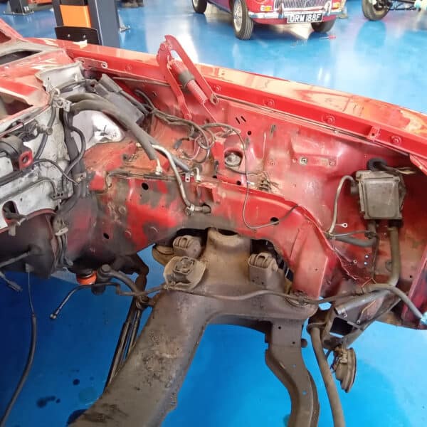 The engine and gearbox of our 1978 Mercedes 350SL have been removed.