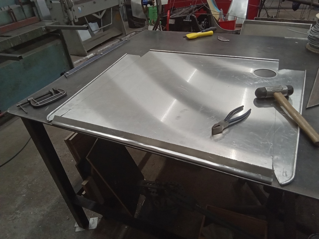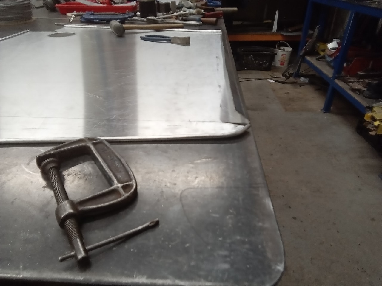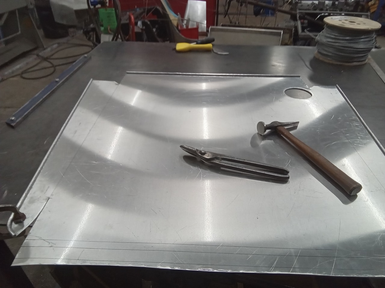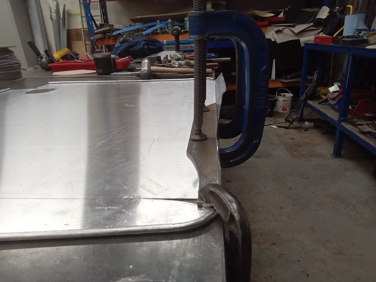 The car itself is in our finishing room being reassembled but the spare wheel carrier was beyond saving unfortunately but thats no big deal for our fabricator Clinton. He has completely remade the carrier by hand using the original as a rought template into what you see here.