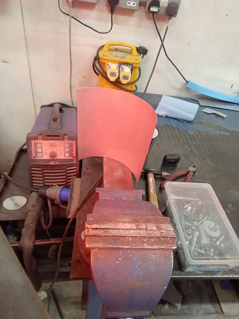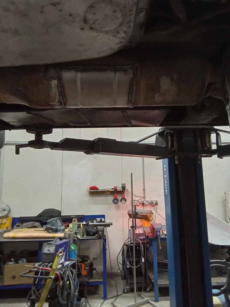 Once the quarter windows were repaired – Greg could move onto the removing the windscreen cover as well as shaping a new heatshield for under the car.