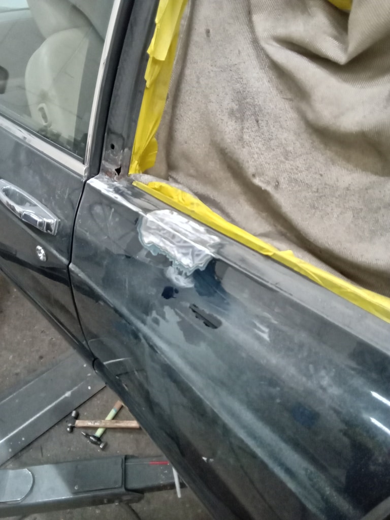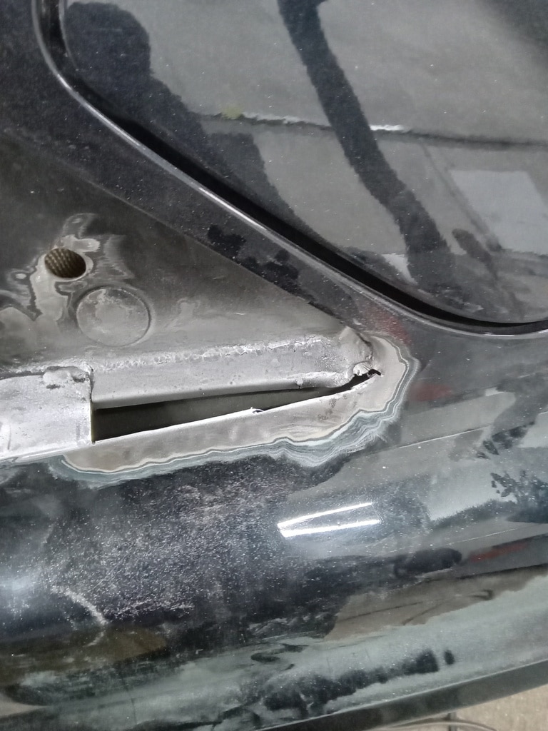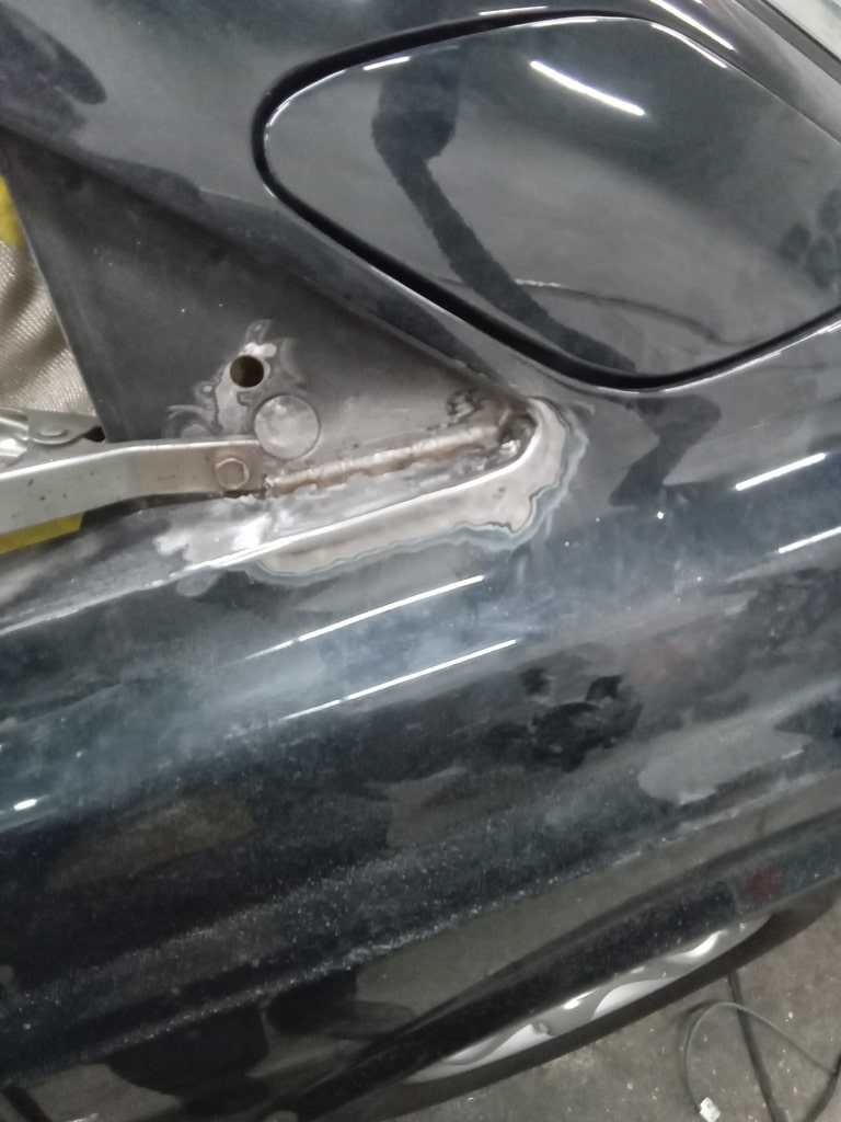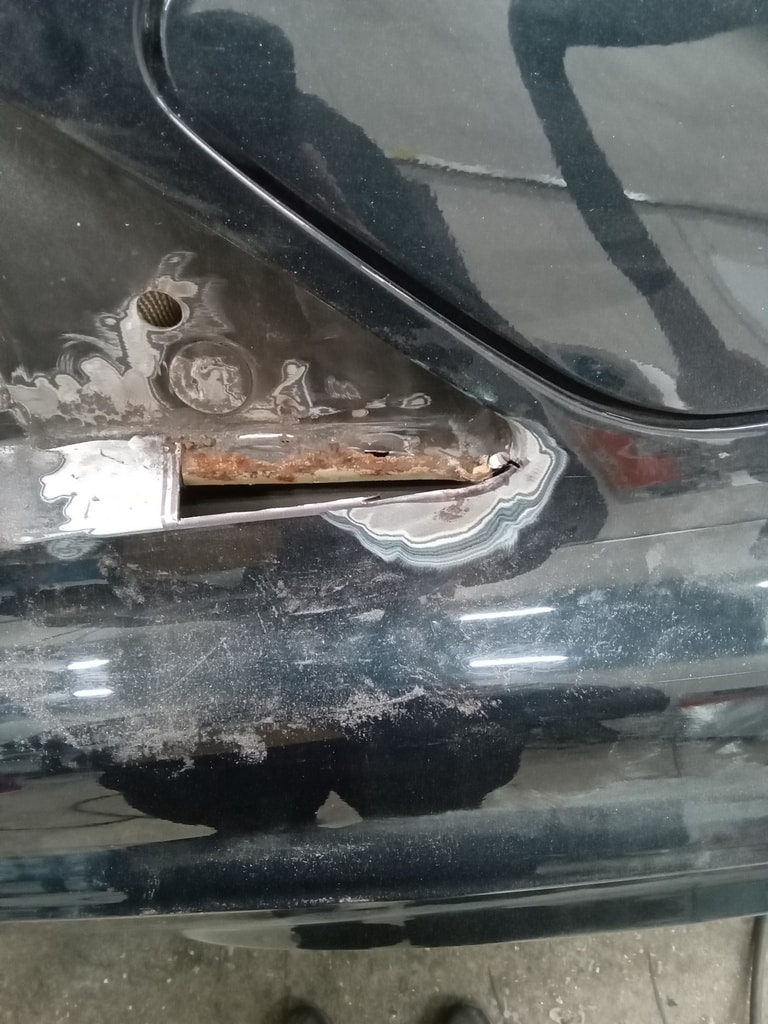 Our fabricator Greg has been dividing deep into a few areas of corrosion on the 1996 Bentley Continental R. With the quarter windows removed, Greg could begin to repair the areas with small, handmade patch panels that were placed piece by piece to avoid any warp and have the window not fit back during reassembly.