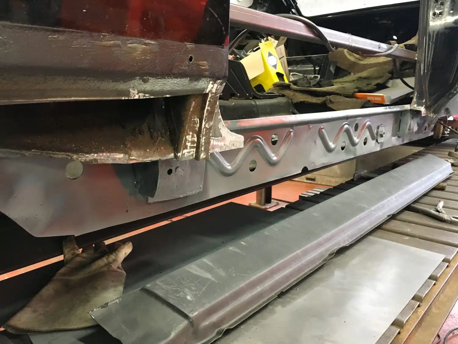 Now the majority of the ‘cutting out’ has been done Asa has securely fitted up the inner sill on the near side of our 1983 Ford Capri.
