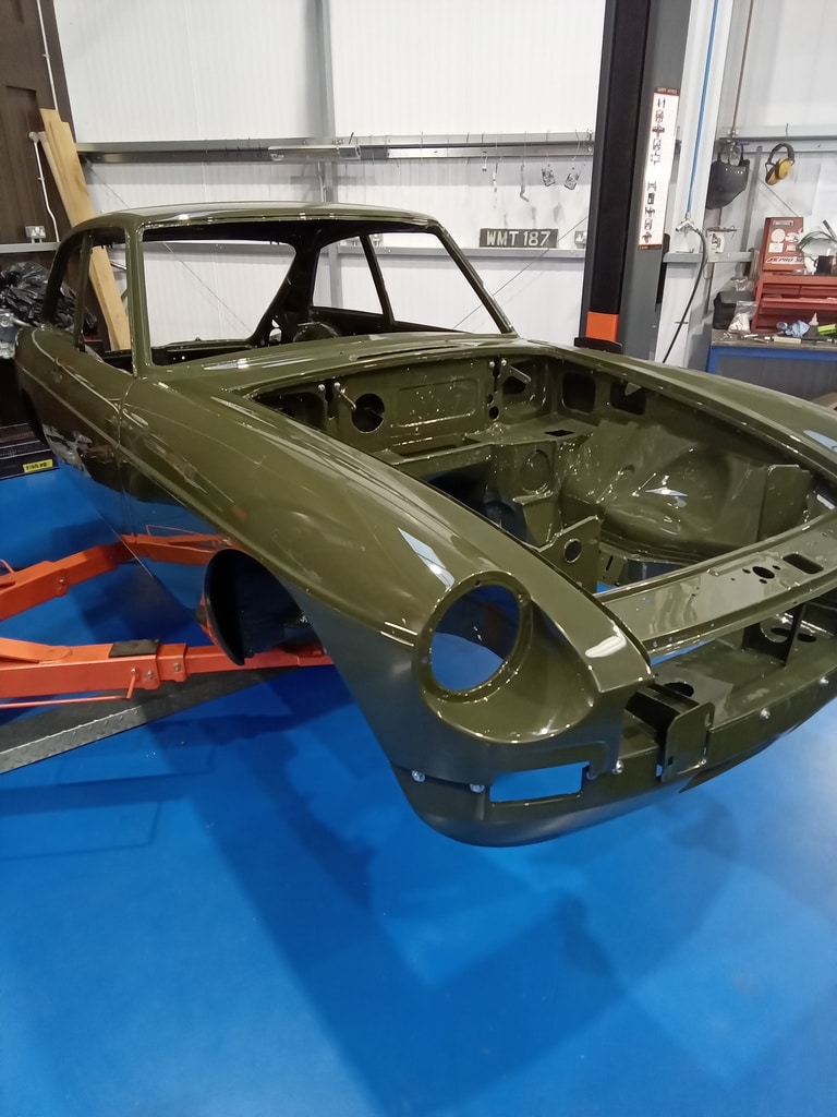 Since coming out of the Bridge Classic Cars paint and body shop recently, the 1975 MG B GT V8. The classic V8 GT car, has been put back into the finishing room for the restoration team to start getting the car back together.