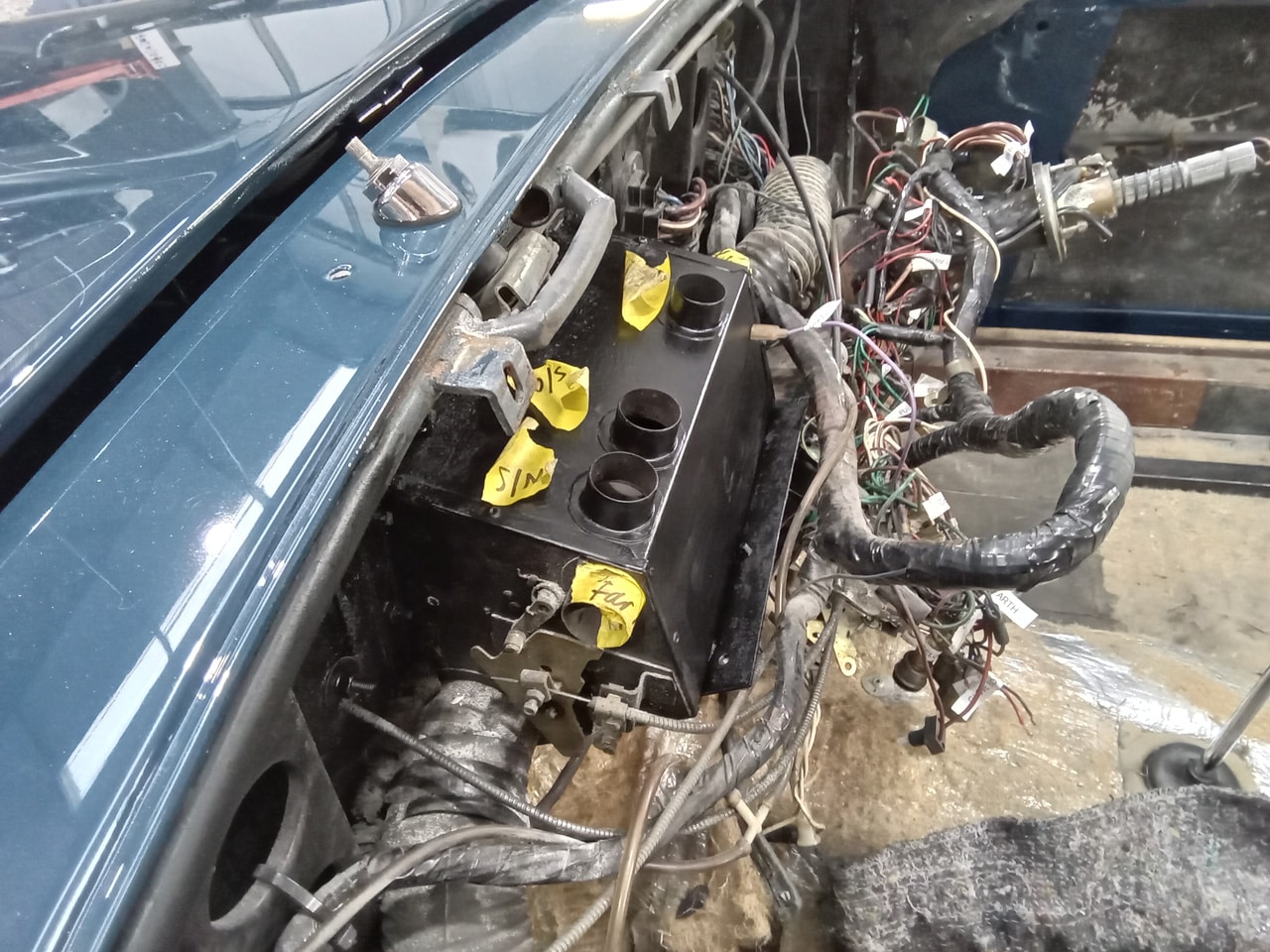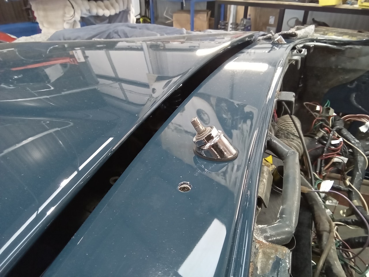 Here are some images of the first bits to go on the car. The dash also came out and that gives me a chance to fit the wipers, jets and arial. As well as clean the dust etc out from behind the dash. The metal parts of the dash are off to be painted and then zi can refit and Polish the chrome on the dash. The headlights went in and Steve and I did this together. I fitted other parts like bonnet sound deadening and light.