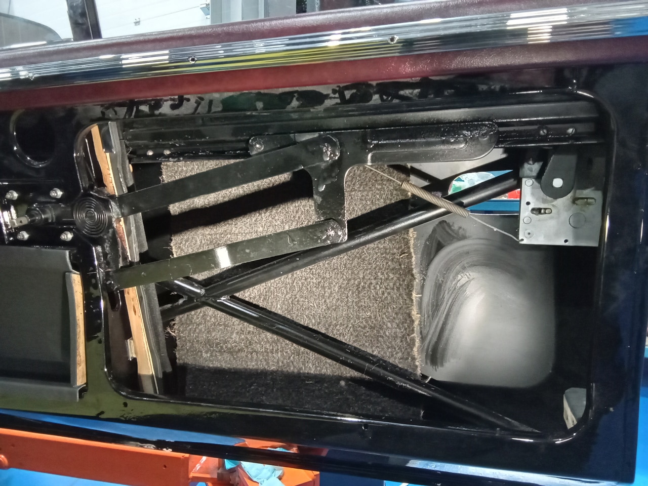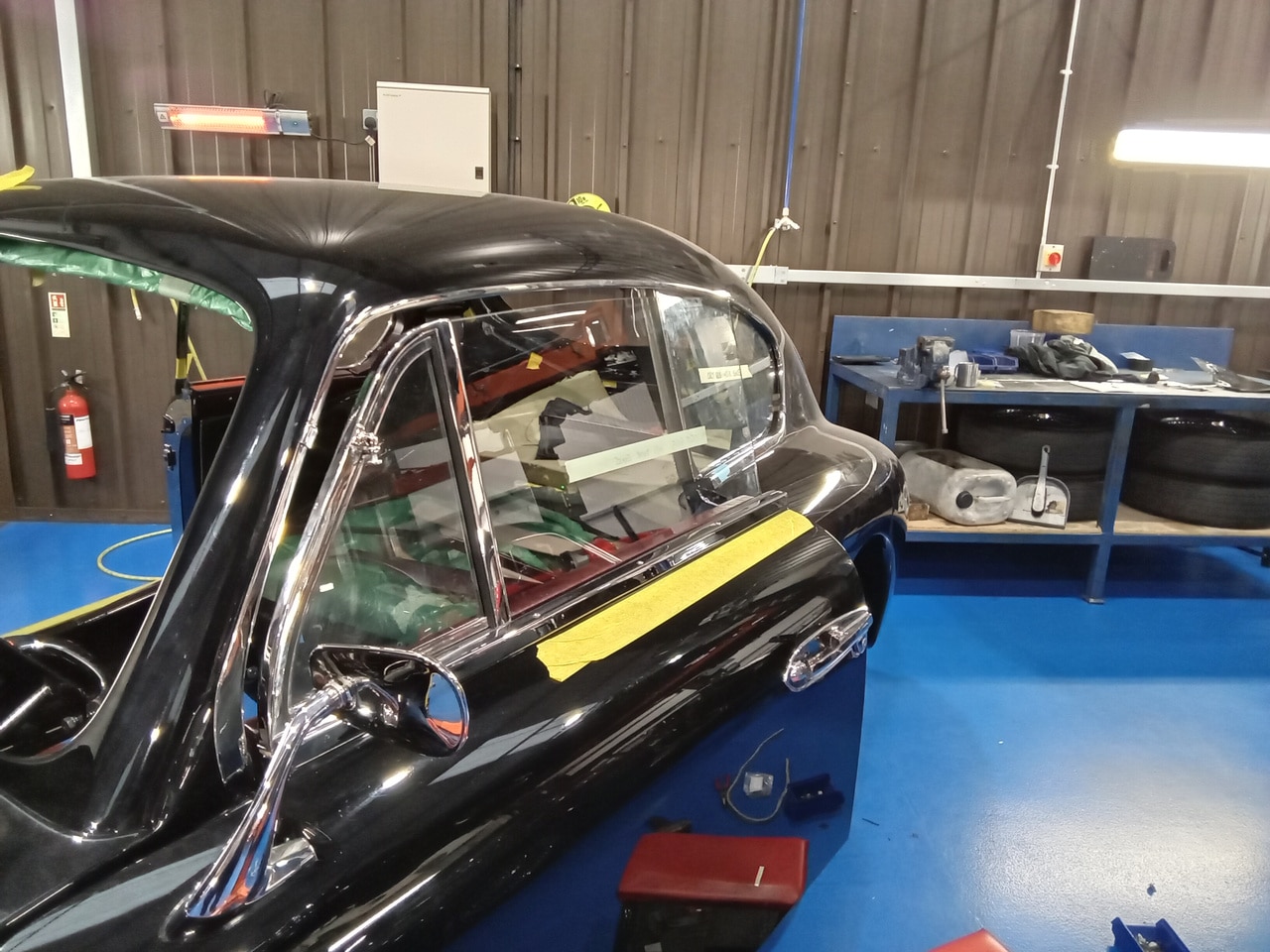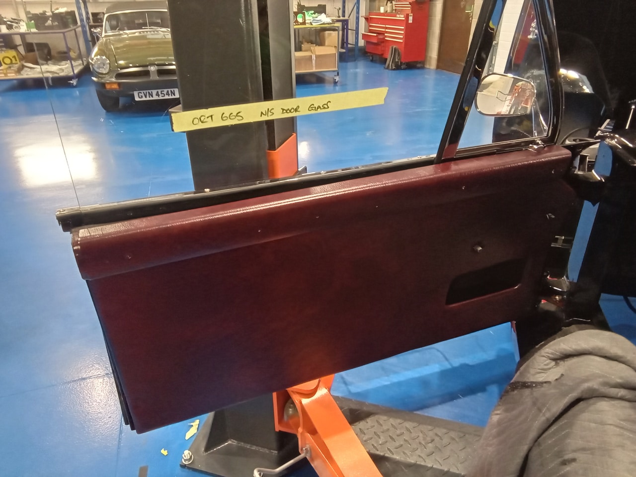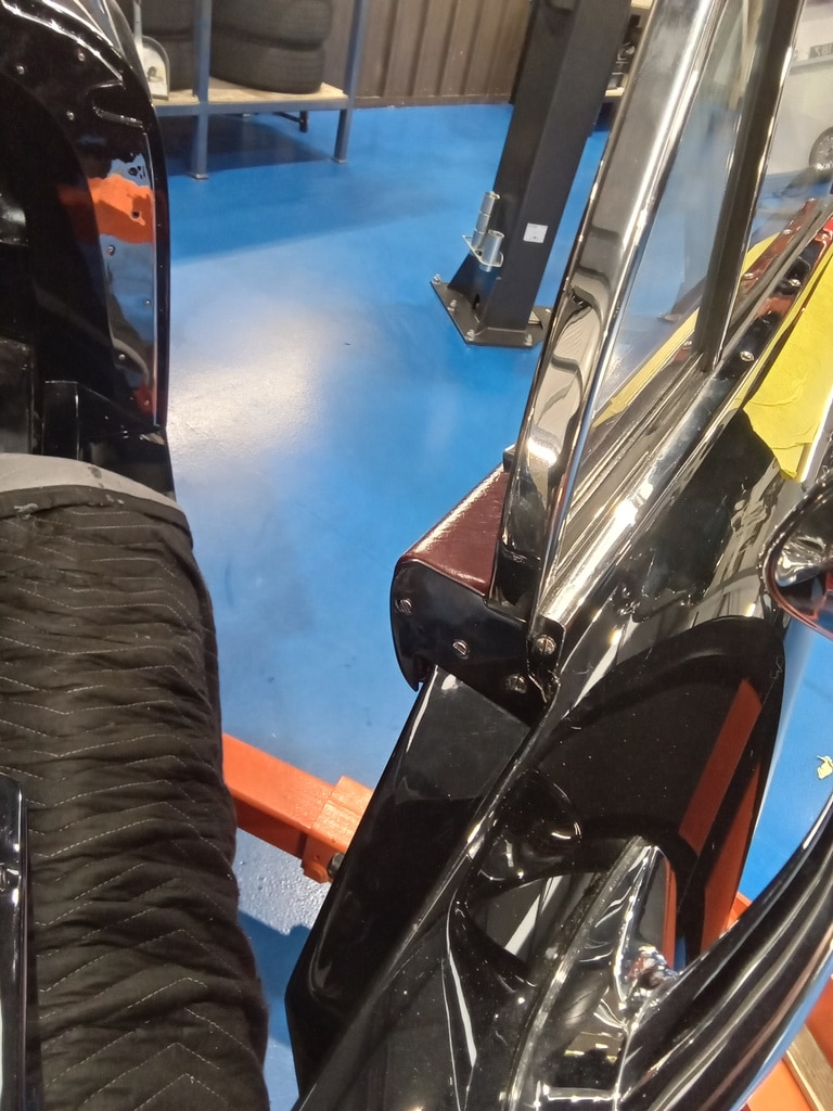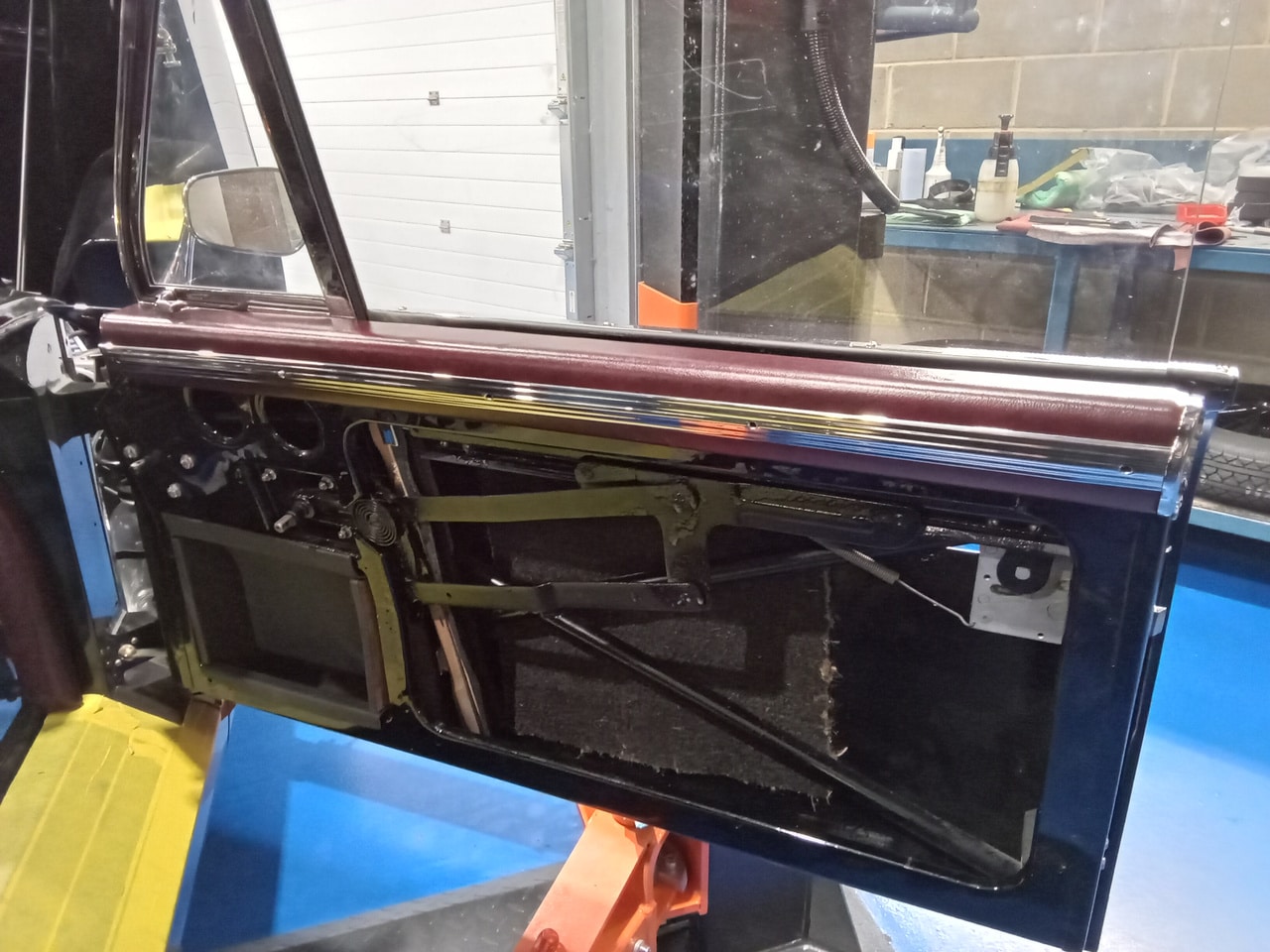 The window regulators have been carefully installed into the doors along with the cleaned and polished glass. Once these were in place, the guys could fit the door cards as well as top cap and all the chrome trim back onto the car.
