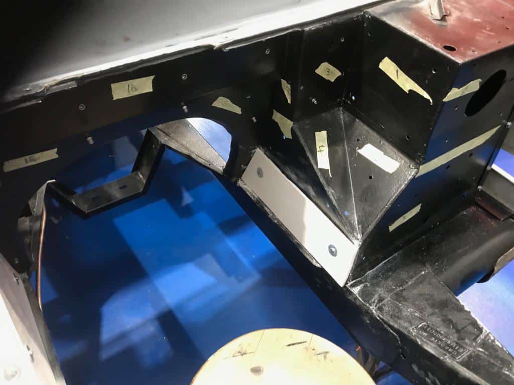 John is currently cutting and shaping the new heat shield for the front section of our Jensen 541S, chassis 328.