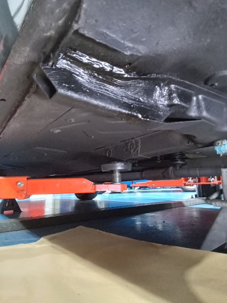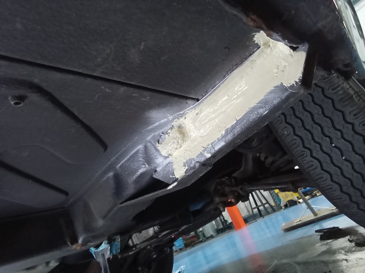 Greg, one of our restoration technicians, has cut out the rust from the floor of our 1985 Daimler DS420 Limo which has been in at the Bridge Classic Cars workshop recently. He then primed and seam sealed the repaired section. With this completed, the rust repair work on the floor was finished.